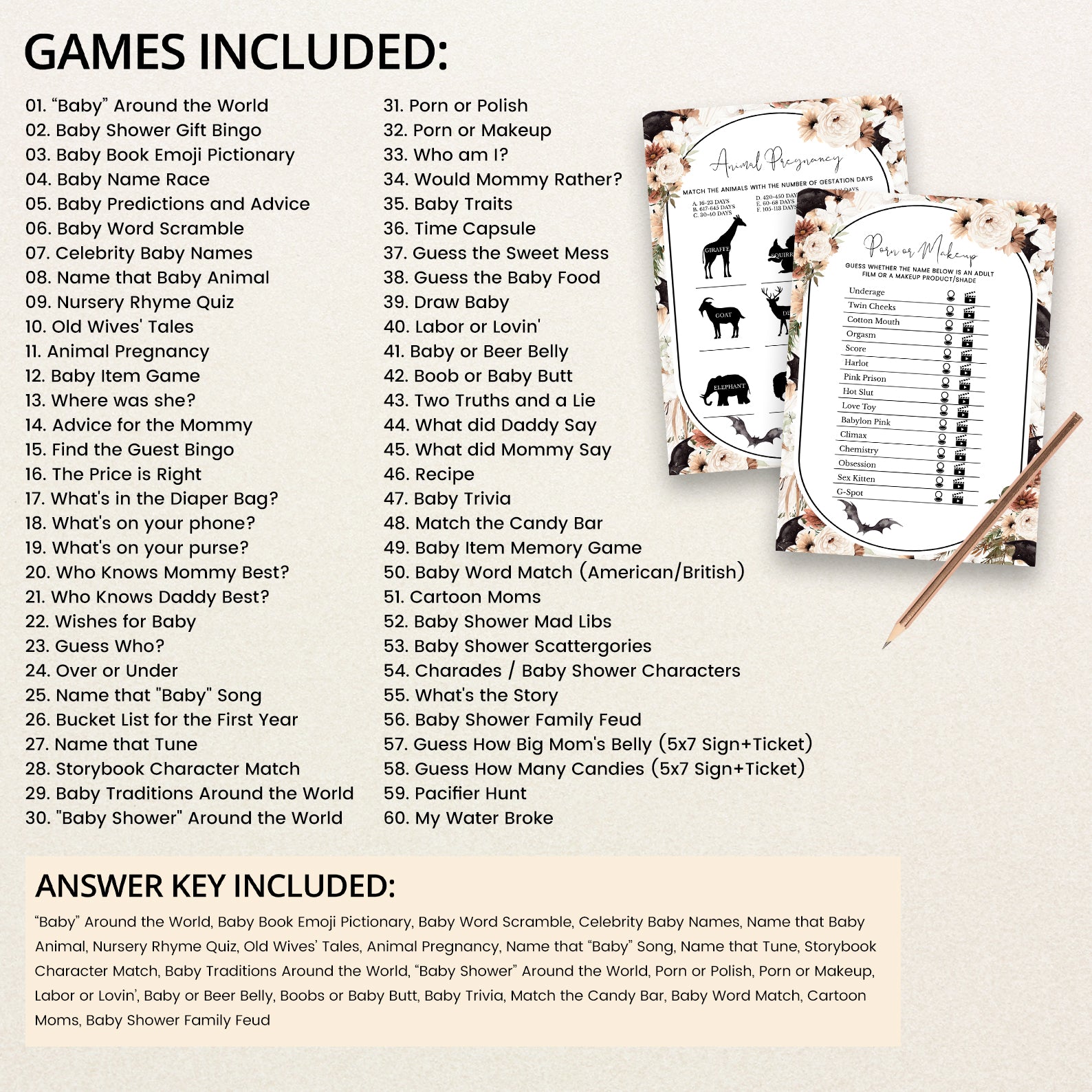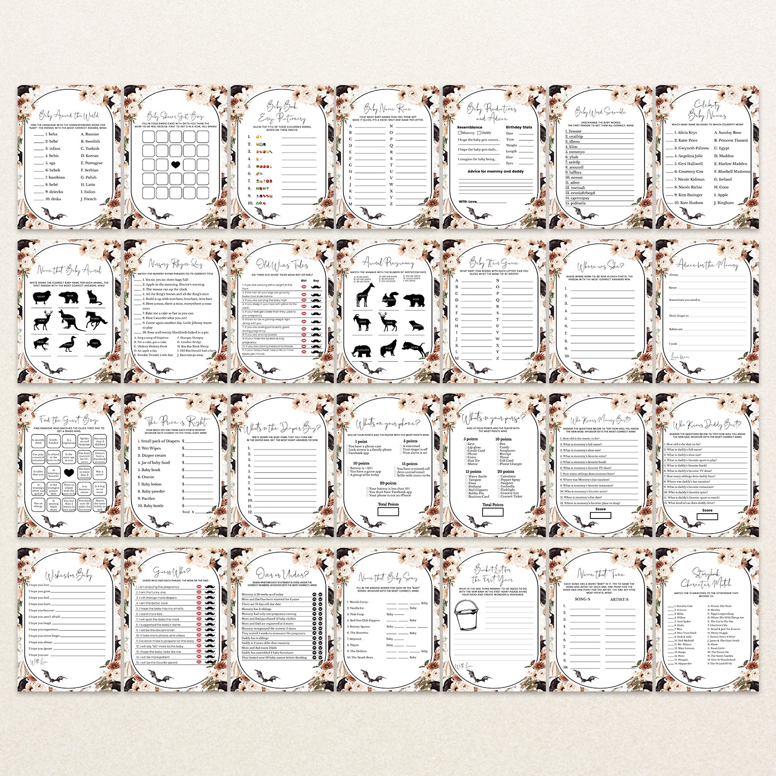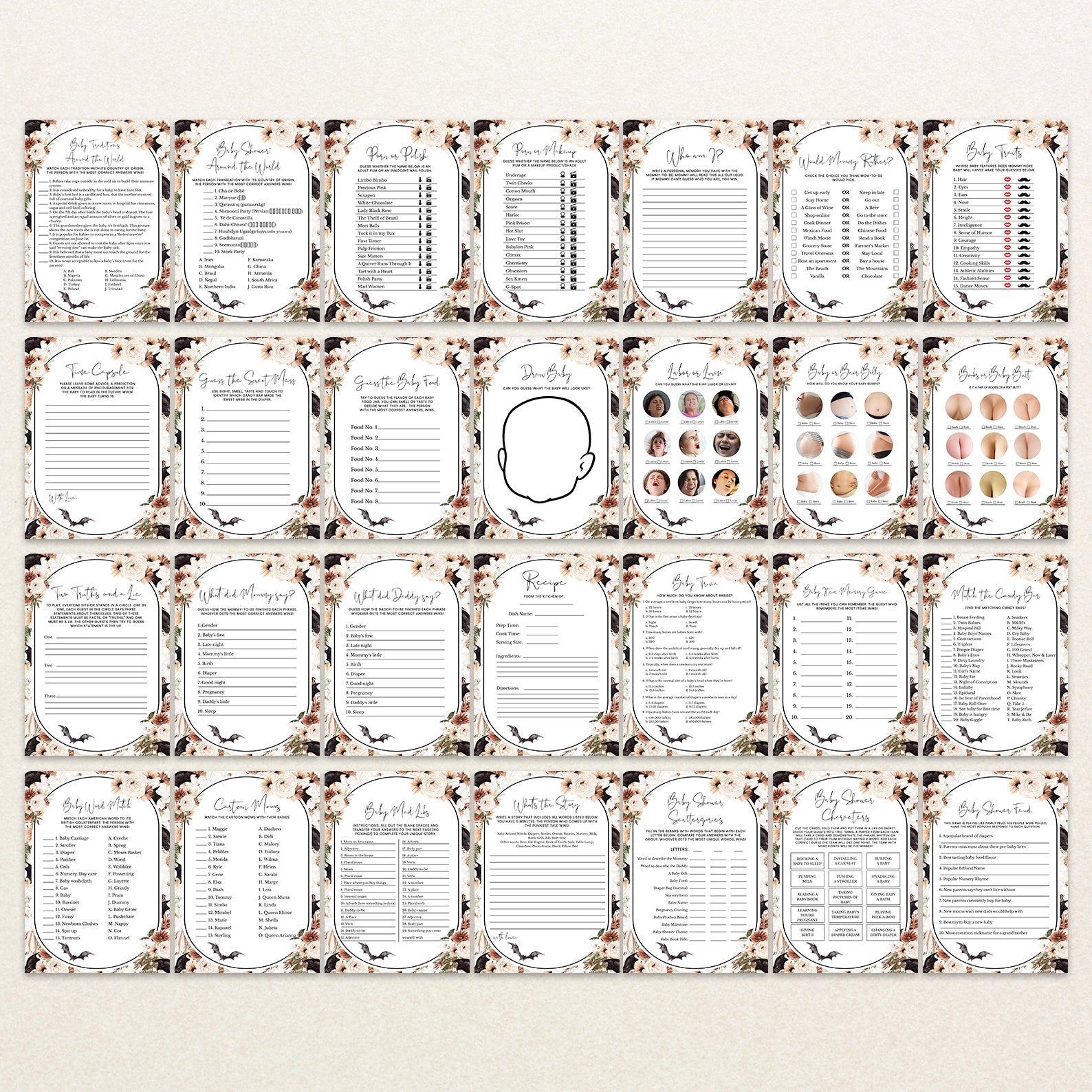 Prepare for a fang-tastic celebration with our “Batty Over Baby” Halloween Game Bundle! This collection of editable games is designed to bring a mix of whimsical and spooky fun to your baby shower. Featuring a charming array of bats and watercolor flowers, each game adds a touch of enchanting allure to your festivities. Customizable to fit your event’s theme, these games are perfect for creating an engaging and festive atmosphere for your guests. Let the playful bat designs and magical floral elements set the stage for a Halloween celebration that’s both delightful and memorable. Get ready to celebrate your little pumpkin with a bundle that’s sure to bring smiles and spooky cheer!
