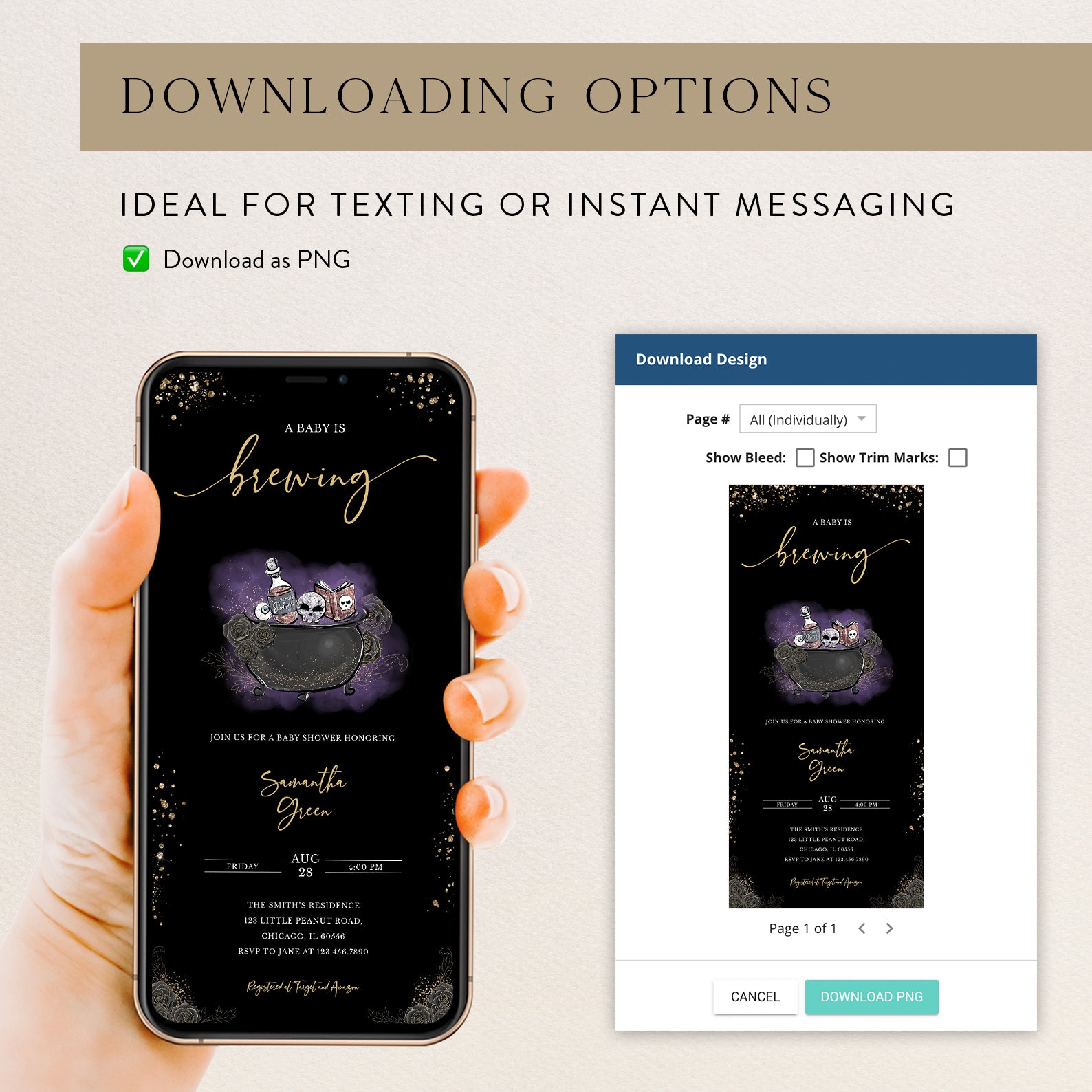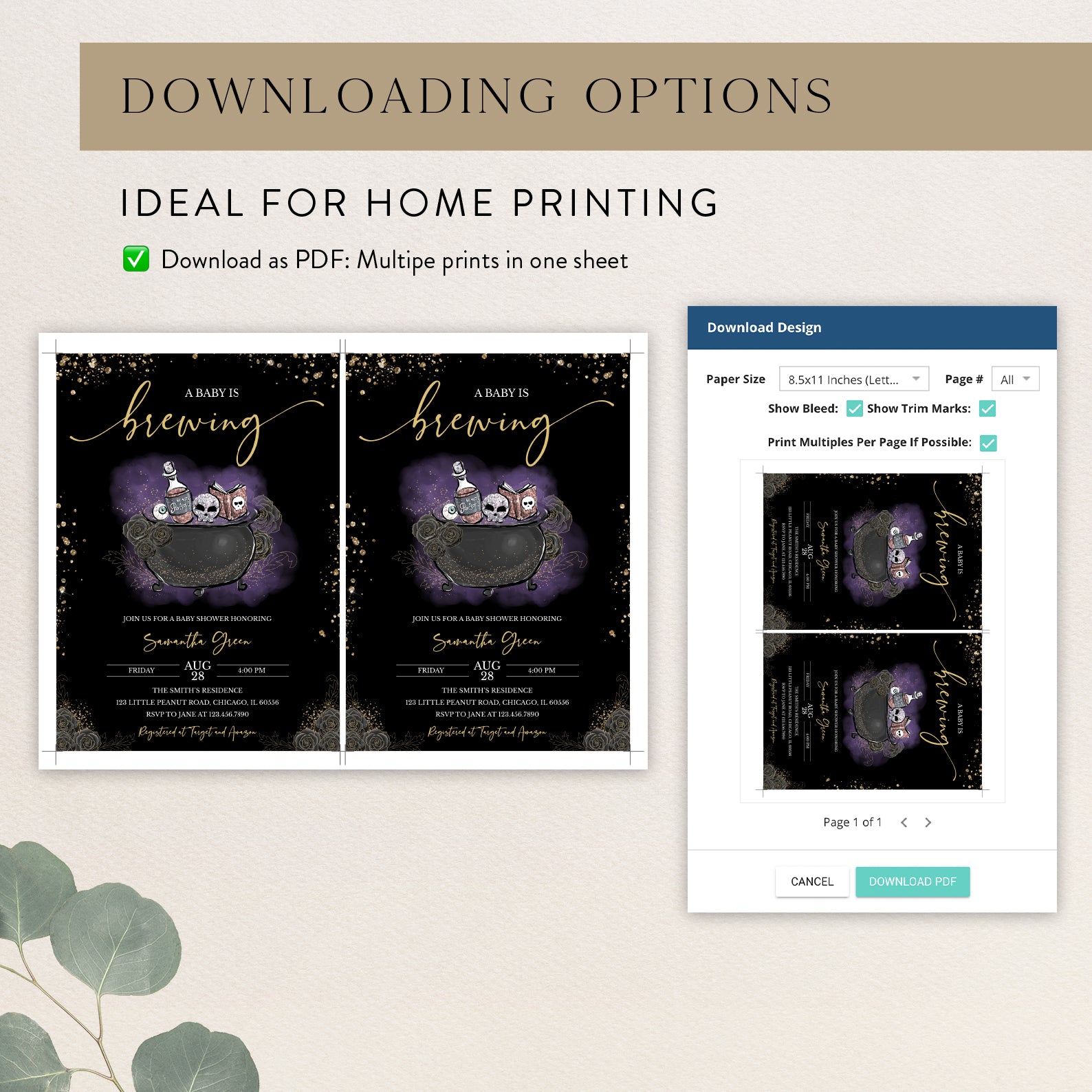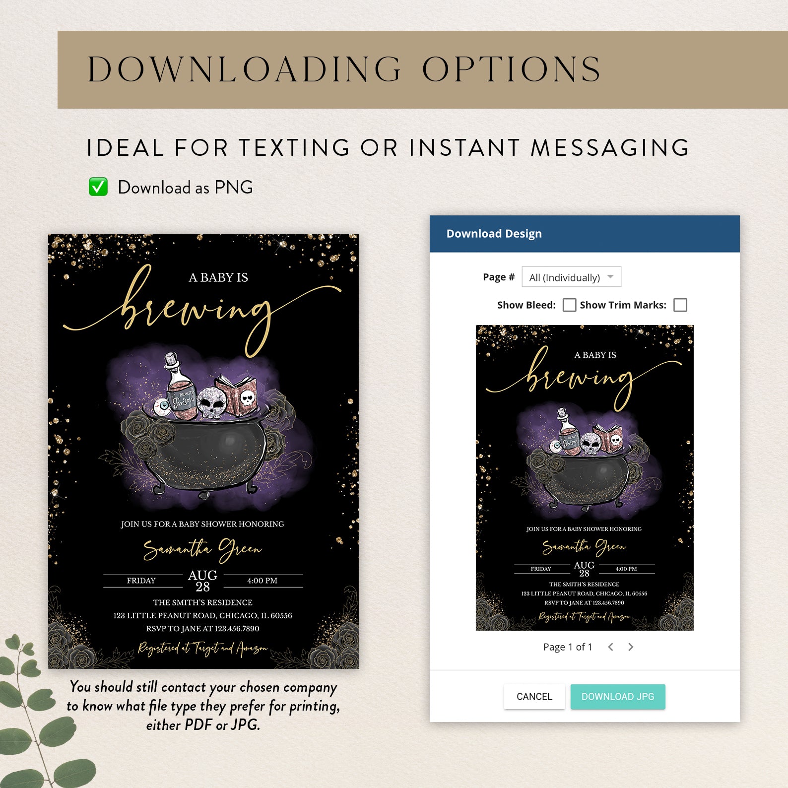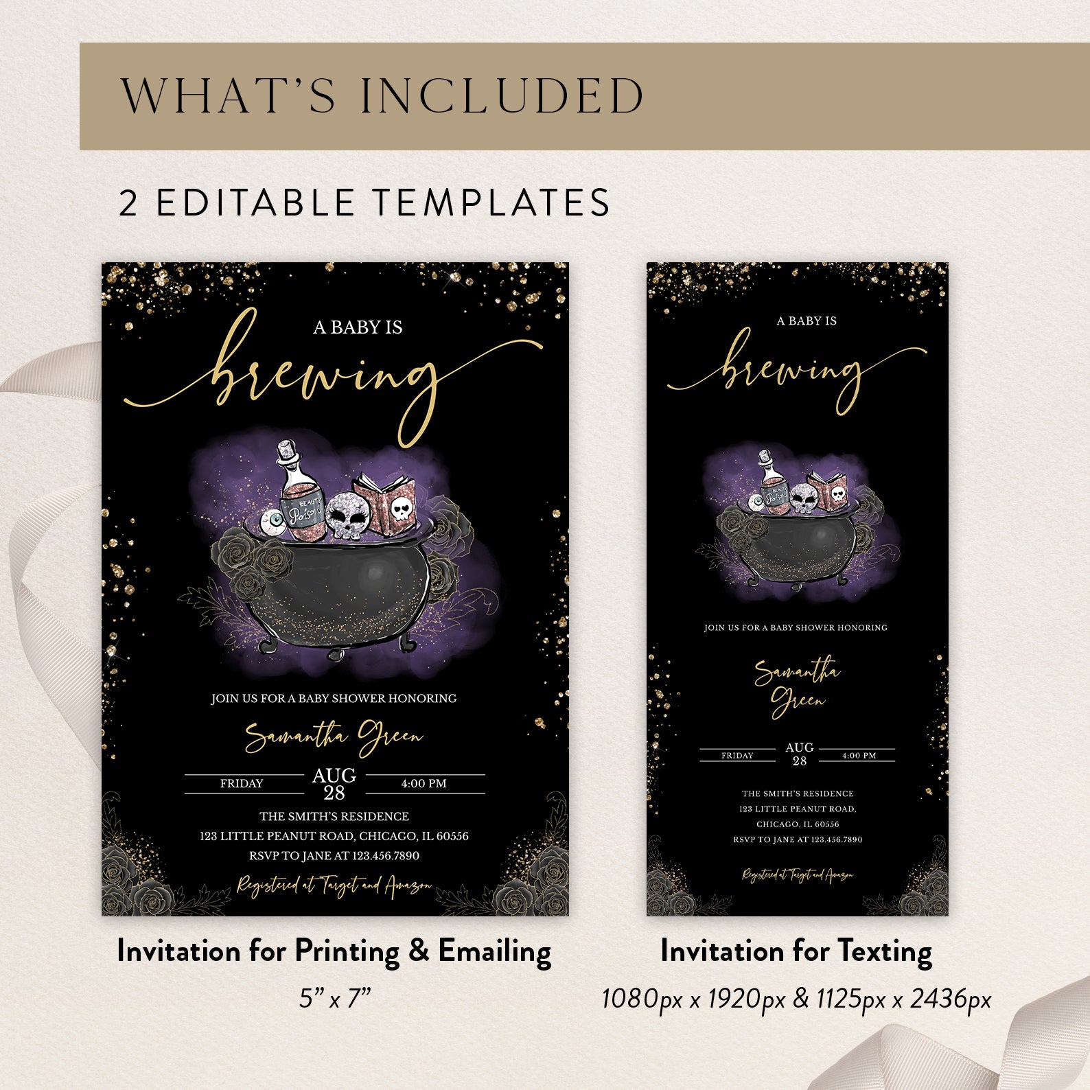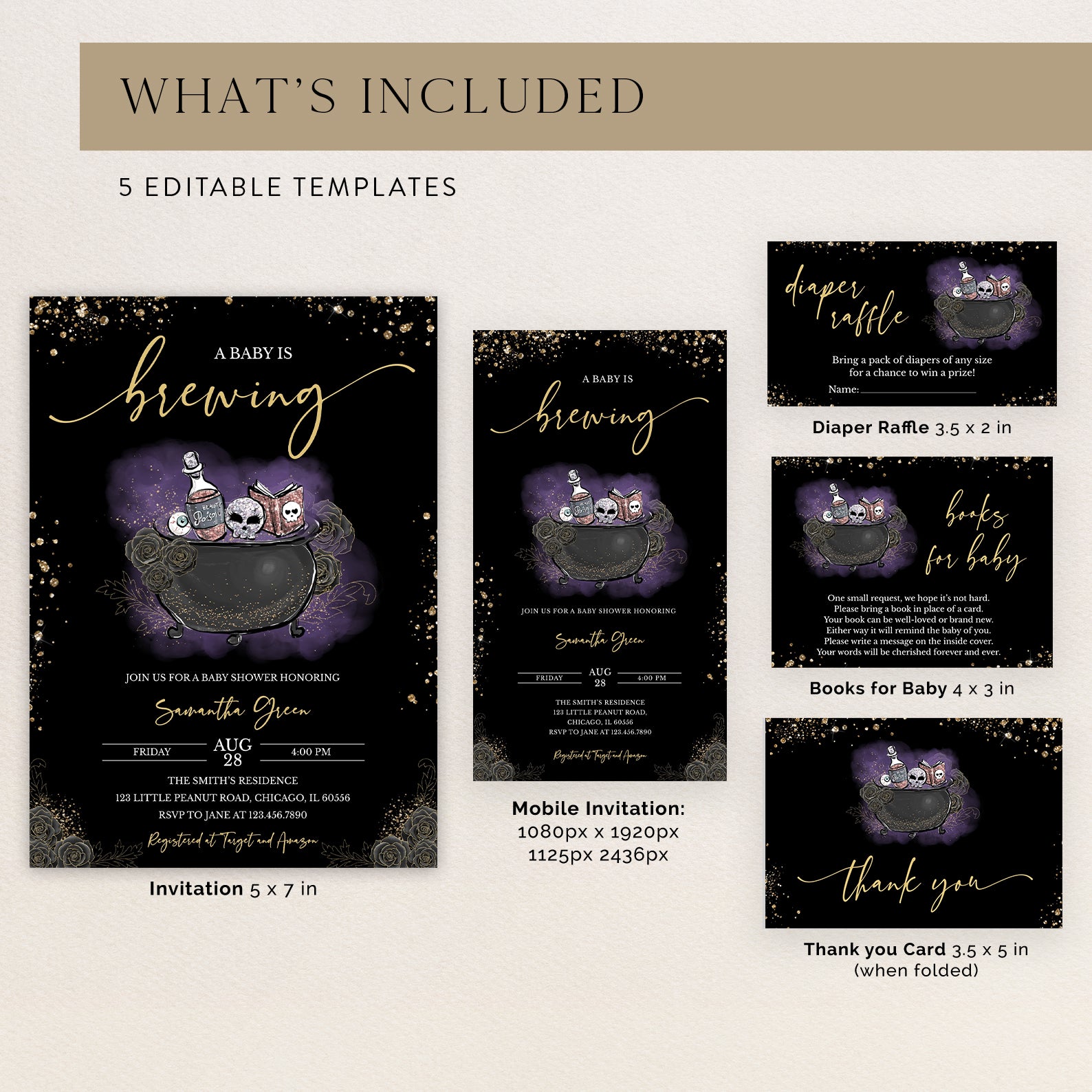 - Purchase this Elegant Baby Shower Invitation Bundle: Brewing with Magic Spell template