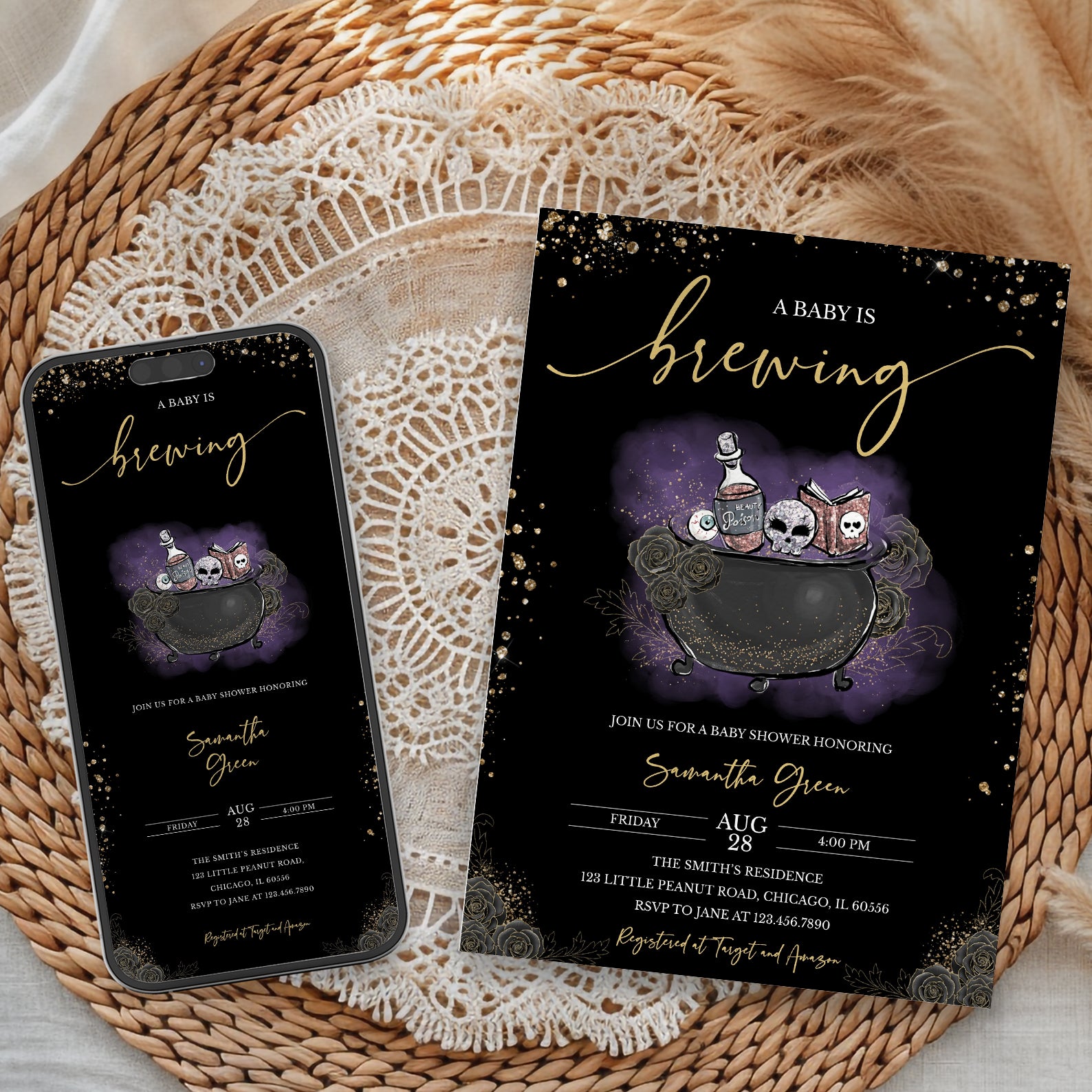 Elegant Baby Shower Invitation Bundle: Brewing with Magic Spell