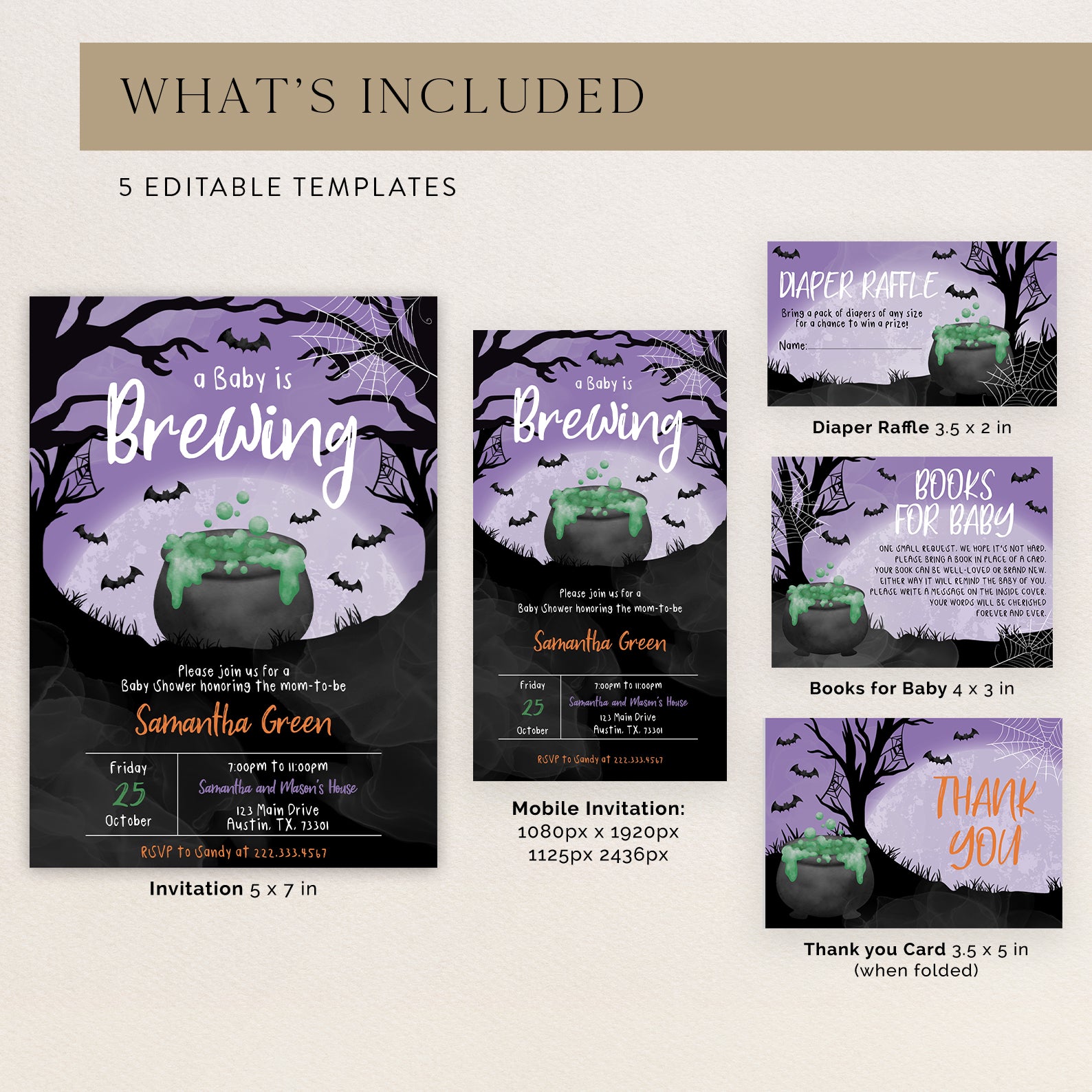 Prepare for a bewitching baby shower with our complete Halloween invitation bundle! This enchanting set includes everything you need to make your celebration spook-tacular: