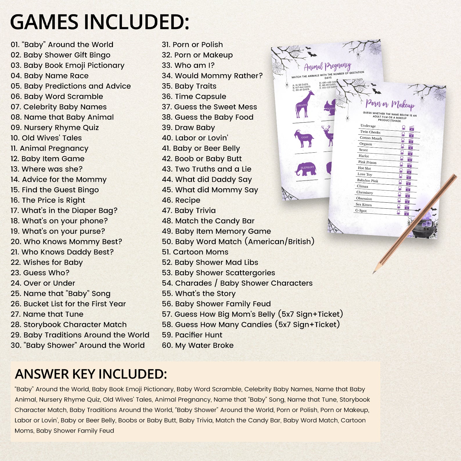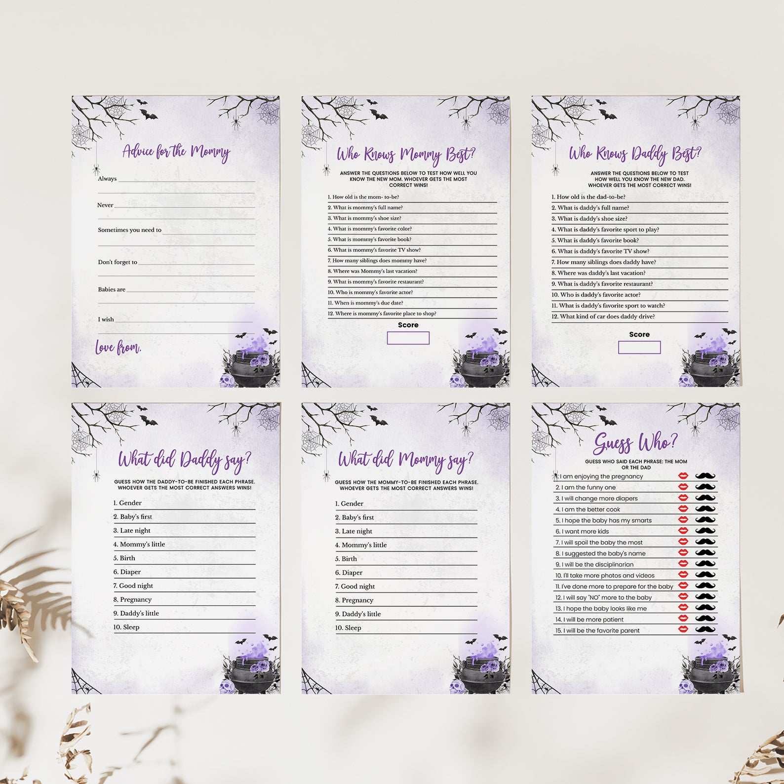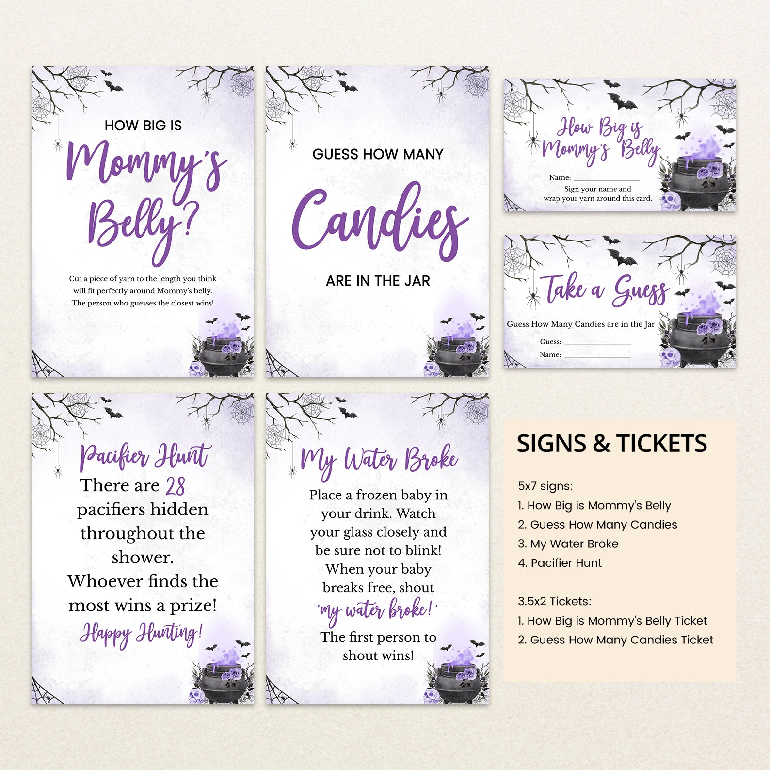 - Purchase this Purple Digital Game Bundle: 'A Baby is Brewing' with Spooky Cauldron Fun template