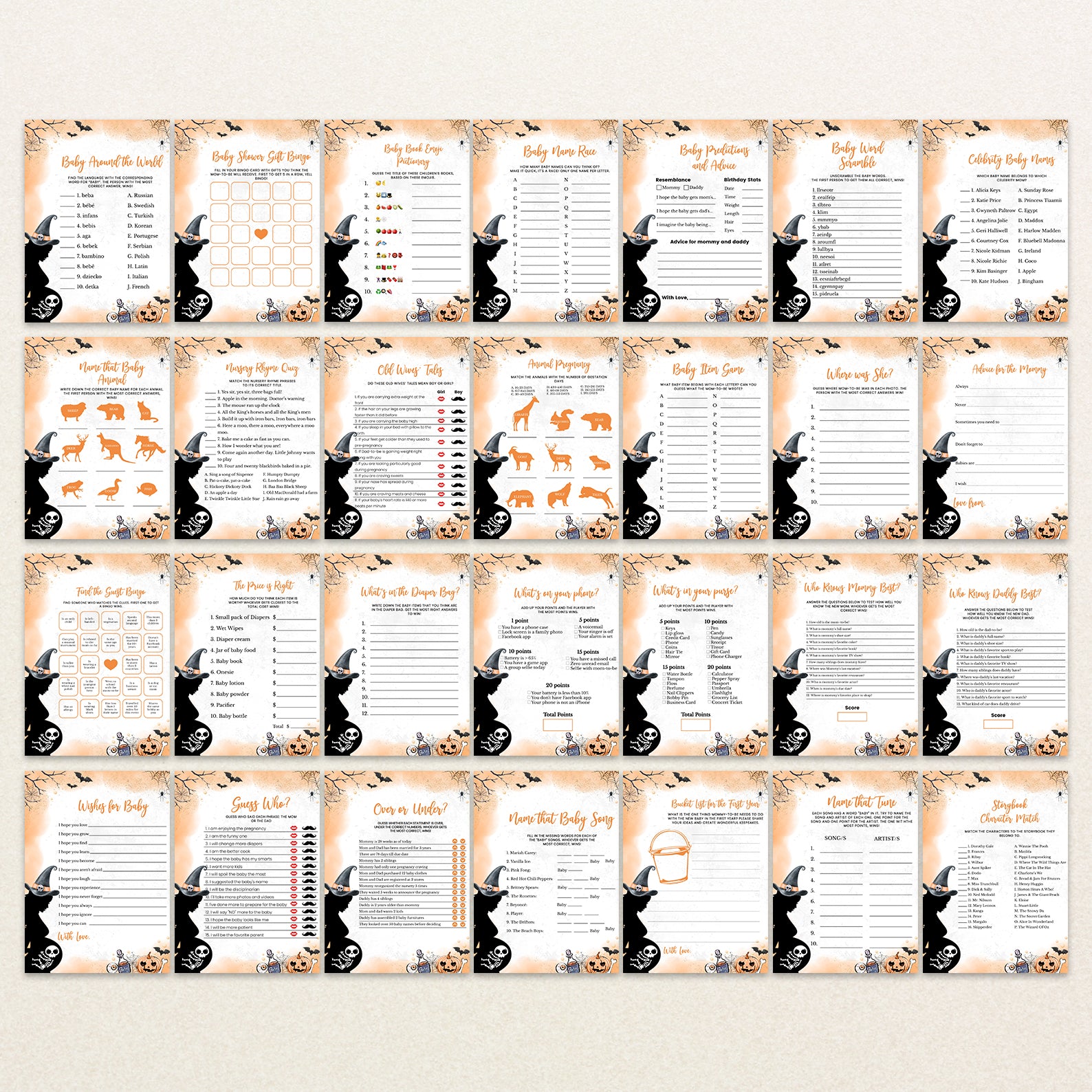 A Baby is Brewing Orange Halloween Digital Baby Shower Game Bundle