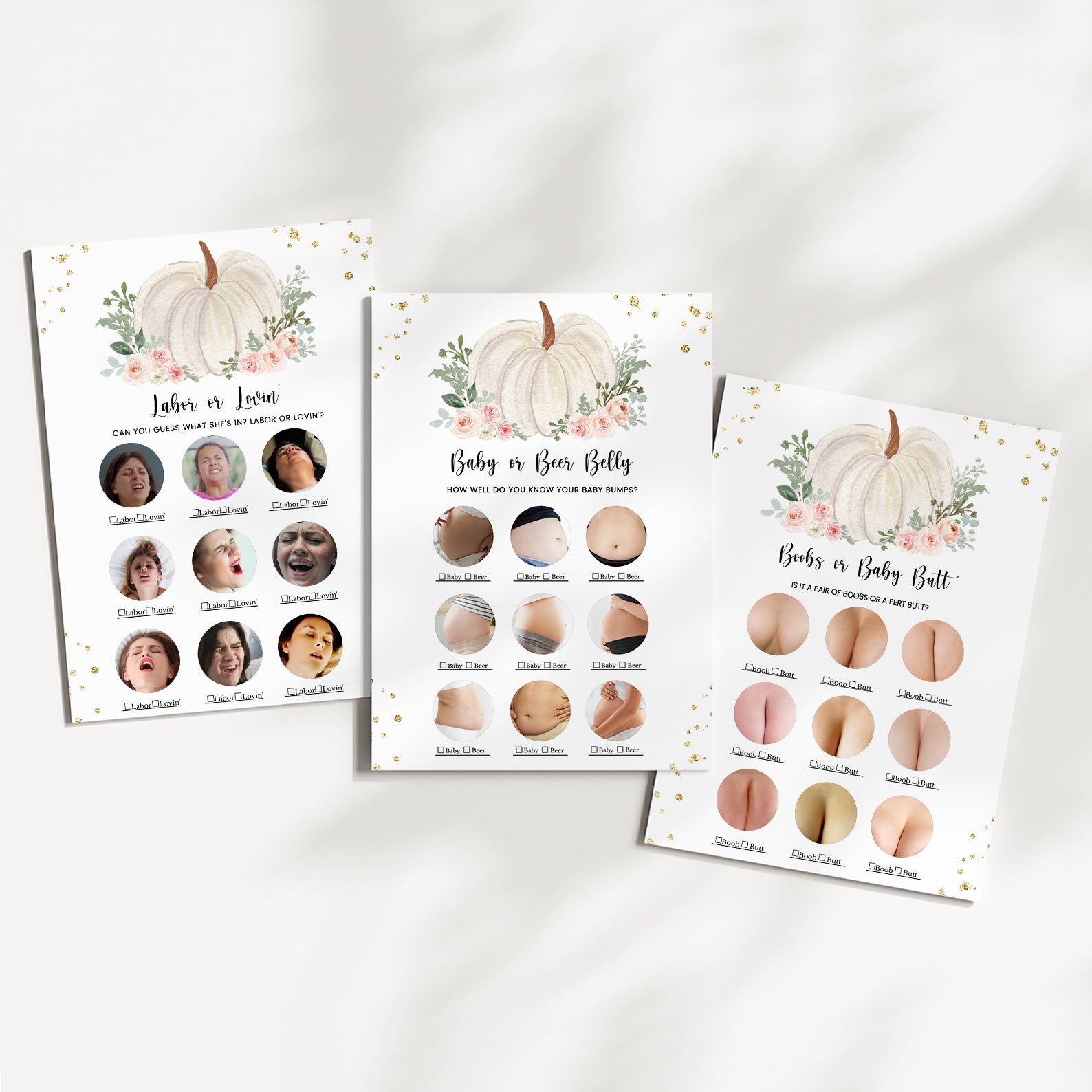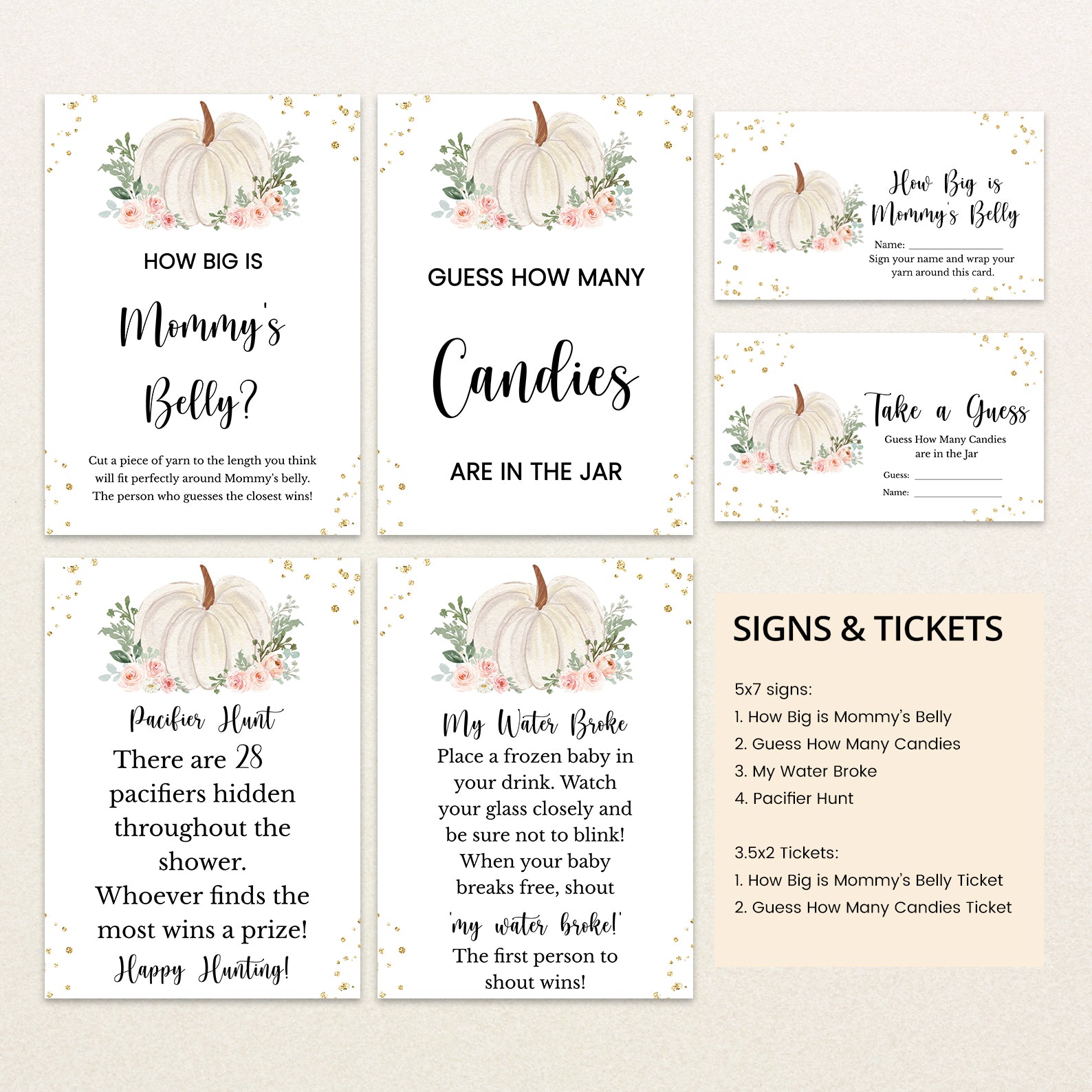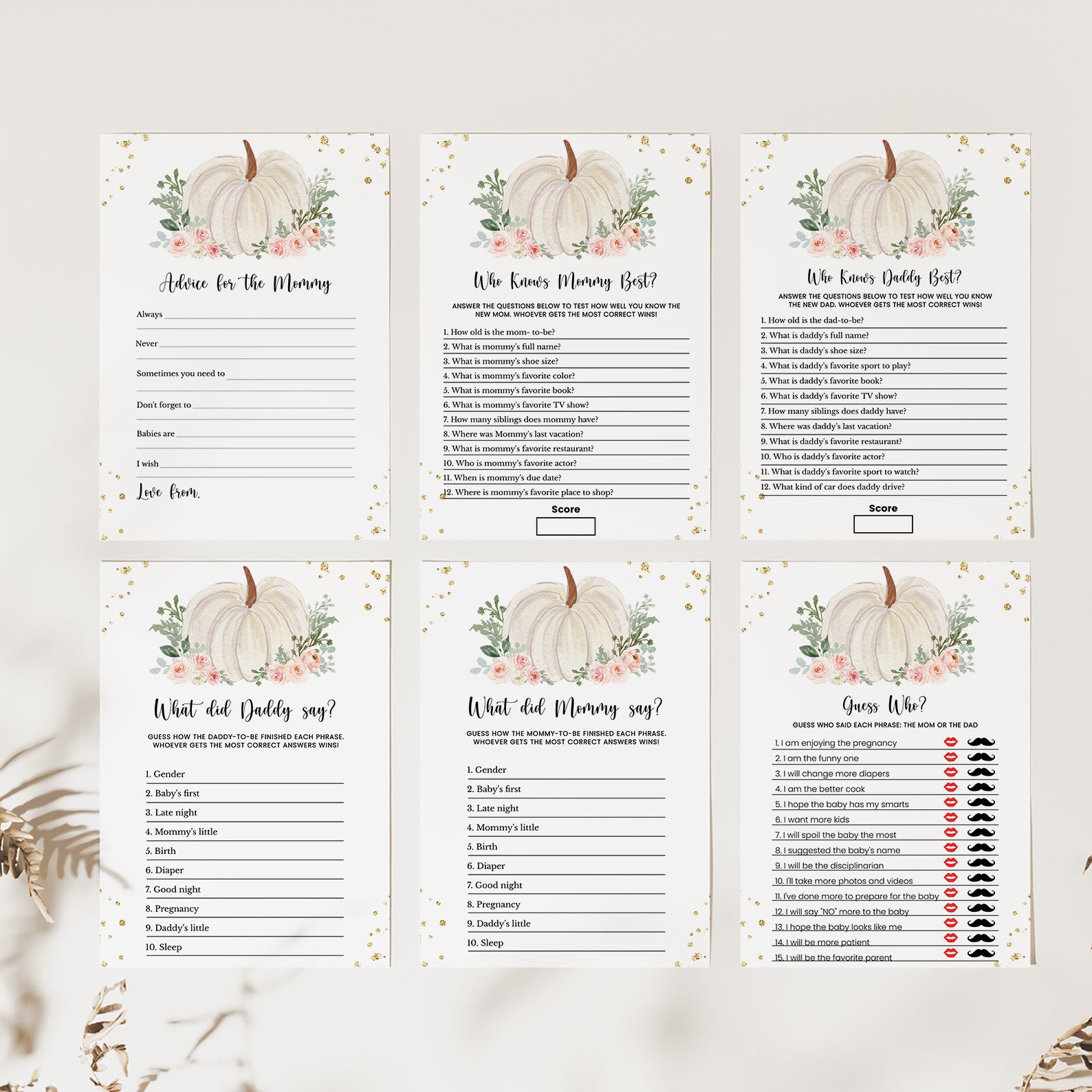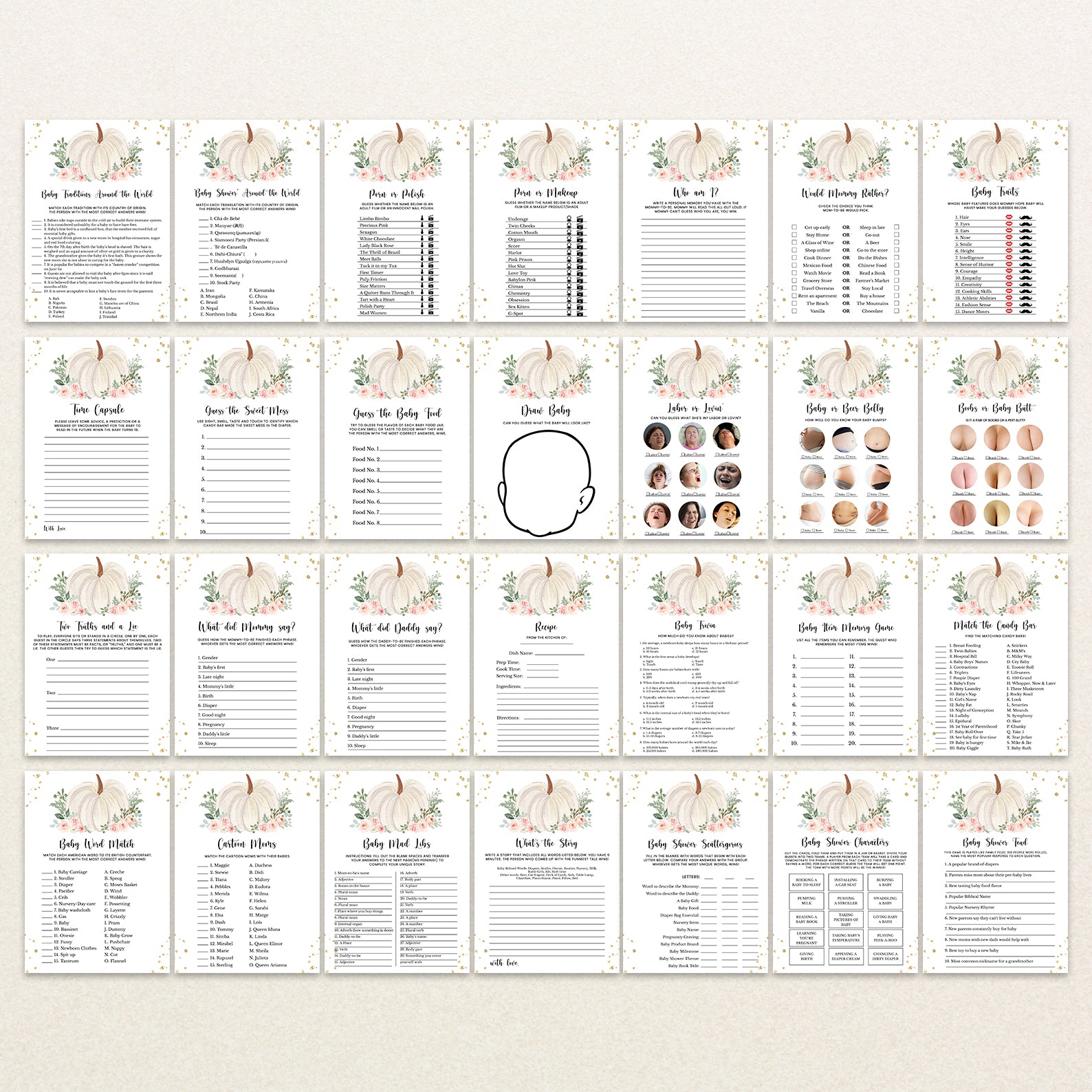 - Purchase this A Little Pumpkin Pink & Gold Fall Baby Shower Digital Game Bundle template