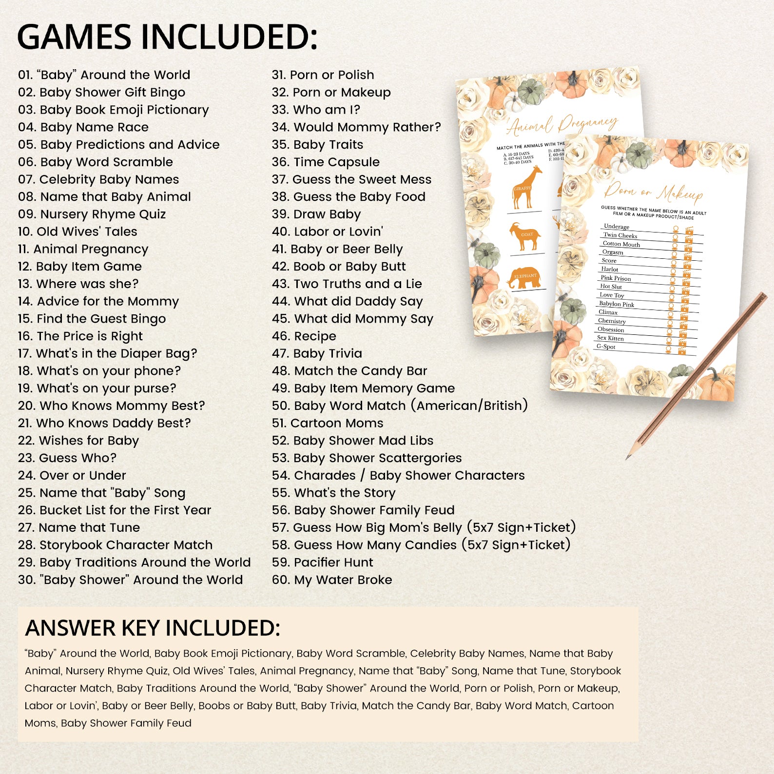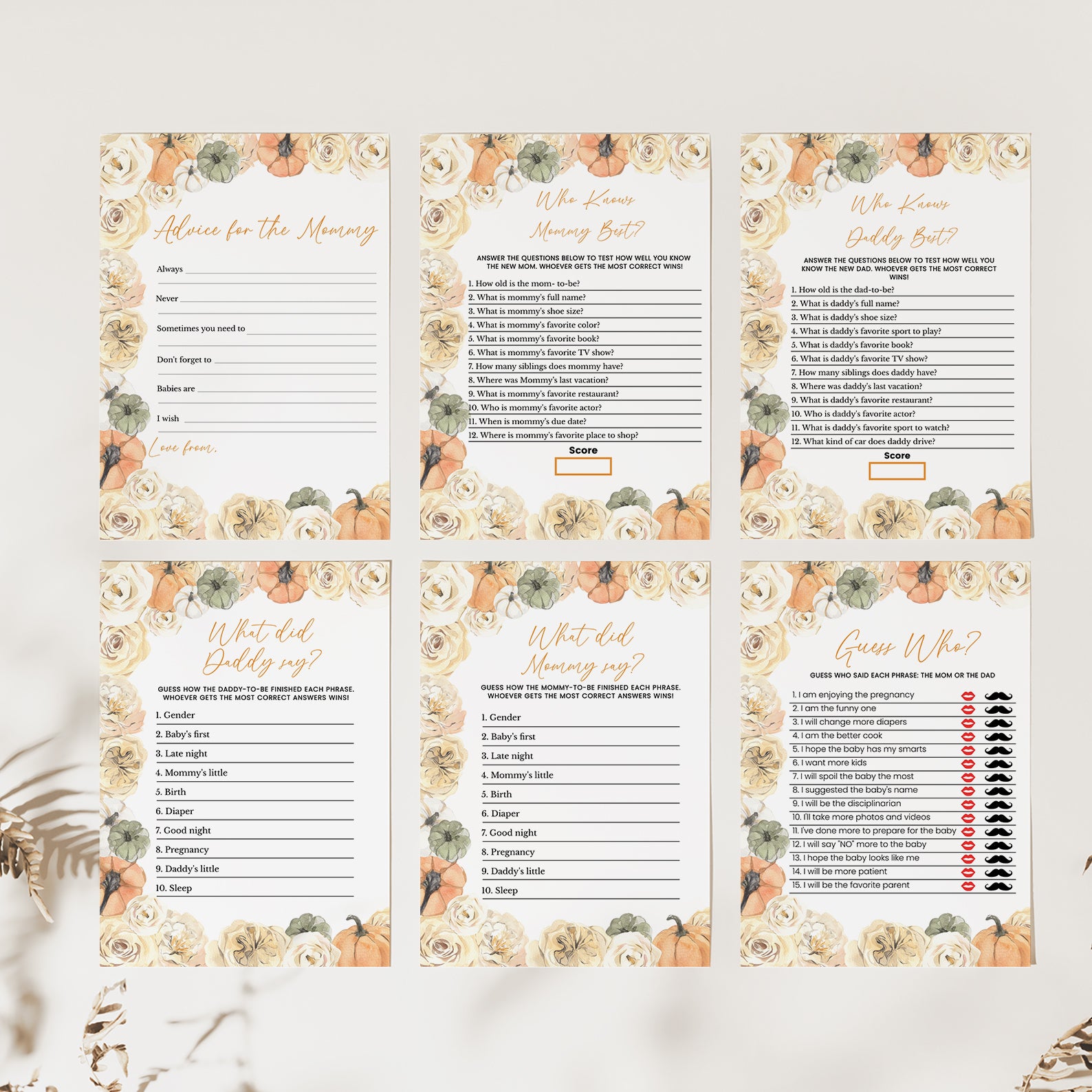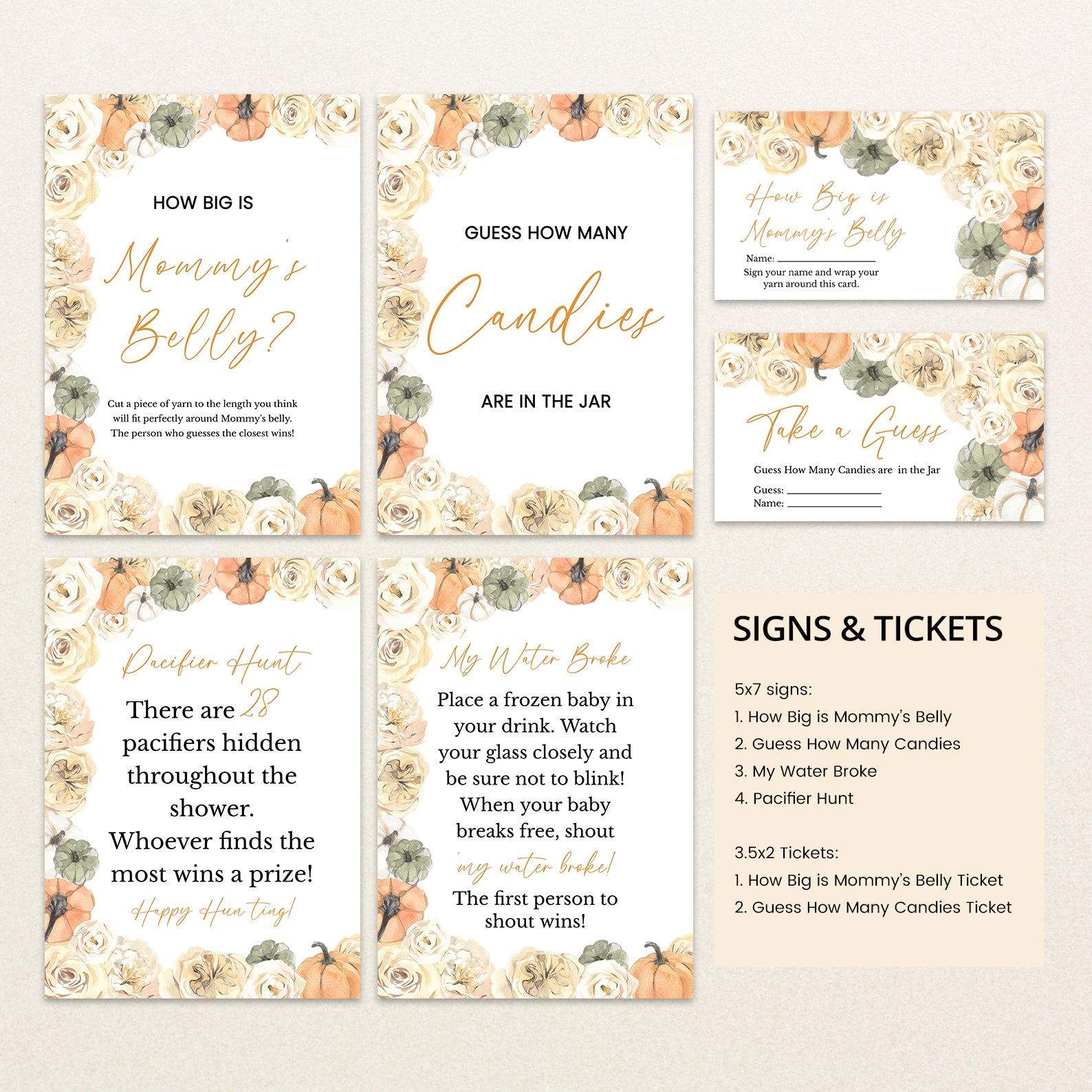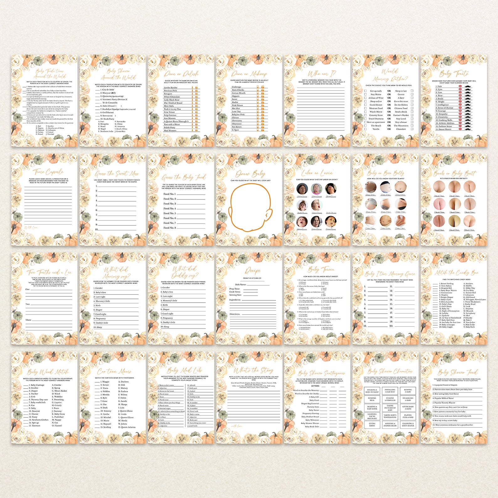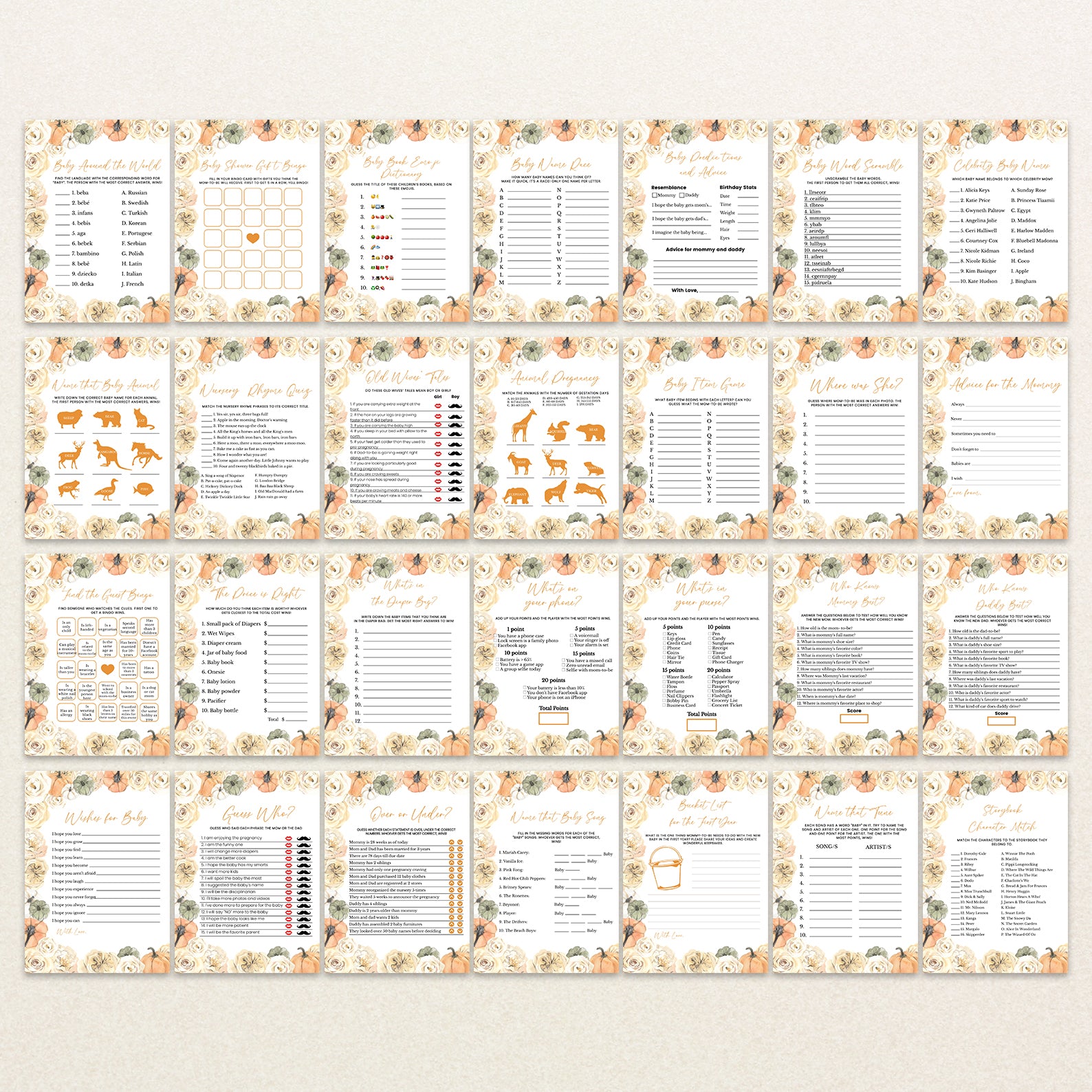 - Purchase this Rose & Pumpkin Border Baby Shower Digital Game Bundle template
