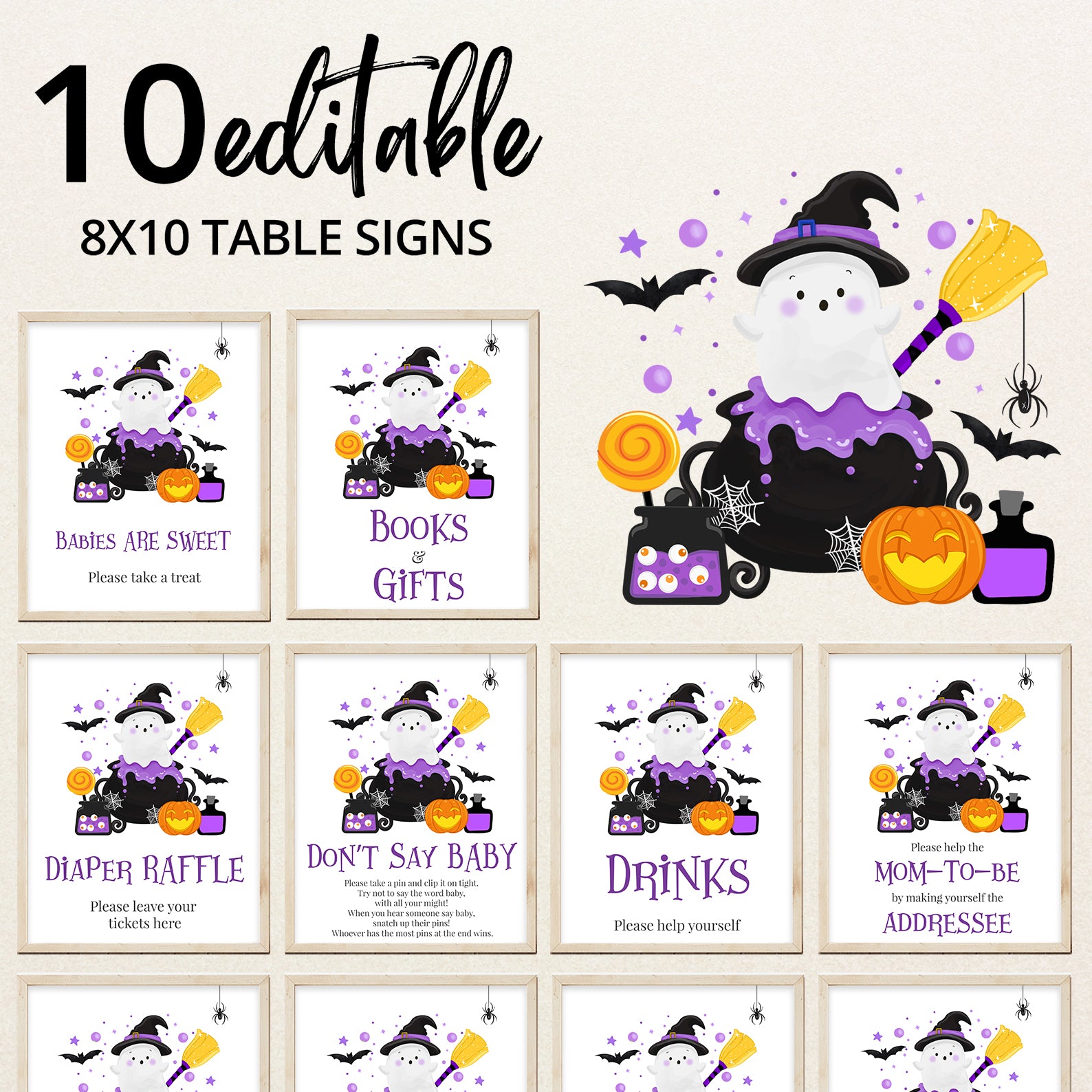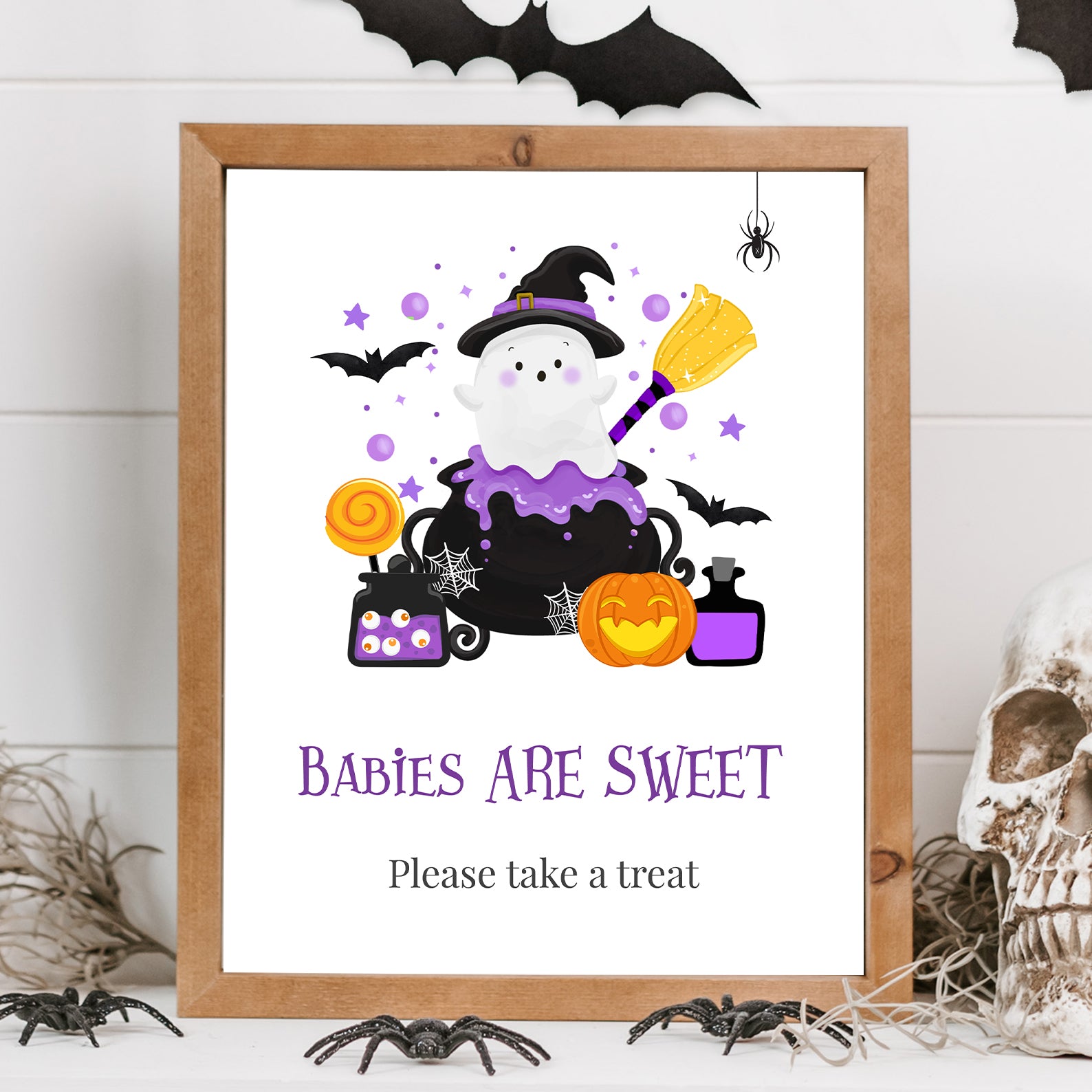 - Purchase this Little Boo Brewing in Cauldron Purple Digital Baby Shower Table Sign template
