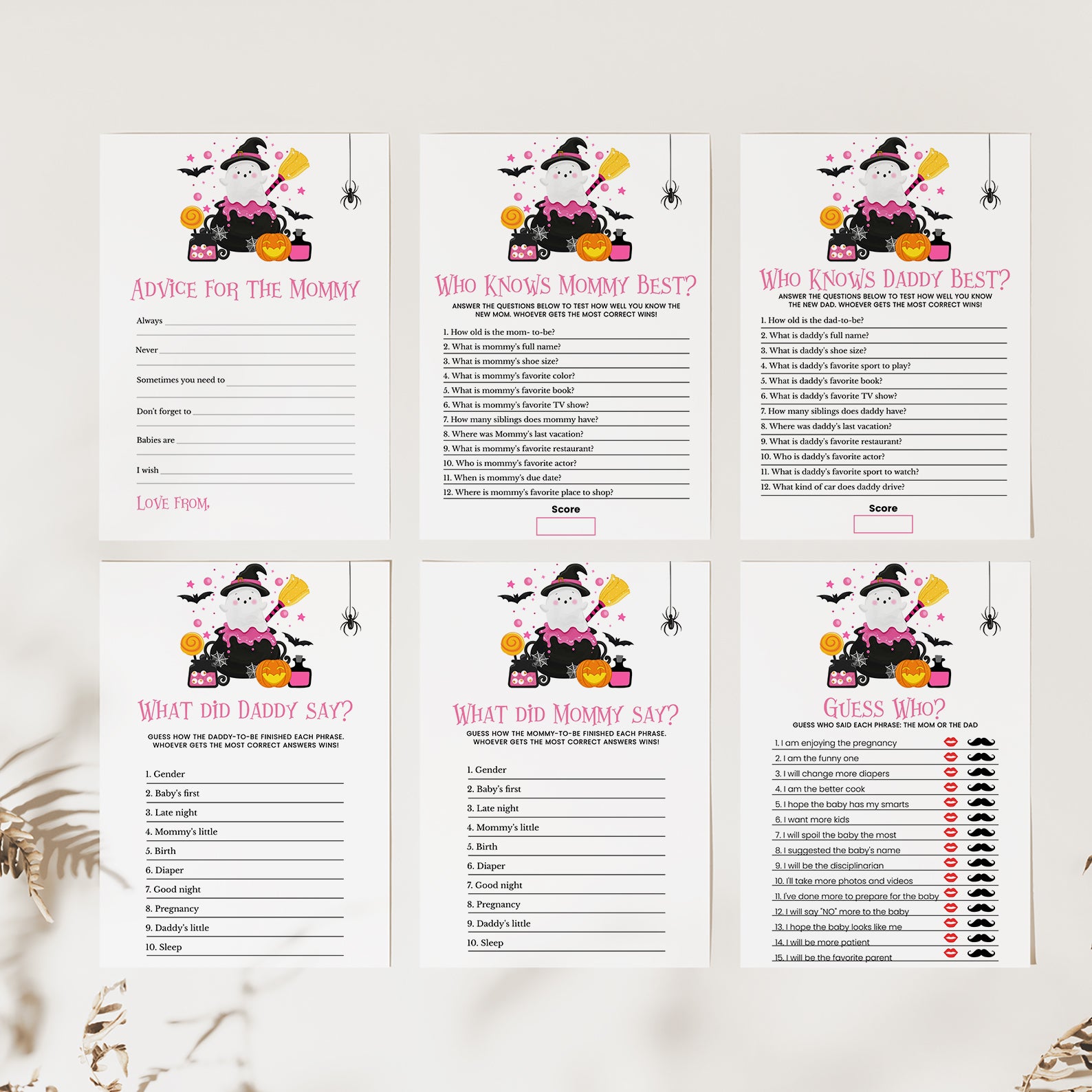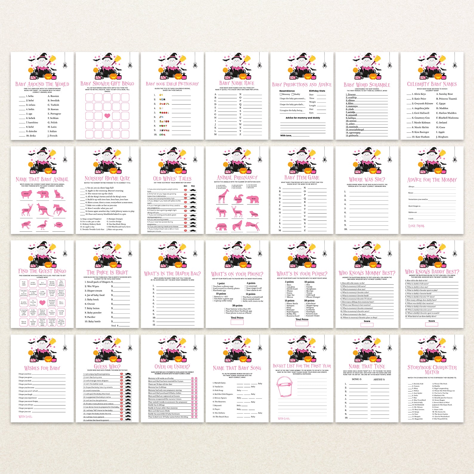 - Purchase this Little Boo Brewing in Cauldron Pink Digital Baby Shower Game Bundle template