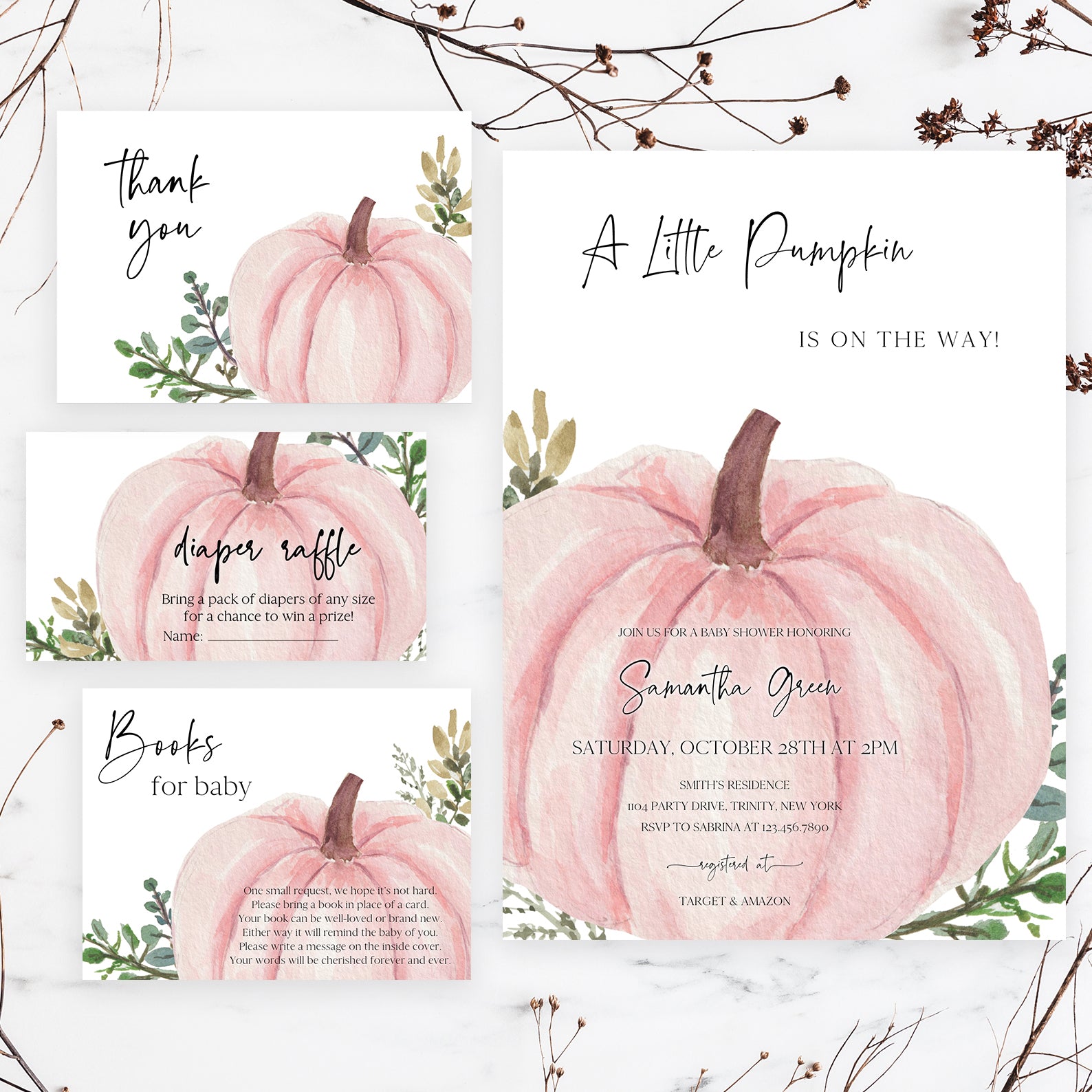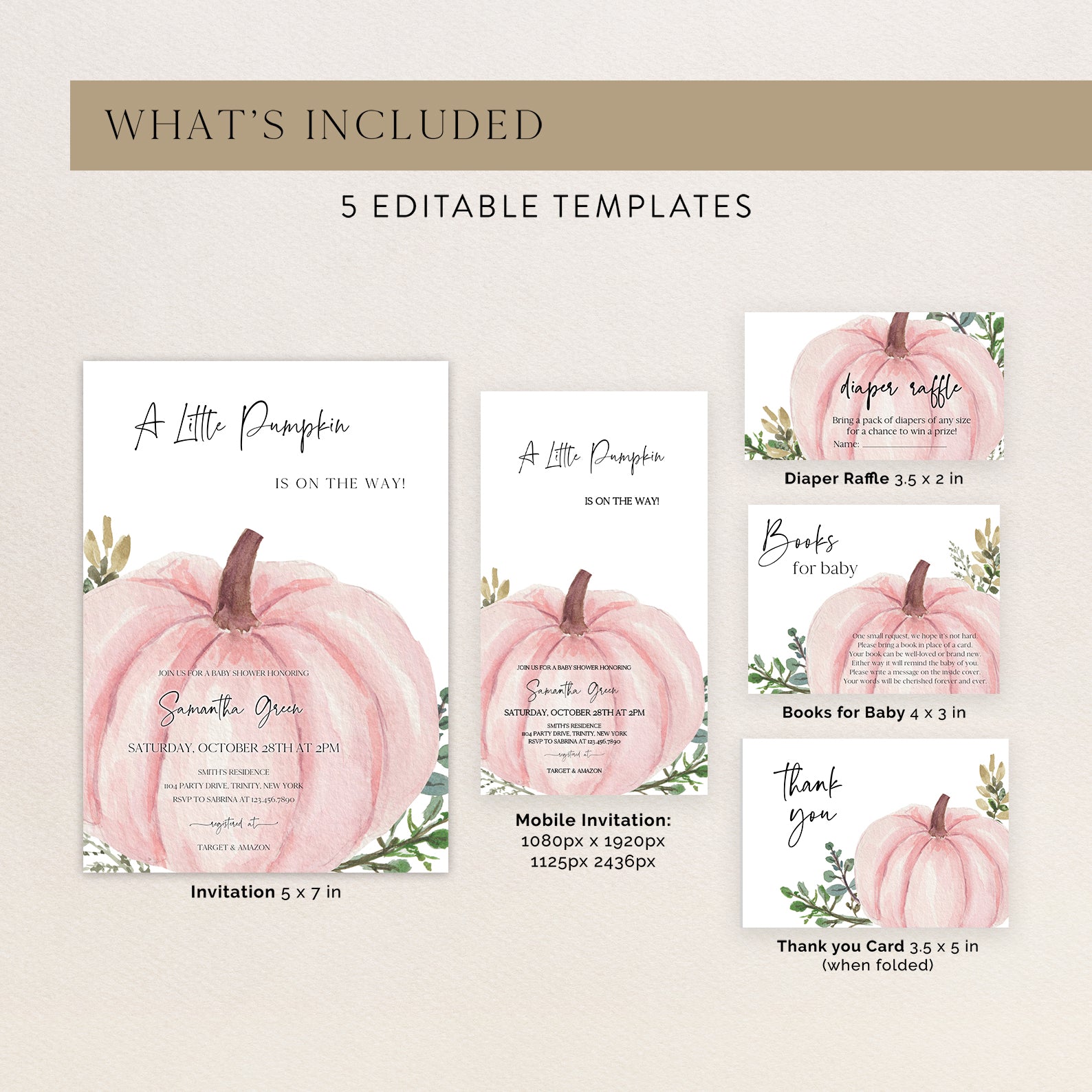 - Purchase this Large Pumpkin with Green Leaves Pink Baby Shower Digital Invite Bundle template