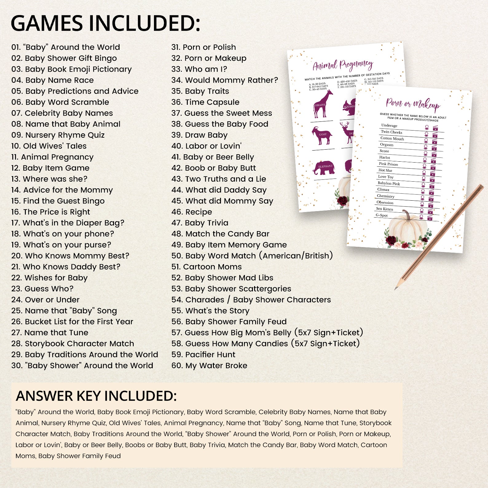 Baby Shower Digital Game Bundle Orange Pumpkin & Gold Sparkles
