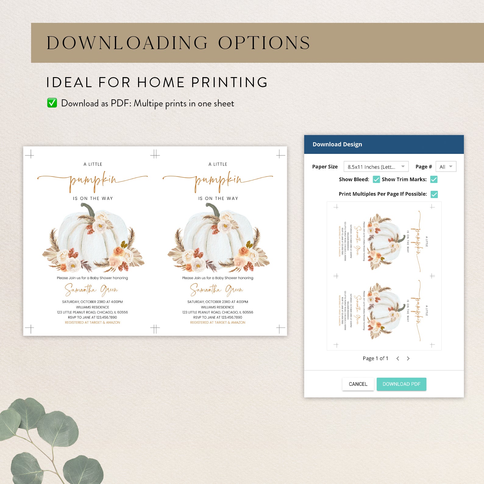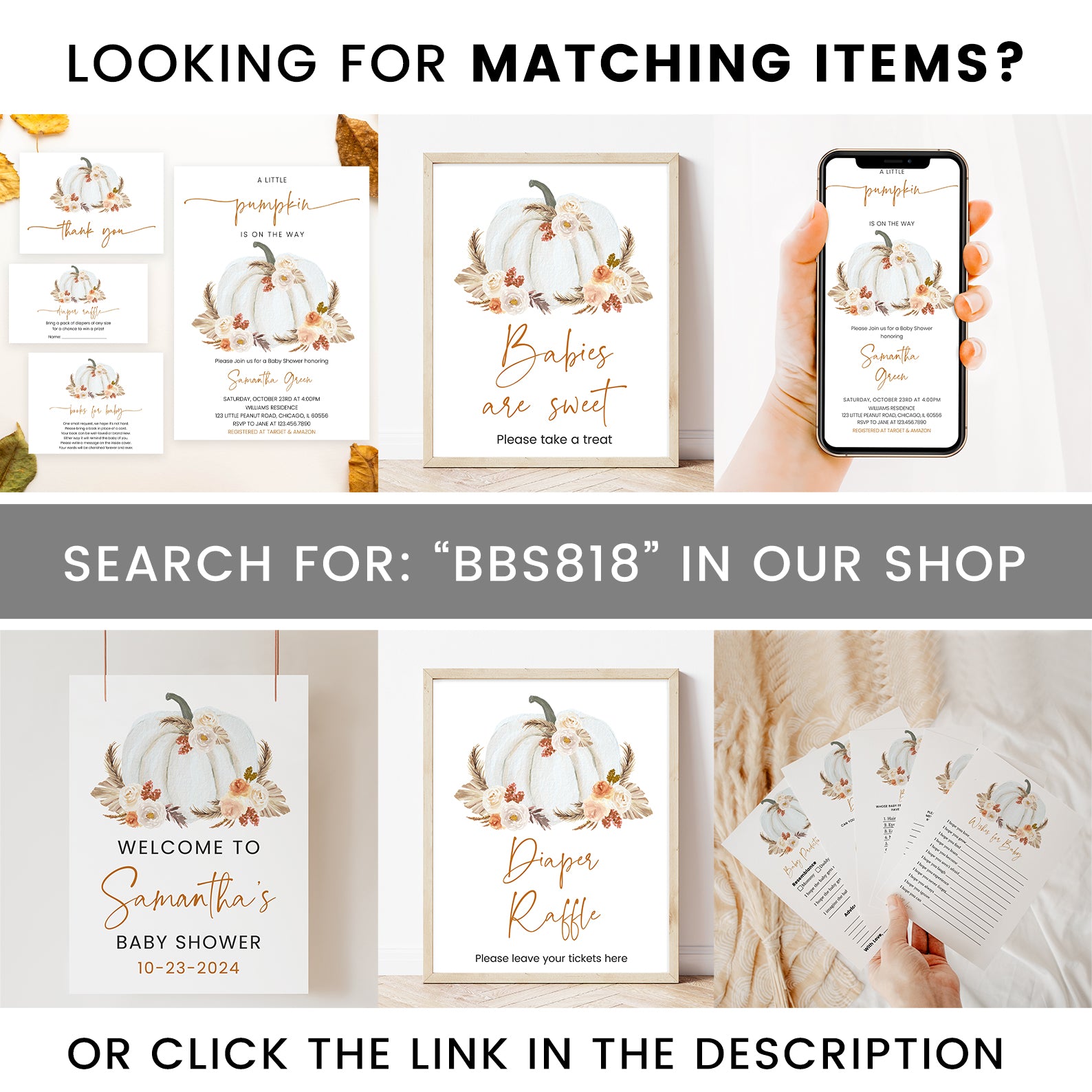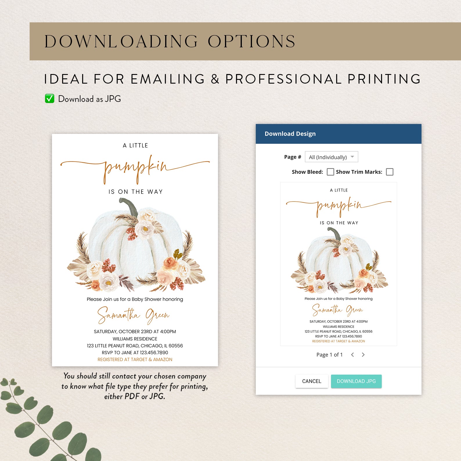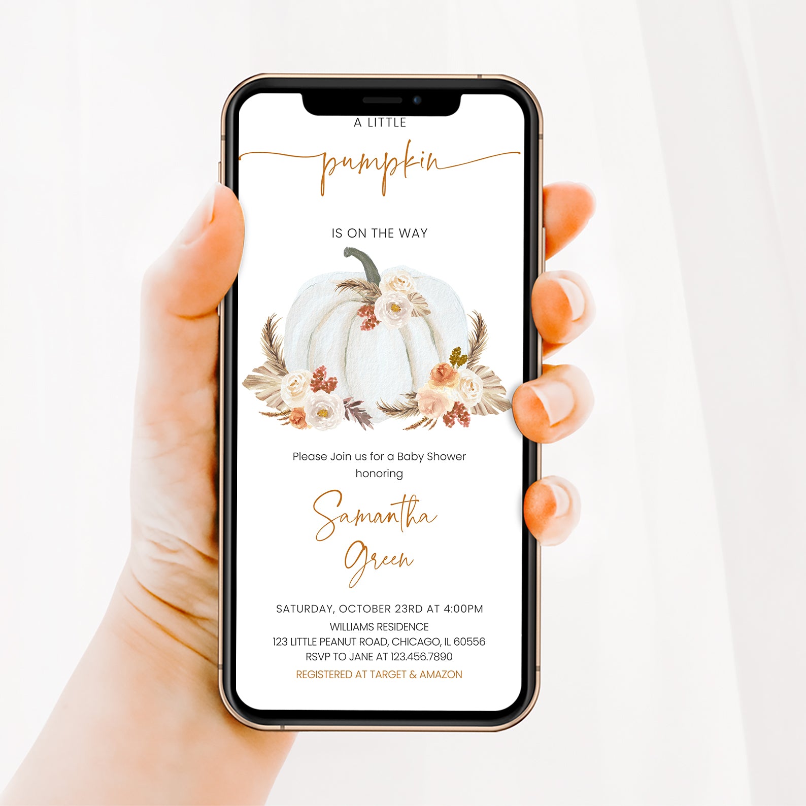 - Purchase this Little Pumpkin on the Way Invite: White Pumpkin & Boho Roses template