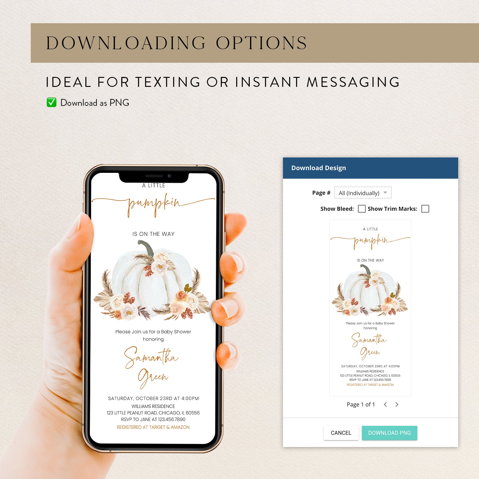 Welcome your little one with our Fall Baby Shower Digital Invitation. Featuring a whimsical white pumpkin adorned with boho watercolor roses, this design perfectly captures autumn’s charm. Ideal for inviting friends and family, this elegant invitation combines warmth and seasonal beauty, making it a must-have for your celebration. Embrace the season and let everyone know a little pumpkin is on the way!