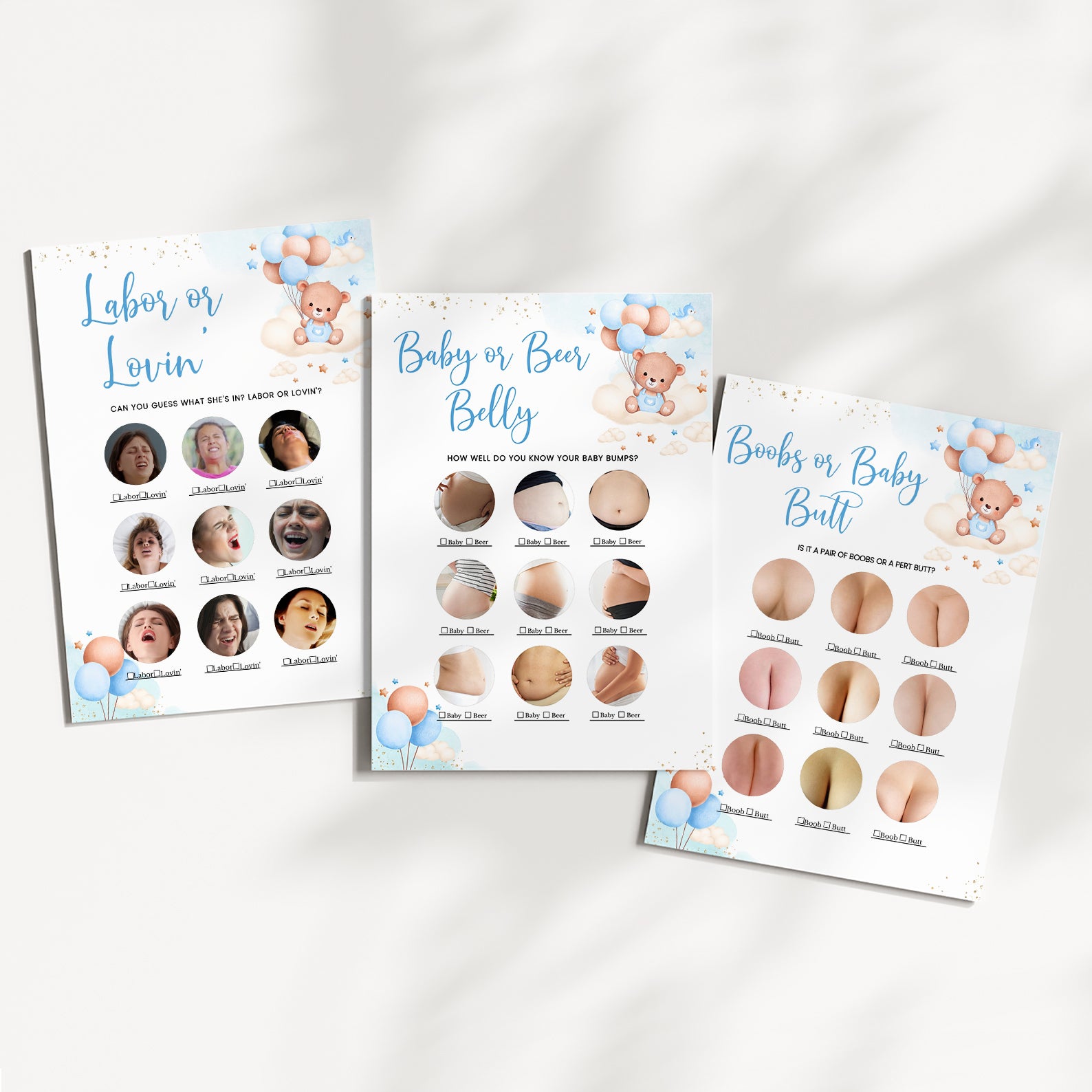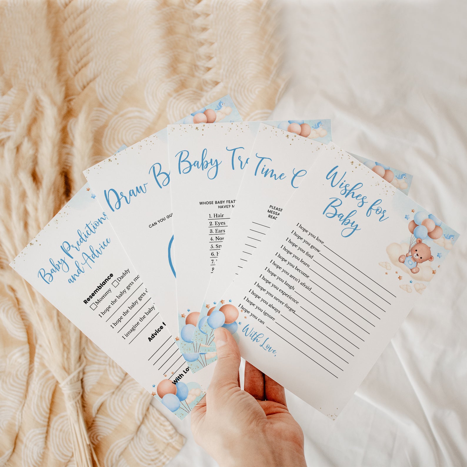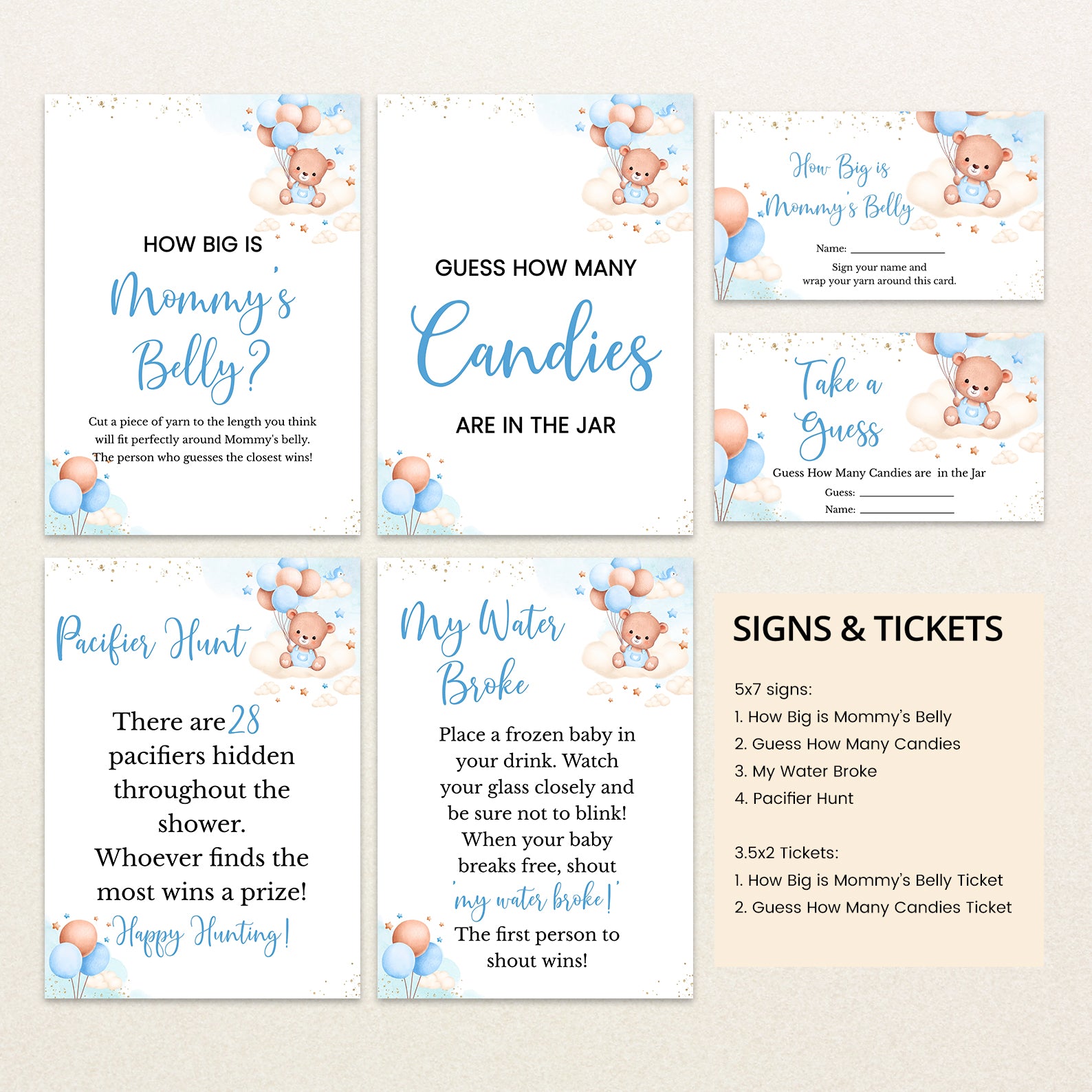 We Can Bearly Wait Baby Shower Game Bundle: Blue Balloons & Clouds