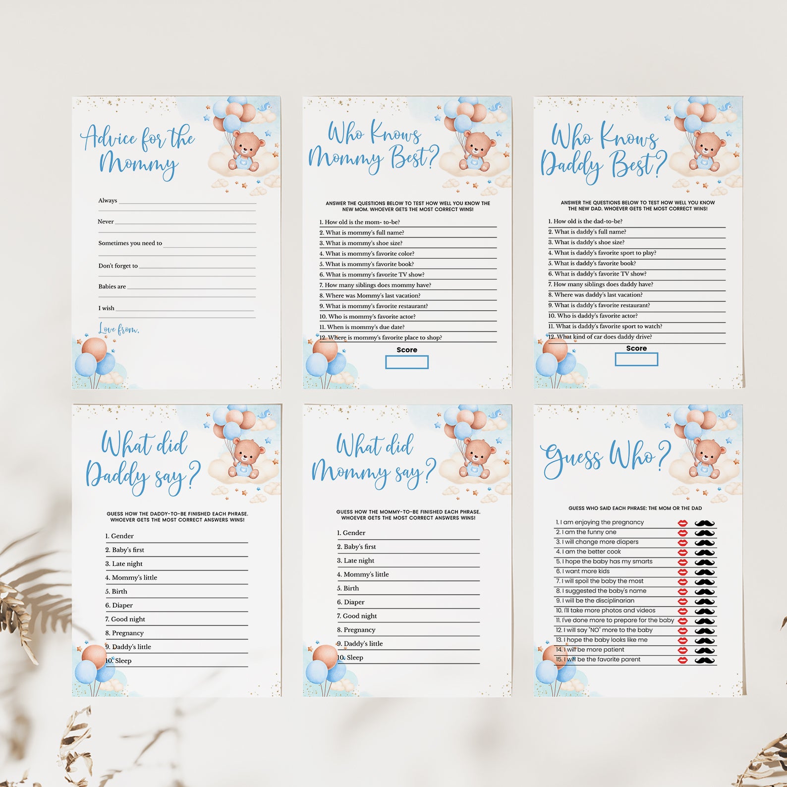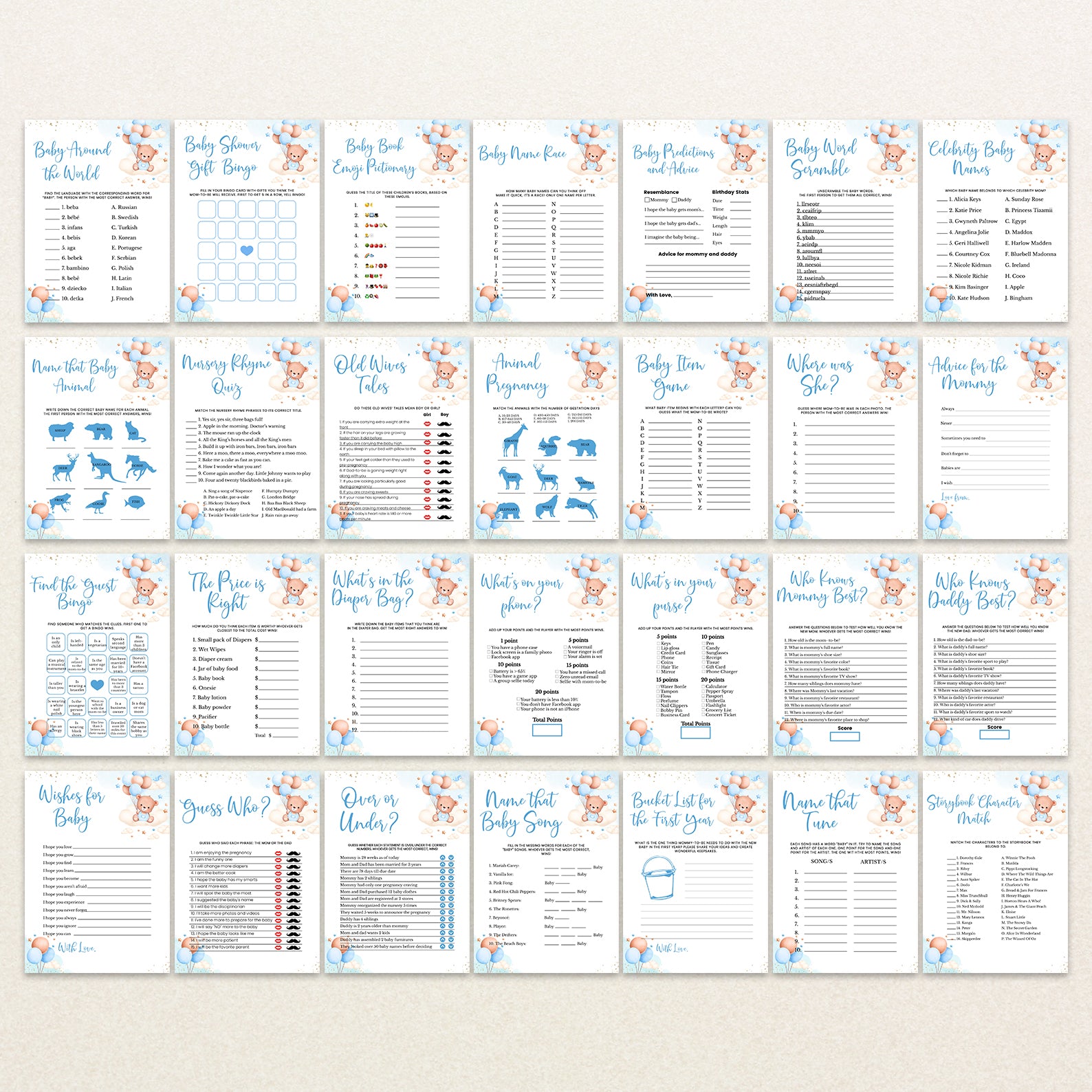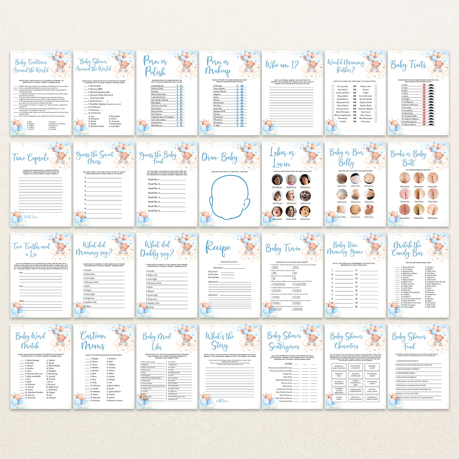 We Can Bearly Wait Baby Shower Game Bundle: Blue Balloons & Clouds