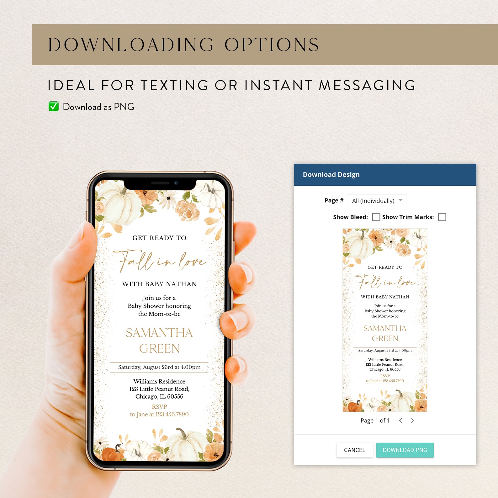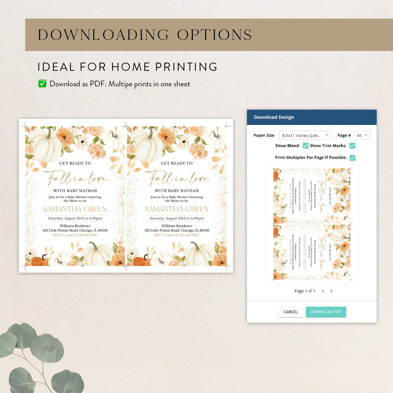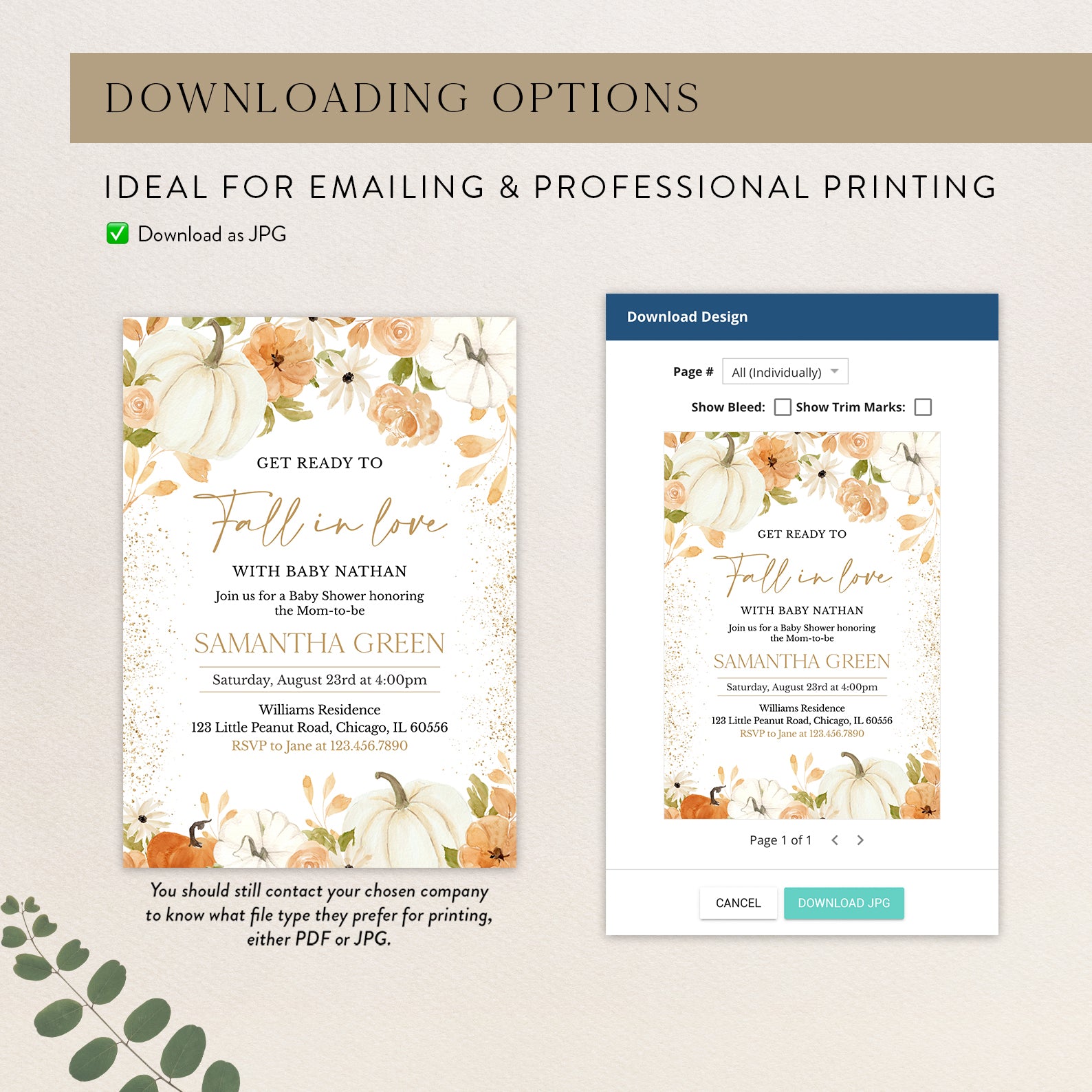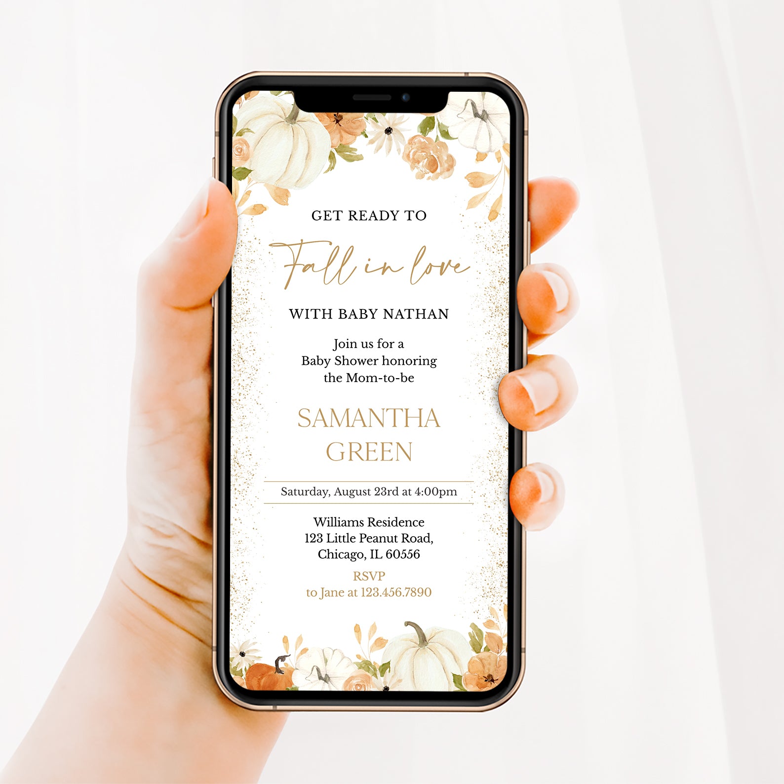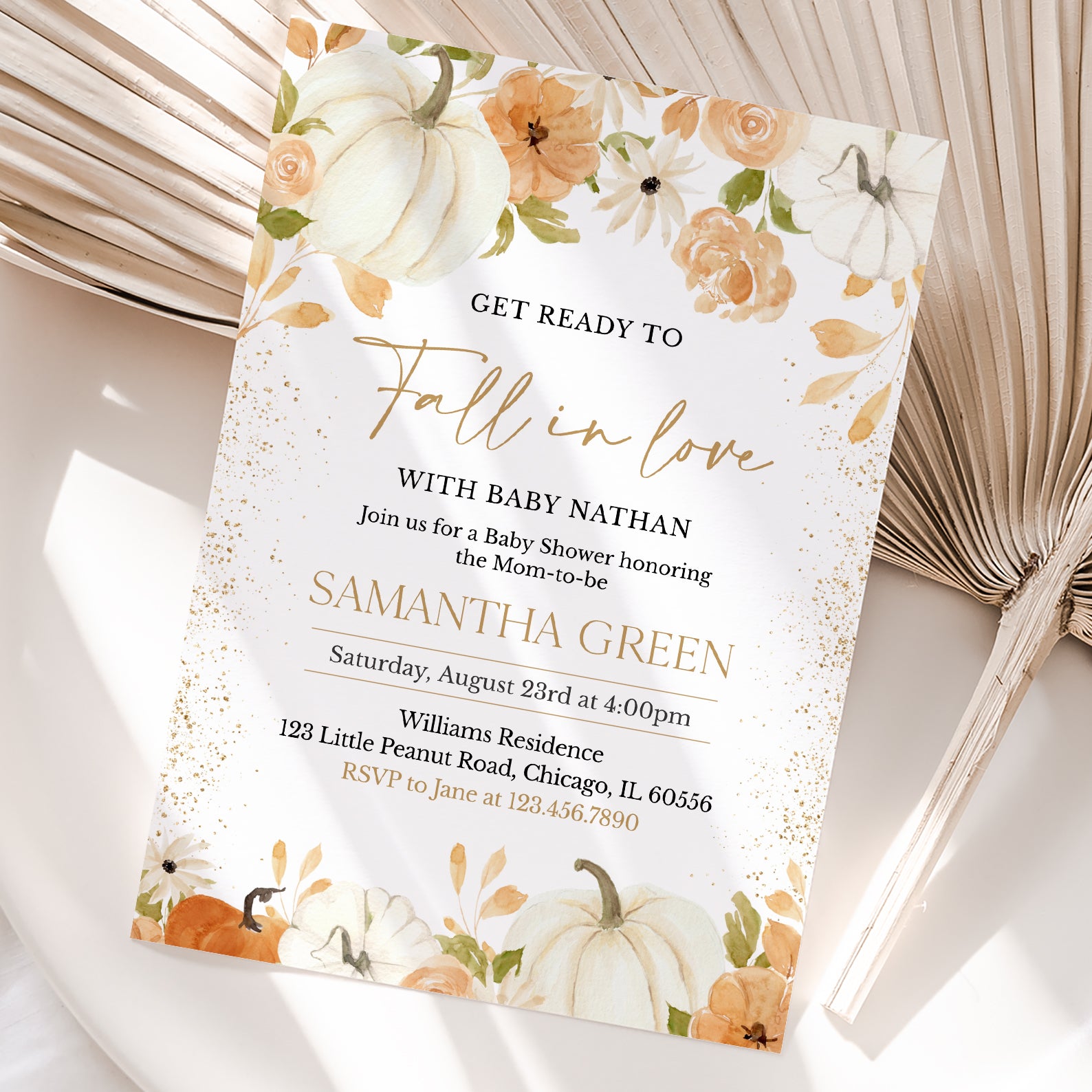 - Purchase this Fall in Love: Pumpkin & Floral Baby Shower Digital Invitation Bundle template
