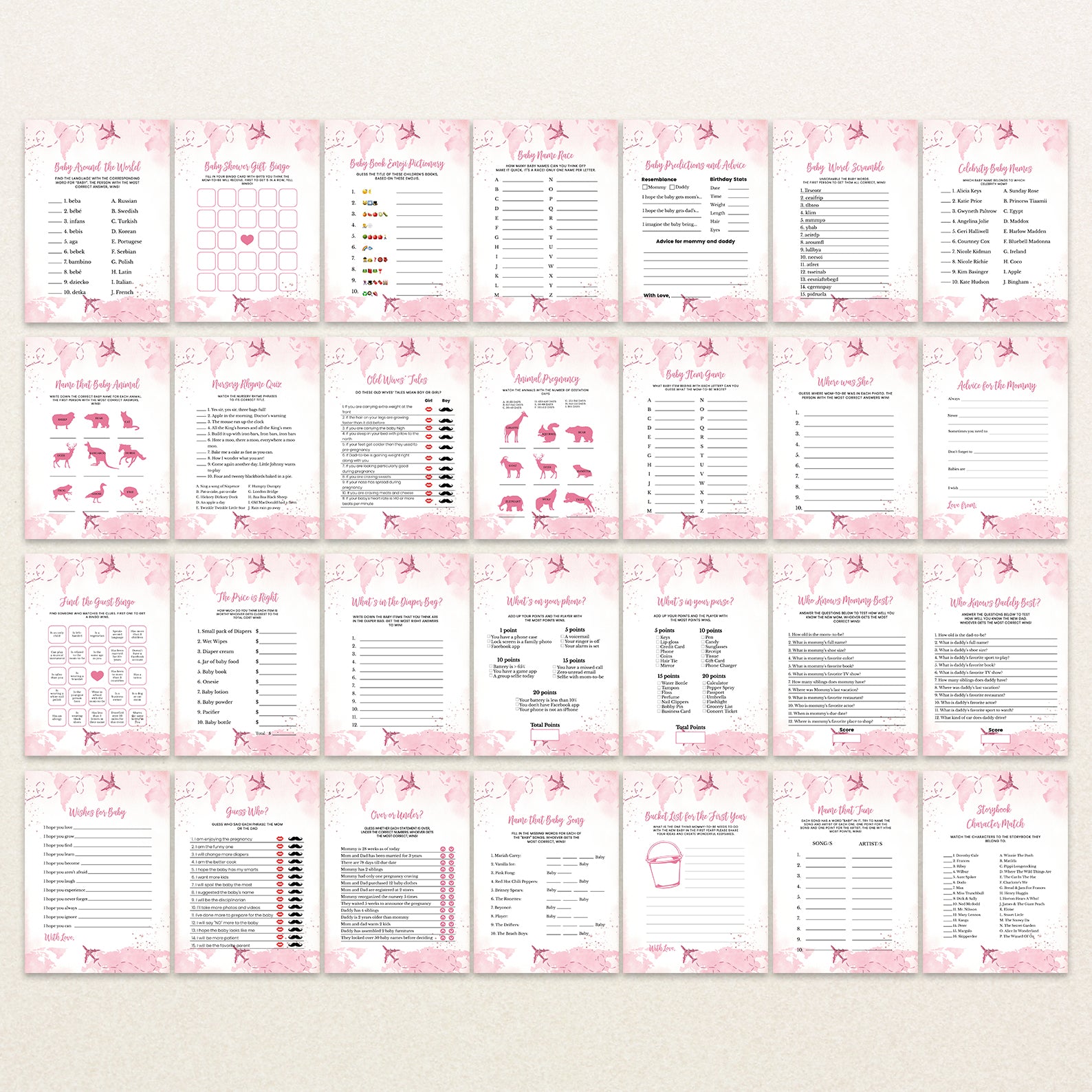 Embark on an unforgettable journey with our Adventure Awaits Baby Shower Game Bundle! This whimsical collection includes 60 engaging games inspired by the spirit of adventure, featuring everything from fun trivia to exciting word searches, all designed to keep your guests entertained. With a charming pink-themed design that mirrors the playful flying airplanes and map layout from the invitation, this bundle sets the perfect tone for your celebration. Easy to customize and share, these games are perfect for bringing your guests together for a delightful time. Make your baby shower a memorable adventure with this exciting and fun-filled game bundle!