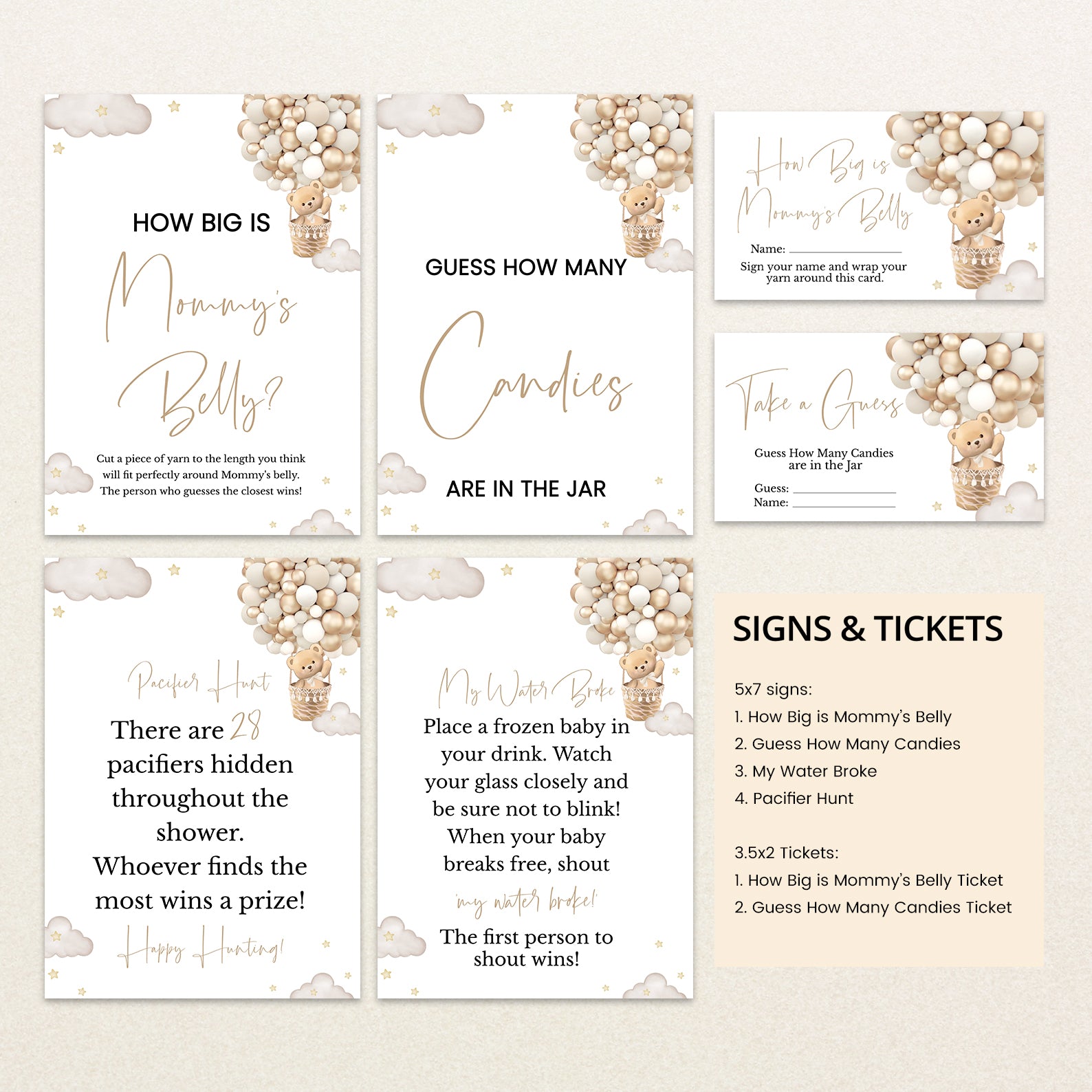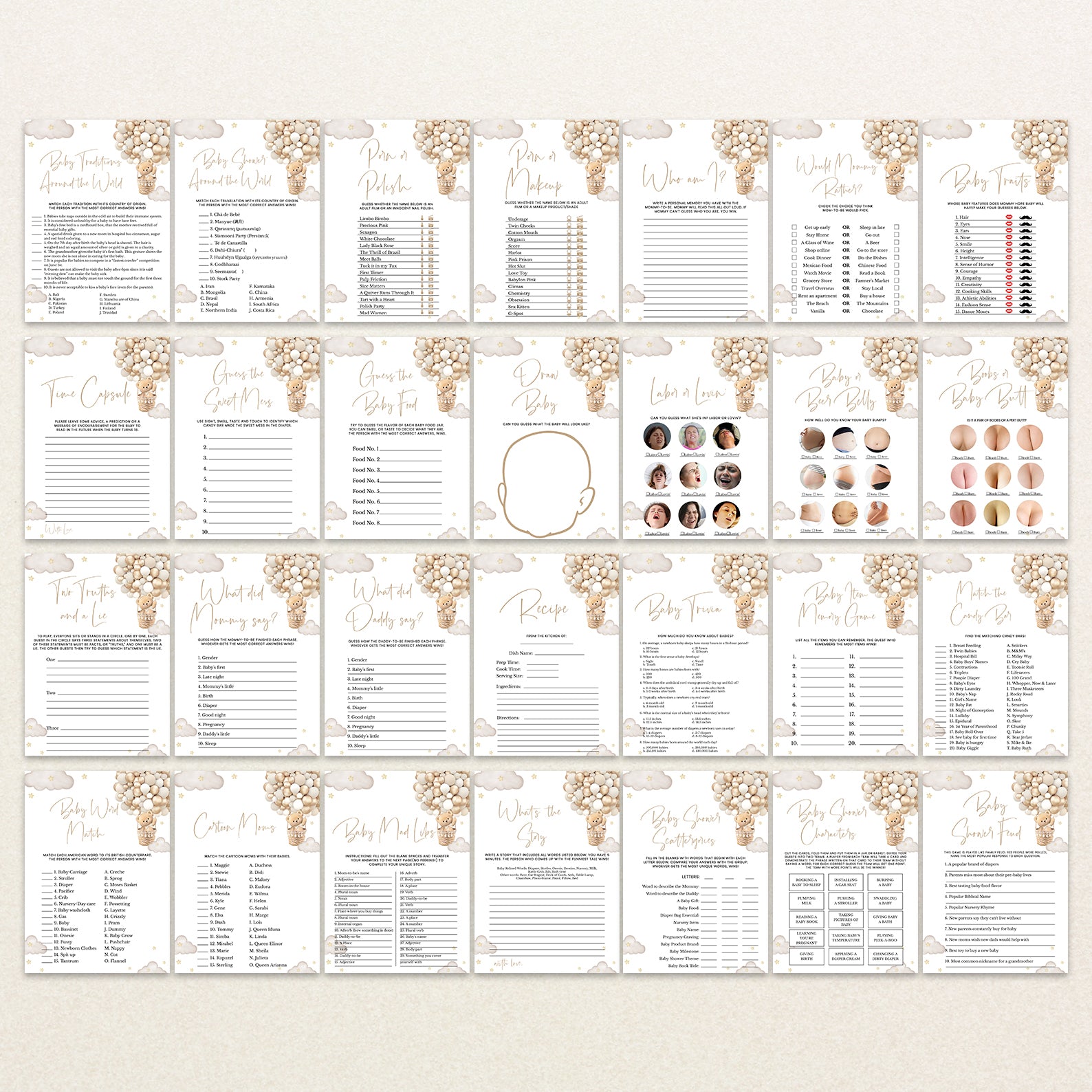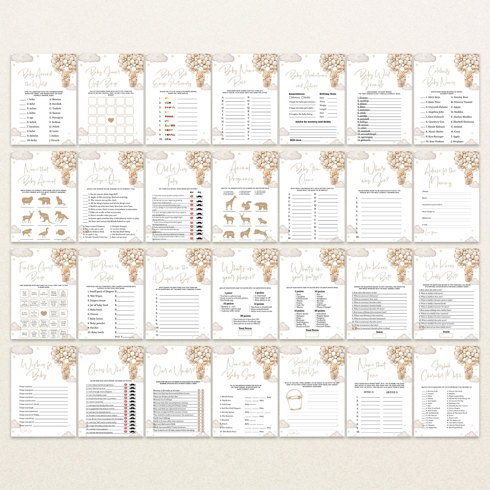 Celebrate your little one's upcoming arrival with our charming Oh Baby Baby Shower Game Bundle! Featuring a delightful brown-themed design, this bundle brings the magic of your invitation to life with 60 interactive games that will keep your guests entertained. From word searches to baby trivia, these fun-filled activities are perfect for creating lasting memories. The cute waving teddy bear, whimsical hot air balloons, and twinkling stars set a playful and joyful tone, making it the ideal choice for your baby shower celebration. Effortlessly customizable and easy to share, this bundle will add a unique and exciting touch to your special day!