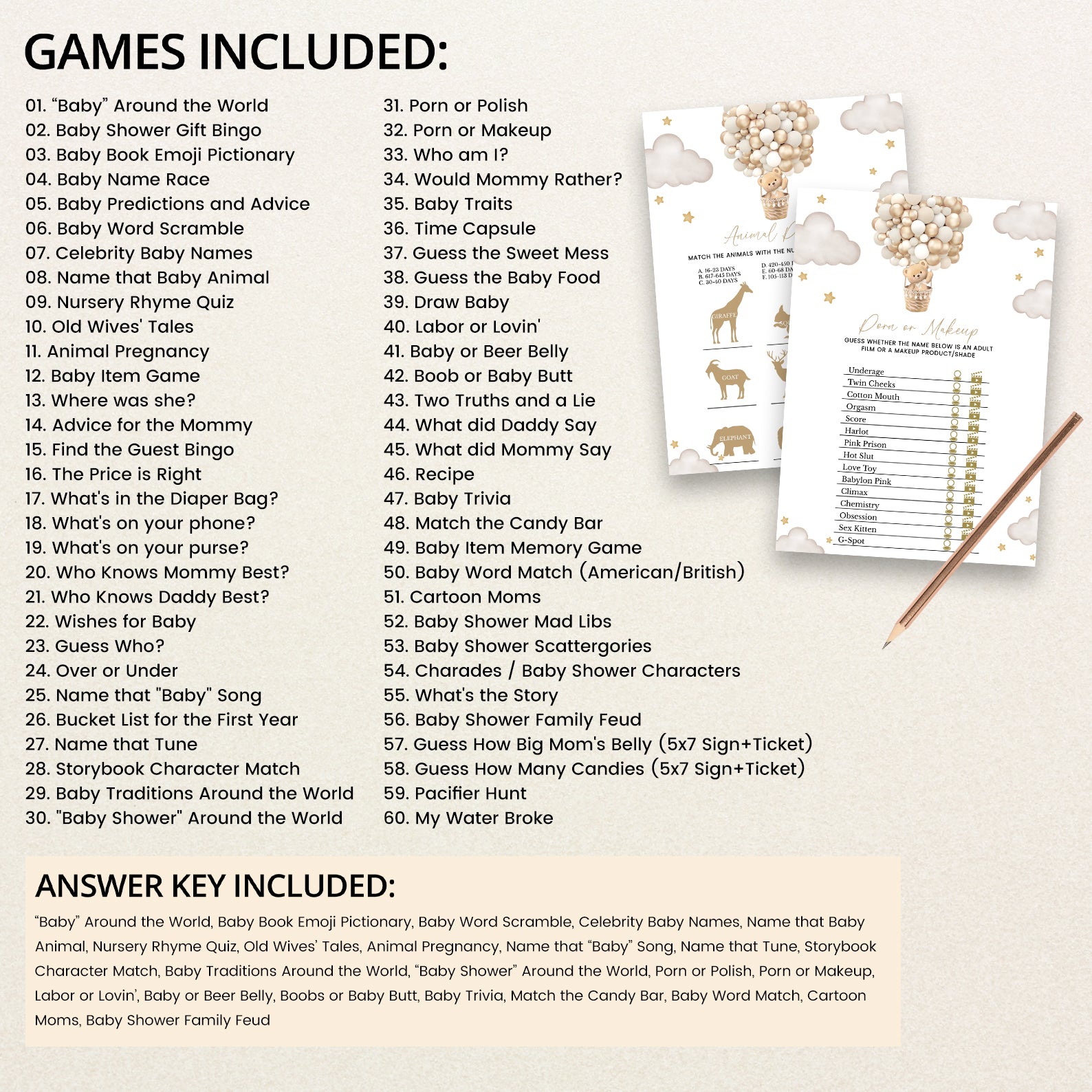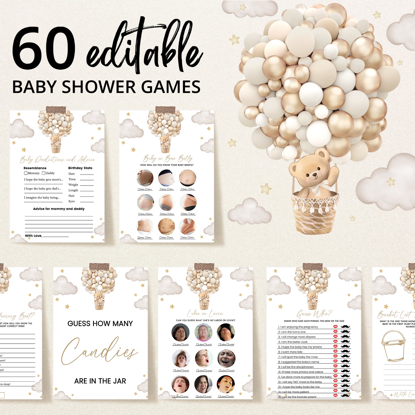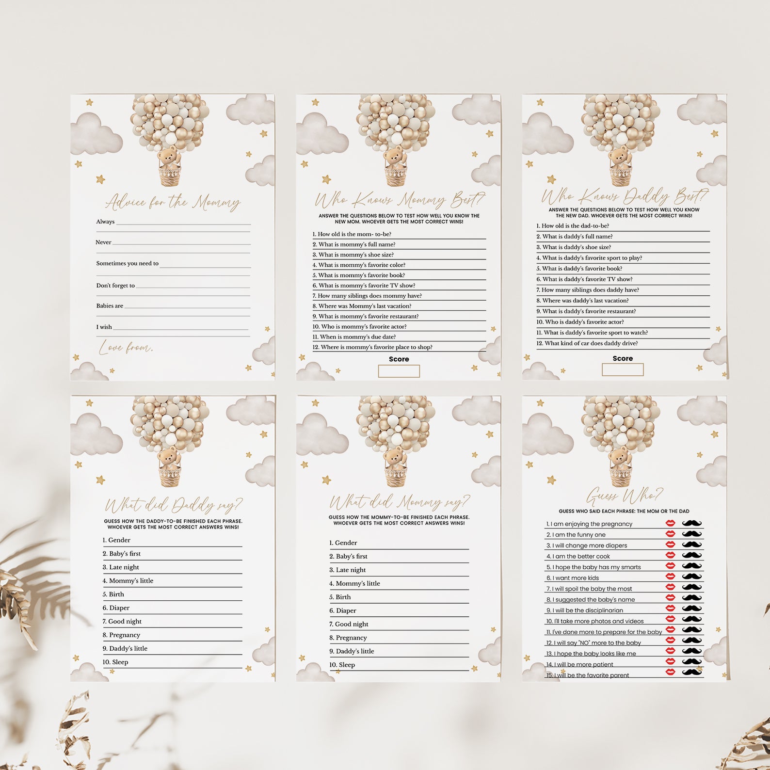 - Purchase this Brown Bear Baby Shower Game Bundle: Hot Air Balloon Theme template