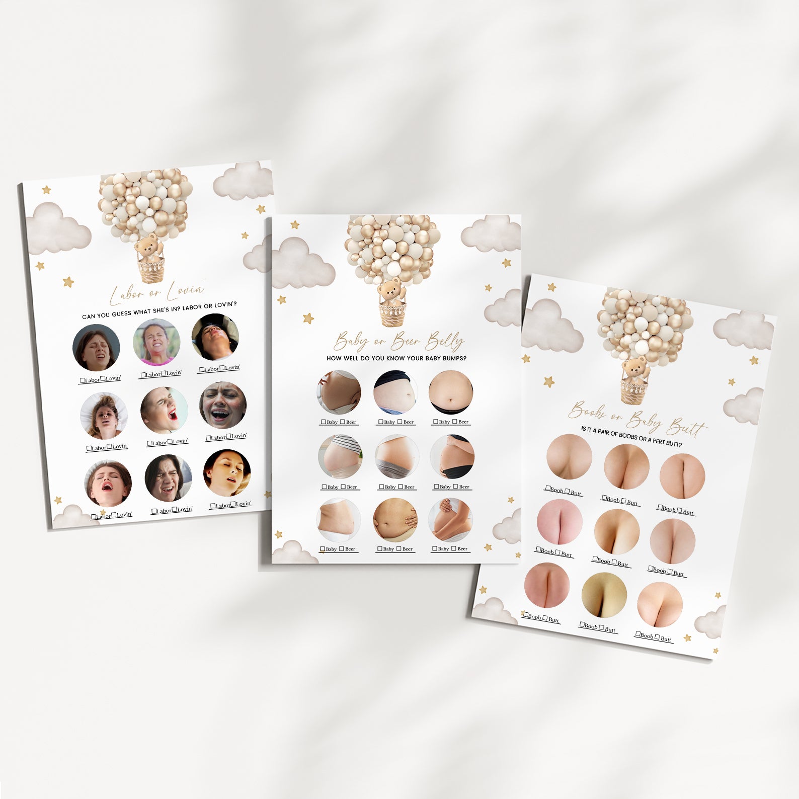Brown Bear Baby Shower Game Bundle: Hot Air Balloon Theme
