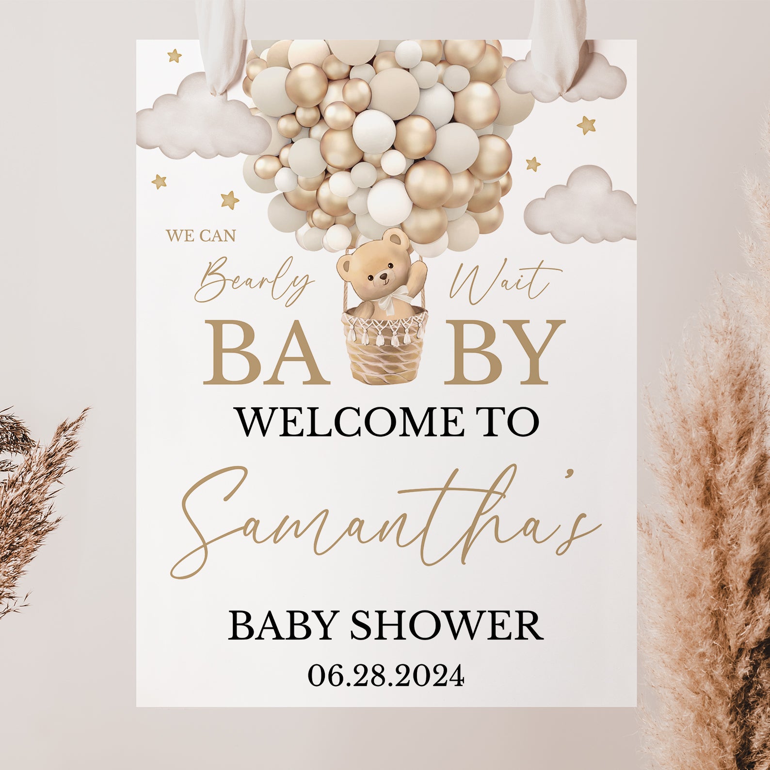 - Purchase this Brown Bear Baby Shower Welcome Sign: Hot Air Balloon Theme template