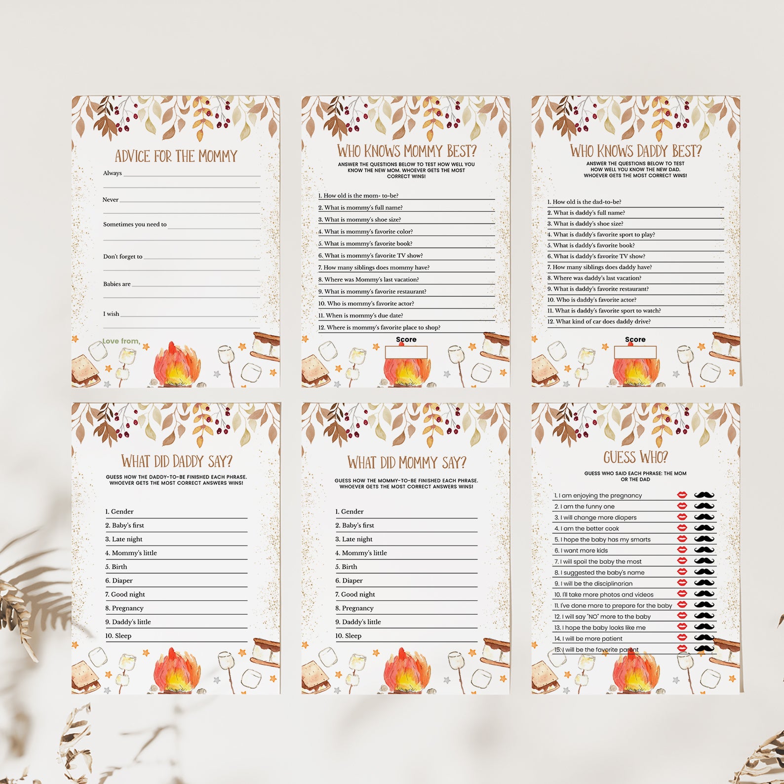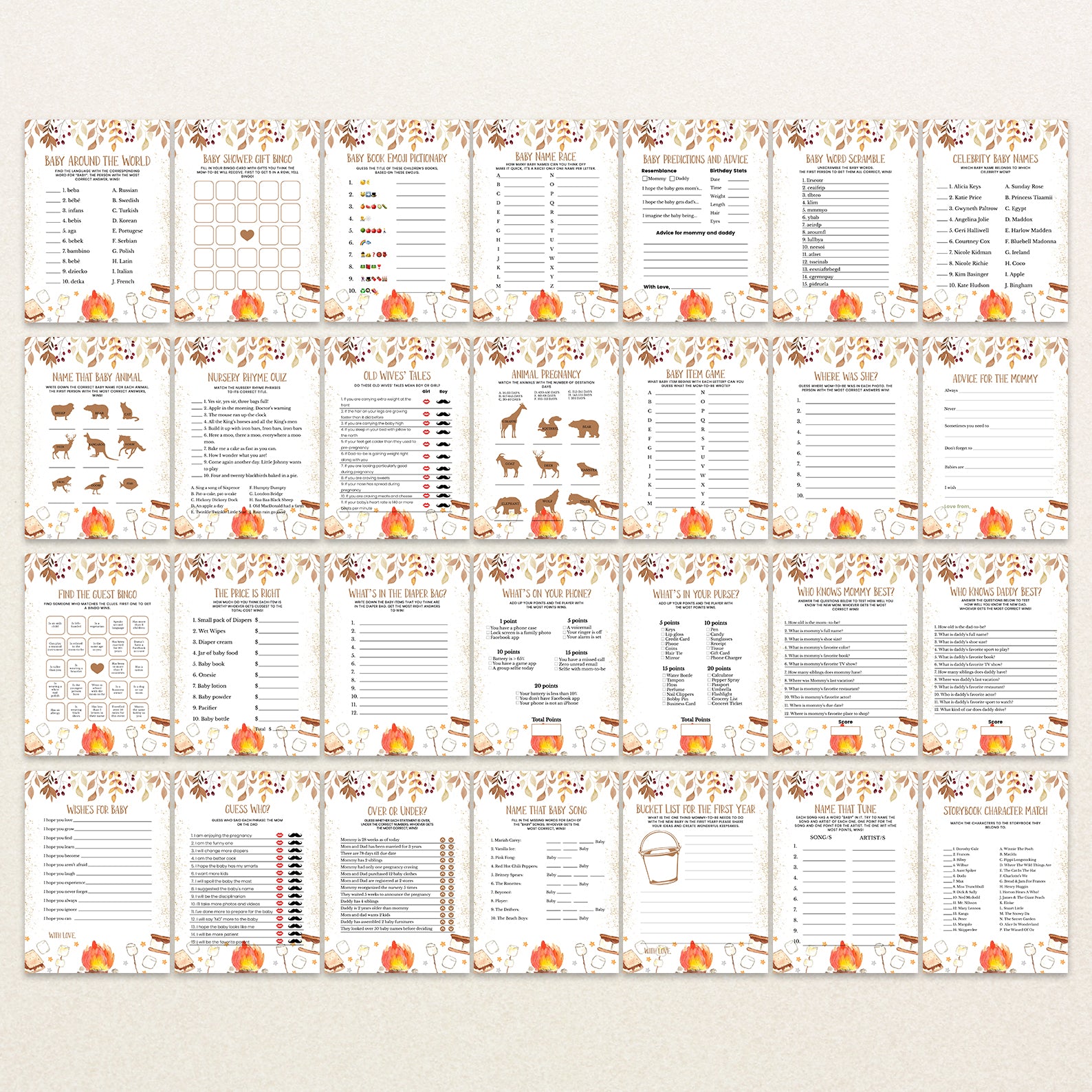 - Purchase this S'More Fun with Baby Fall Shower Game Bundle with Campfire & Gold template