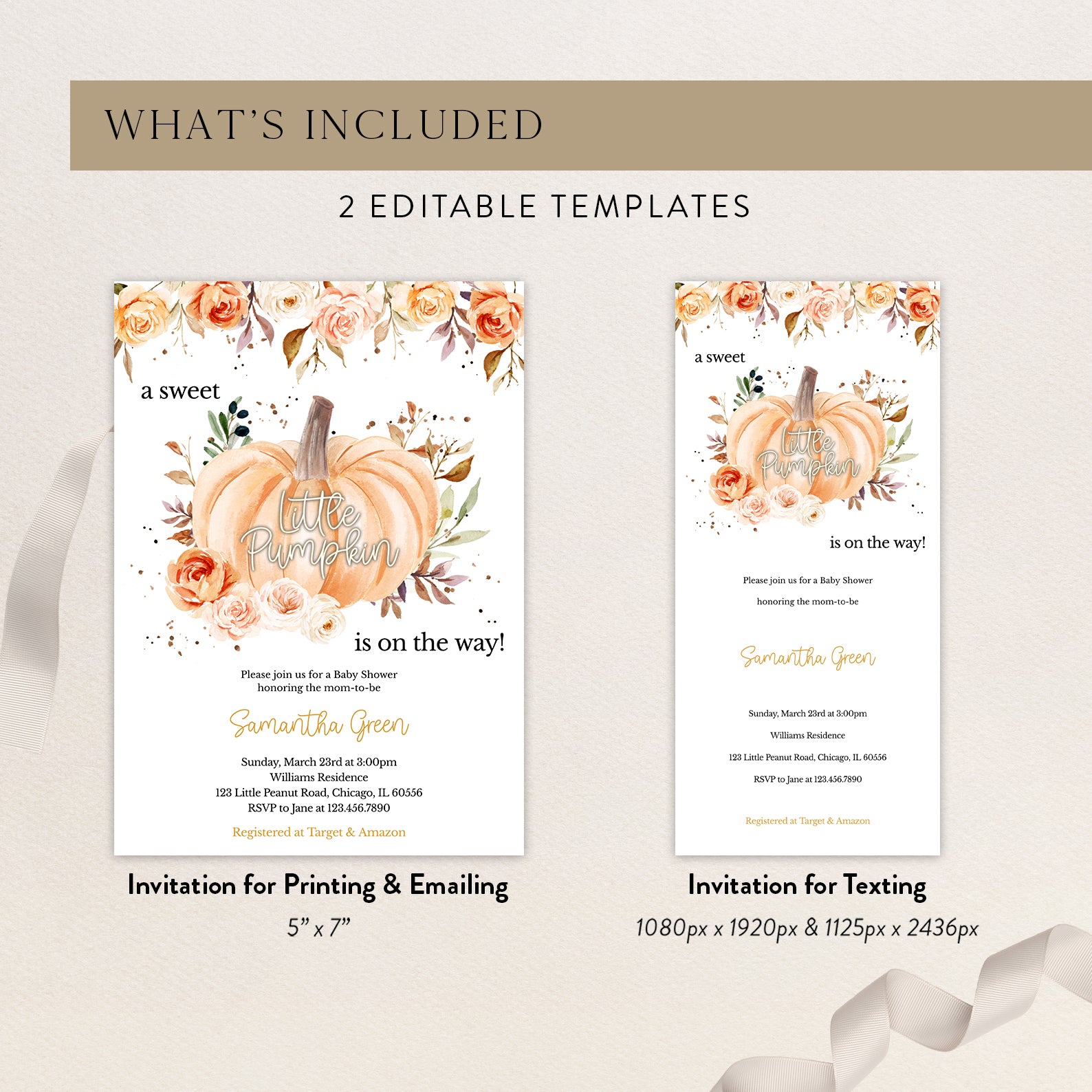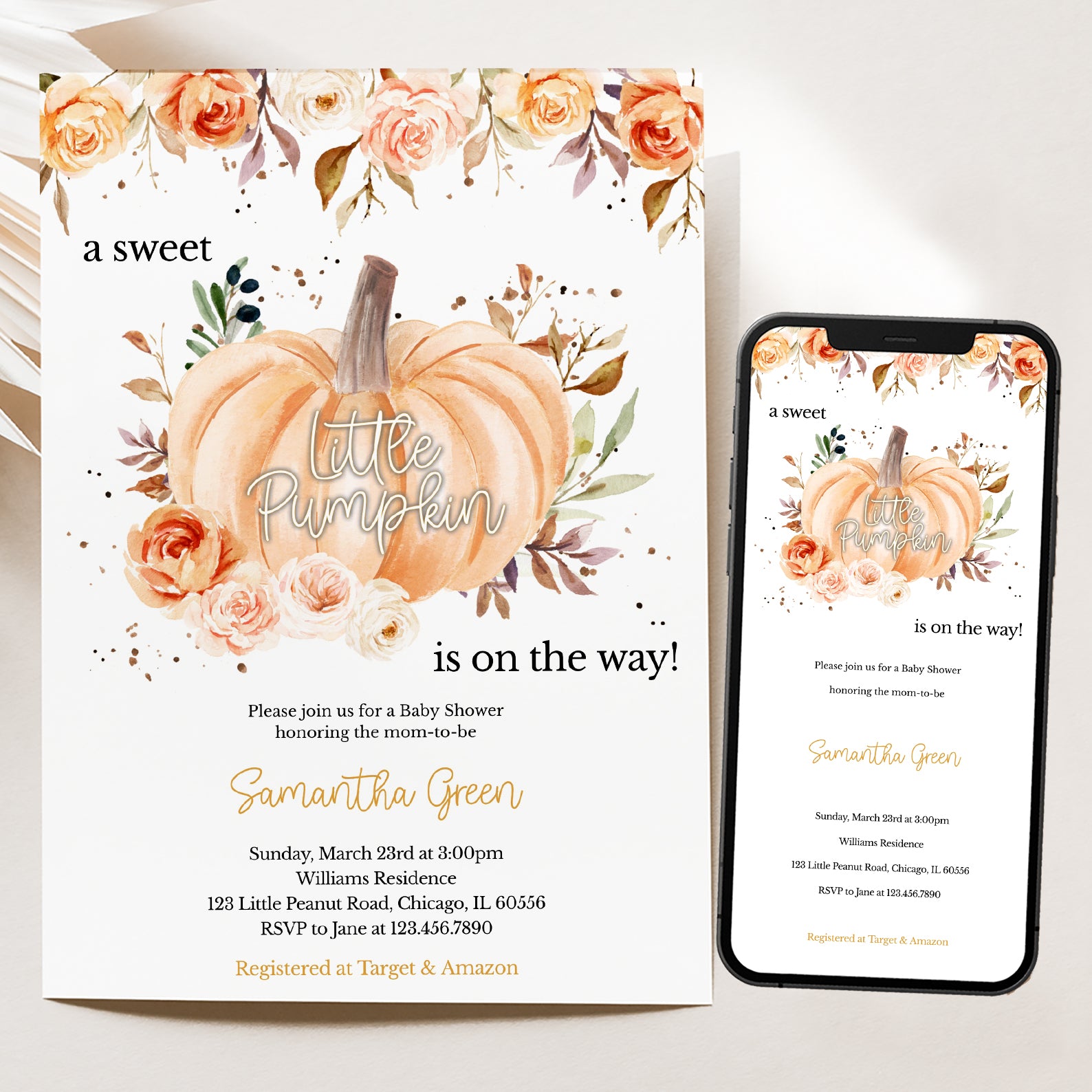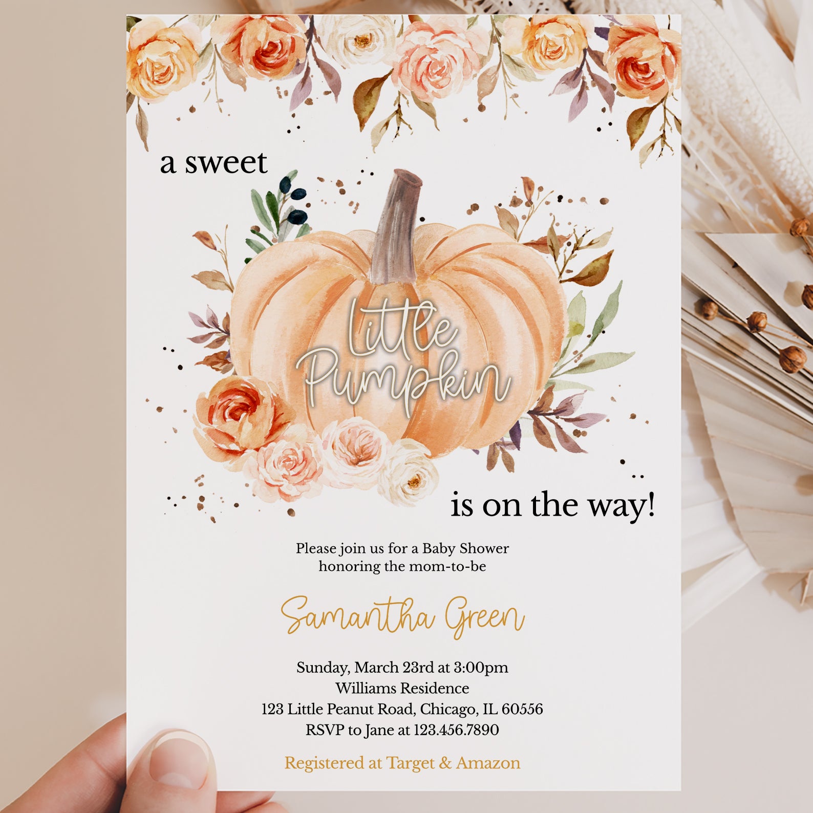 - Purchase this A Sweet Pumpkin is on the Way: Fall Baby Shower Invite template