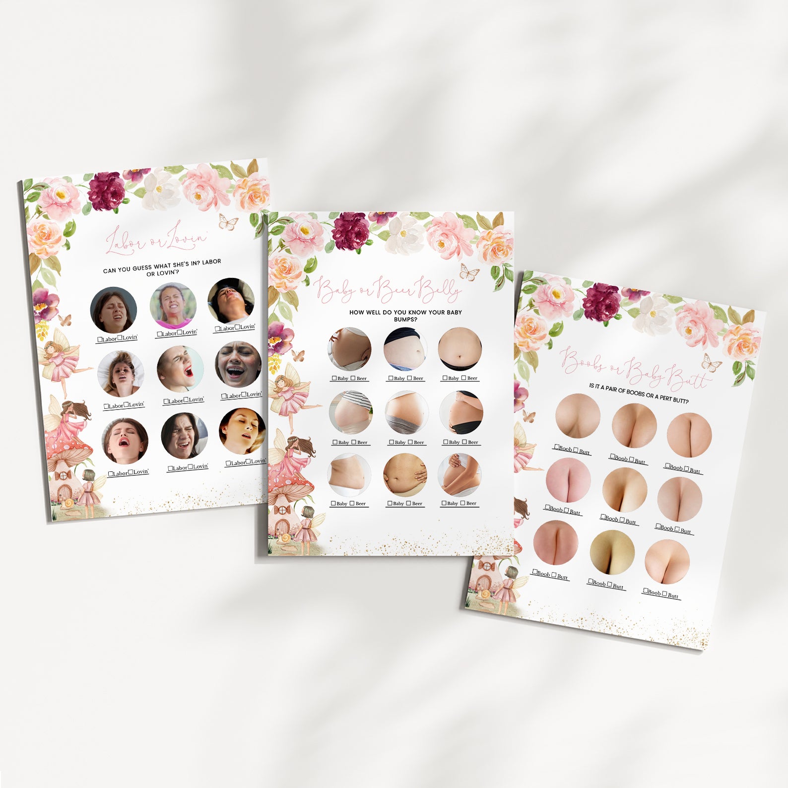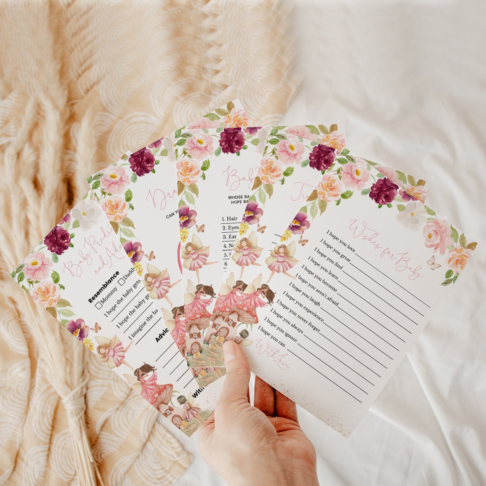 Fairy Fall Baby Shower Game Bundle with Flowers & Gold Accents