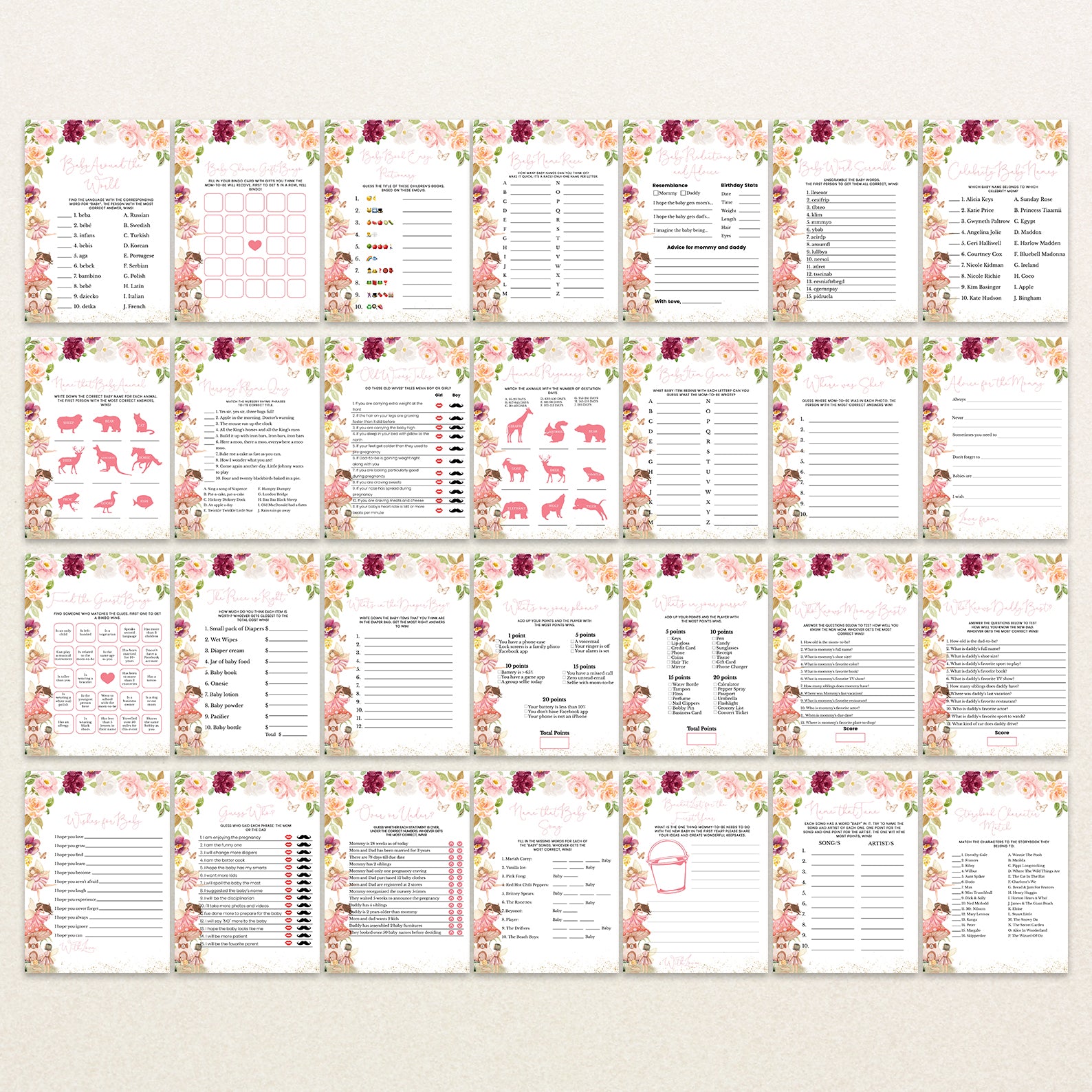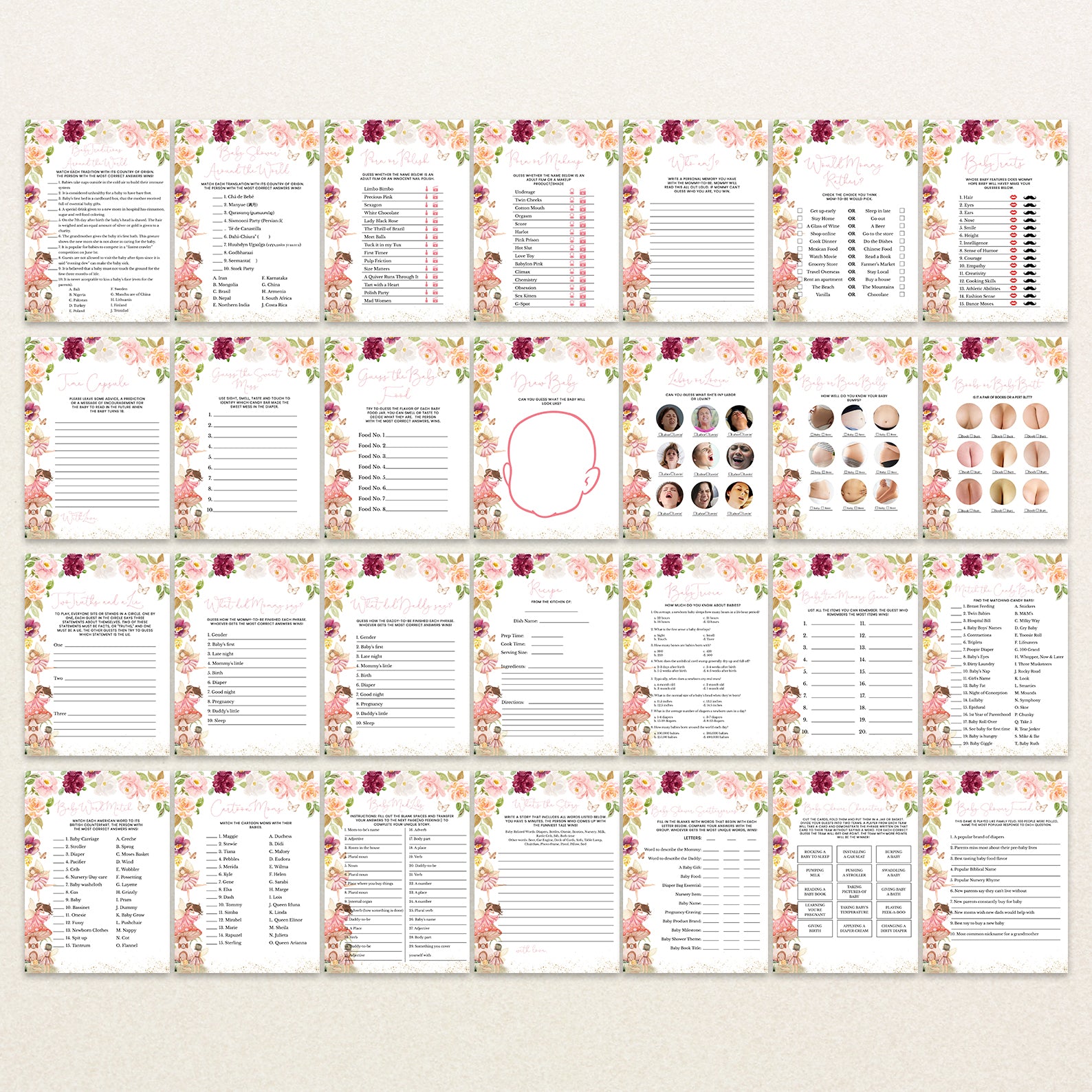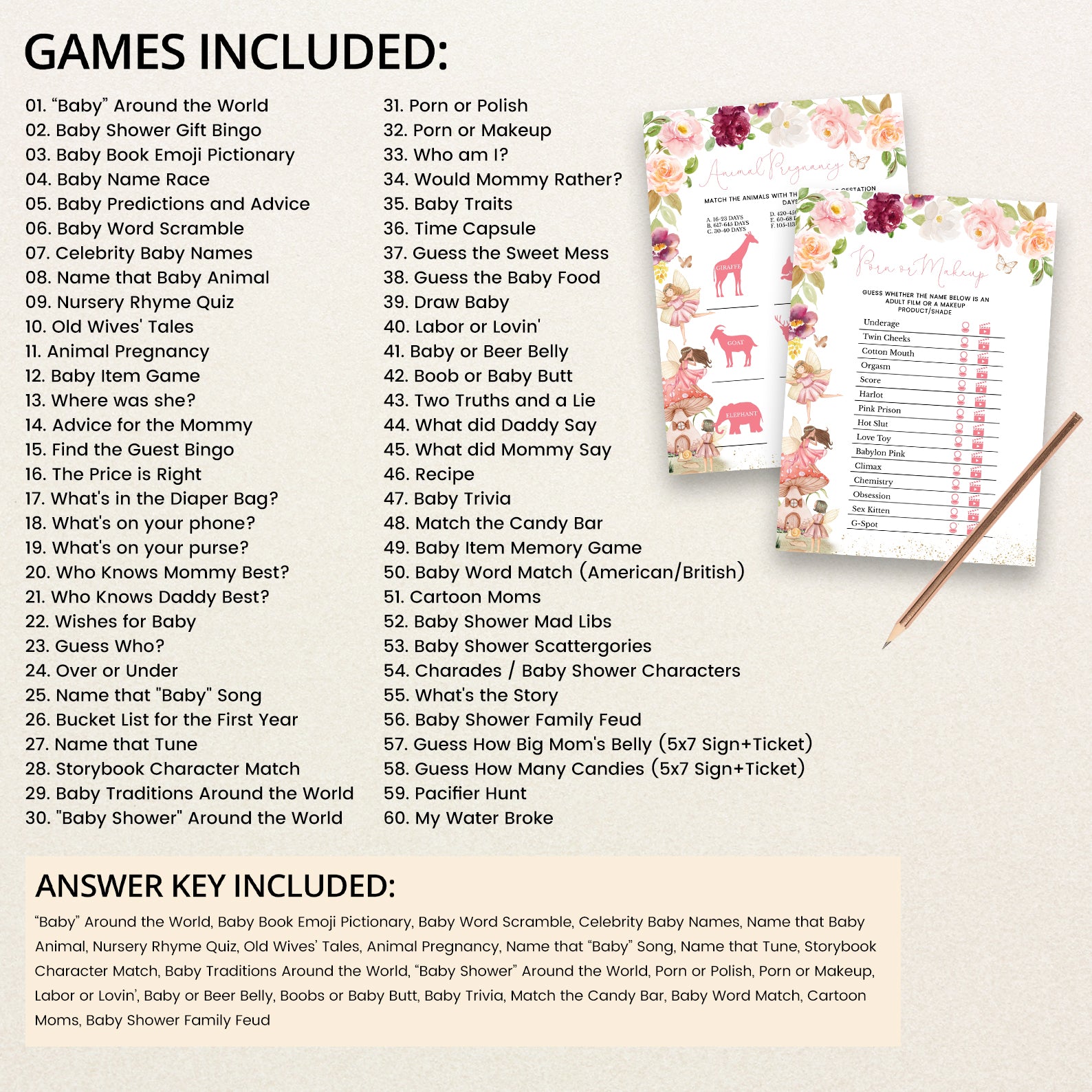 • 60 Editable Baby Shower Games Included