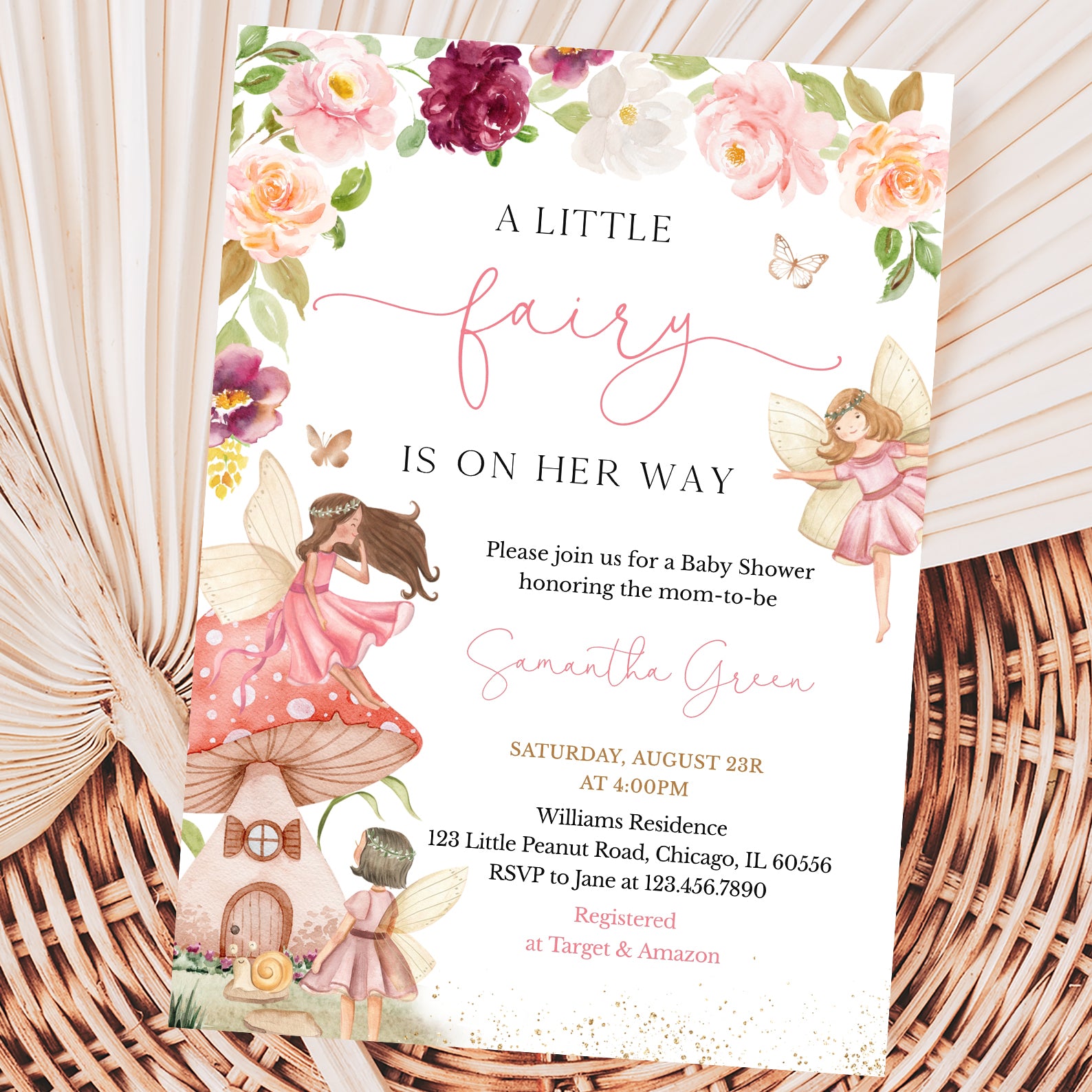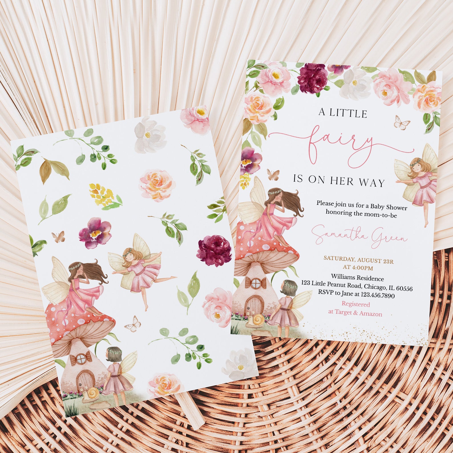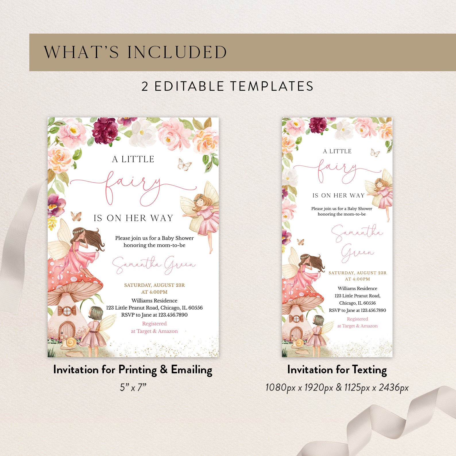 - Purchase this Fairy Fall Baby Shower Invite Bundle with Flowers & Gold Accents template