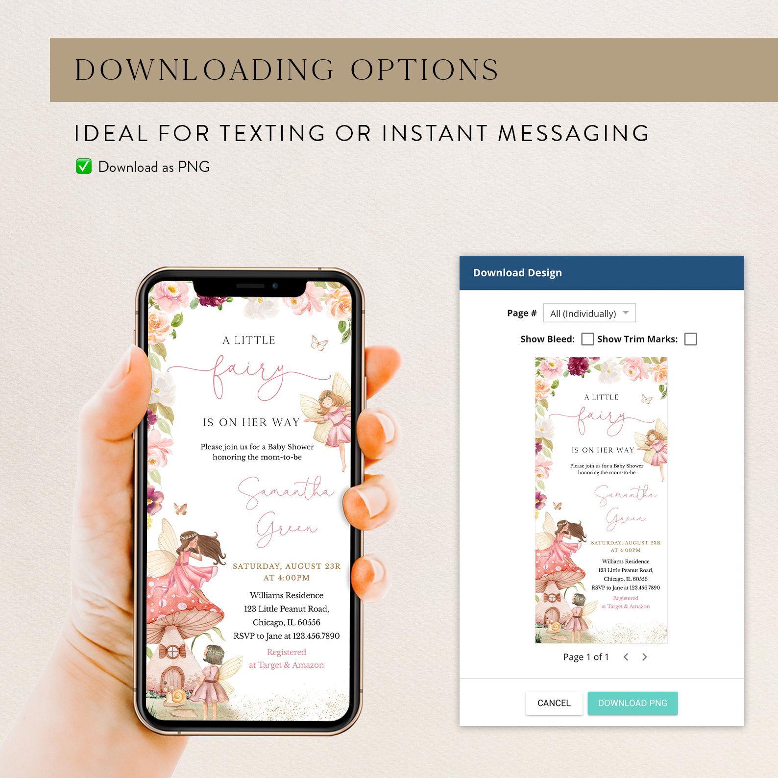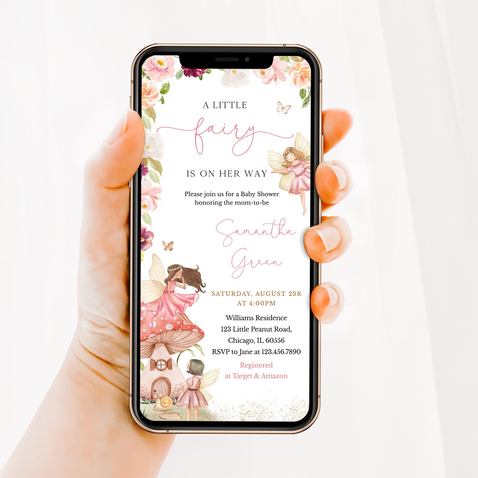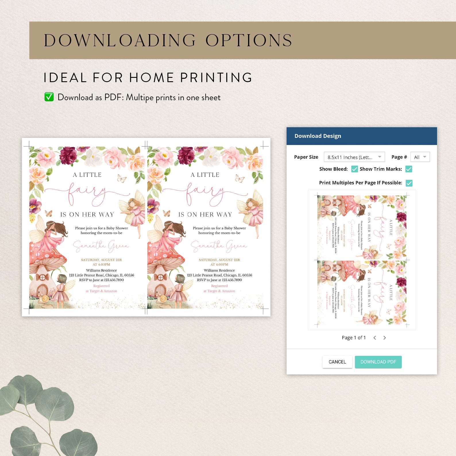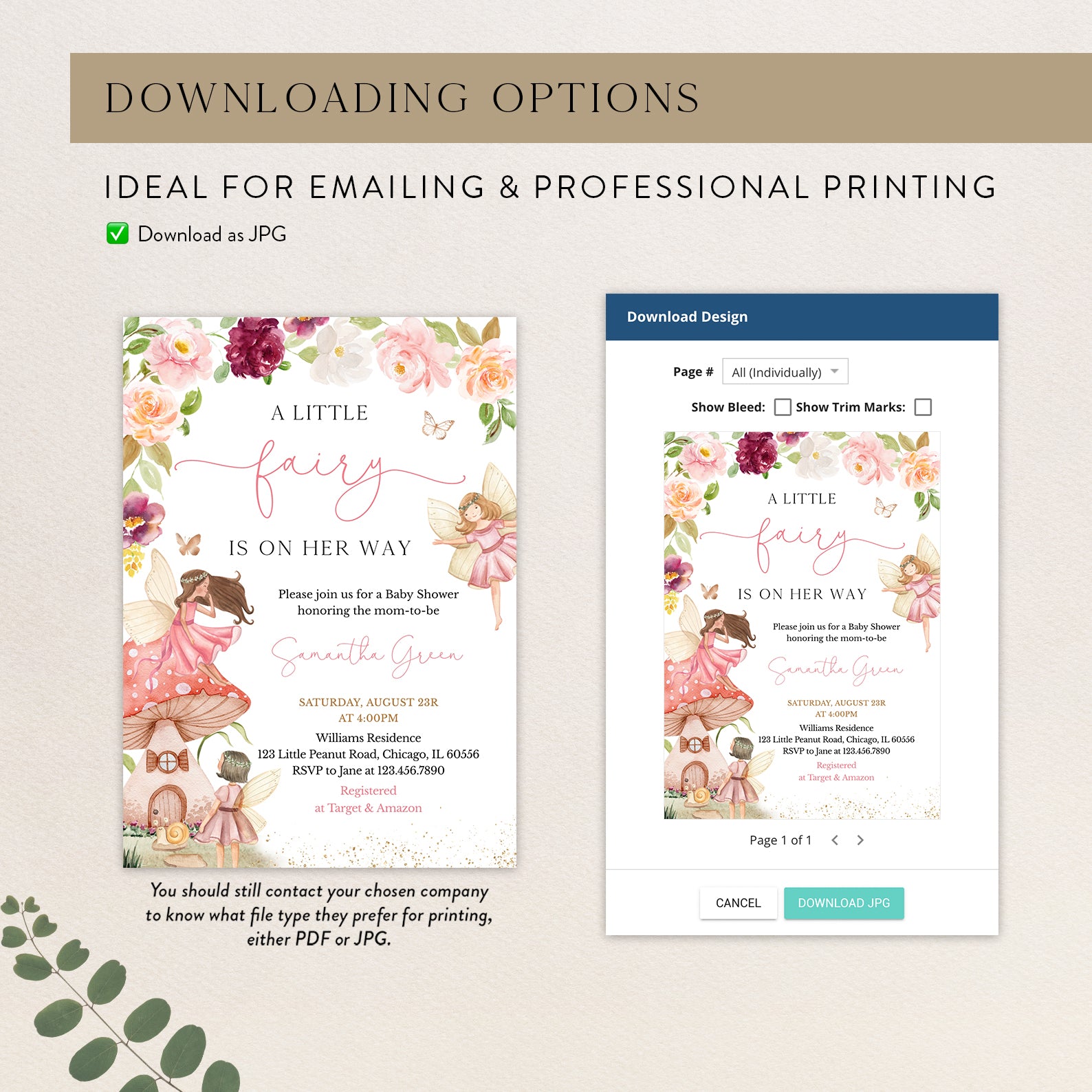 - Purchase this Fairy Fall Baby Shower Invite Bundle with Flowers & Gold Accents template