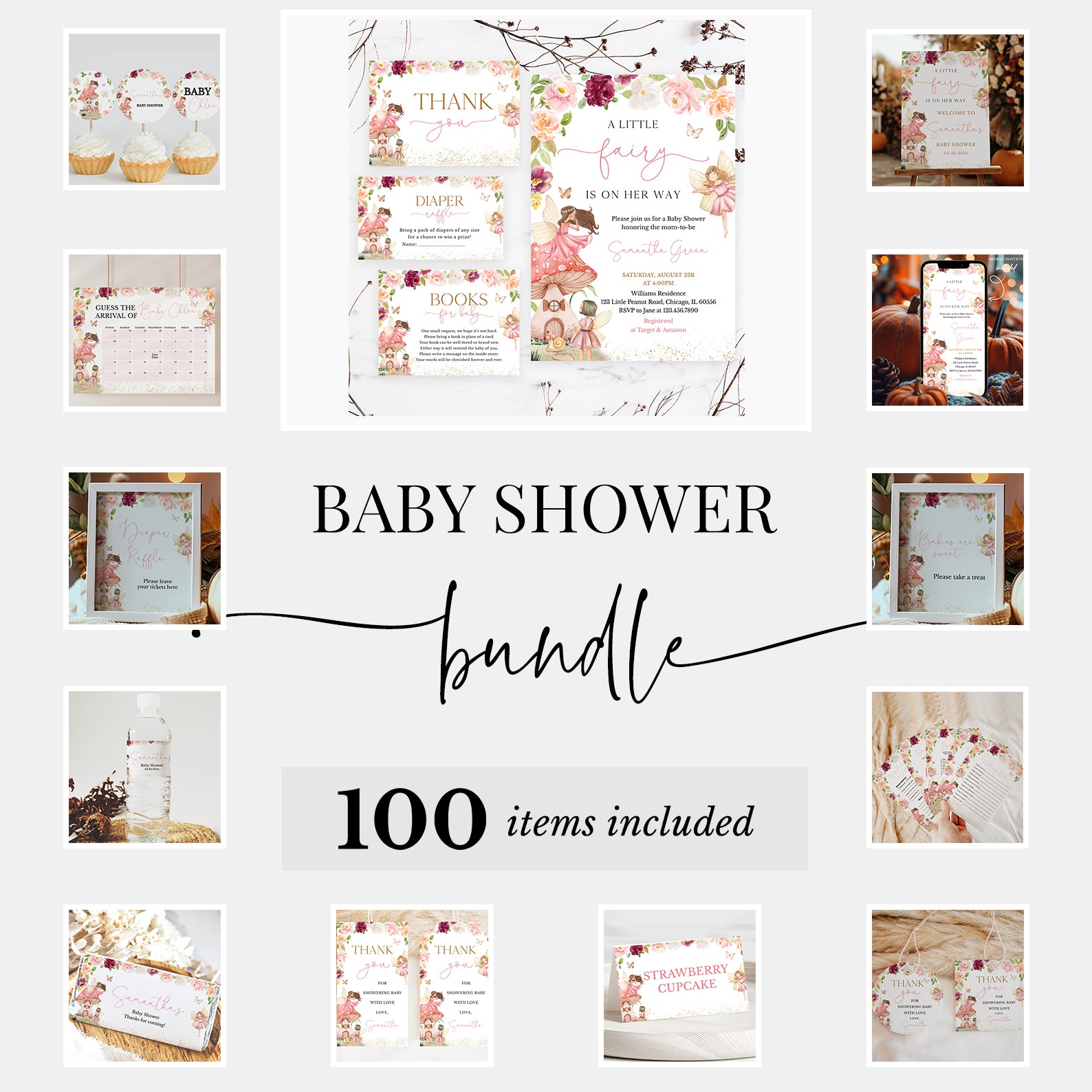 Celebrate your little one’s upcoming arrival with our enchanting mega bundle of 100 fall-themed baby shower printables! This collection features everything from invitations and thank you cards to diaper raffles, welcome signs, table signs, favor tags, and editable games all adorned with delicate watercolor flowers, whimsical fairies, fluttering butterflies, and a charming red mushroom house. Accented with subtle gold shimmer, this set brings magical charm and elegance to your cozy autumn celebration.