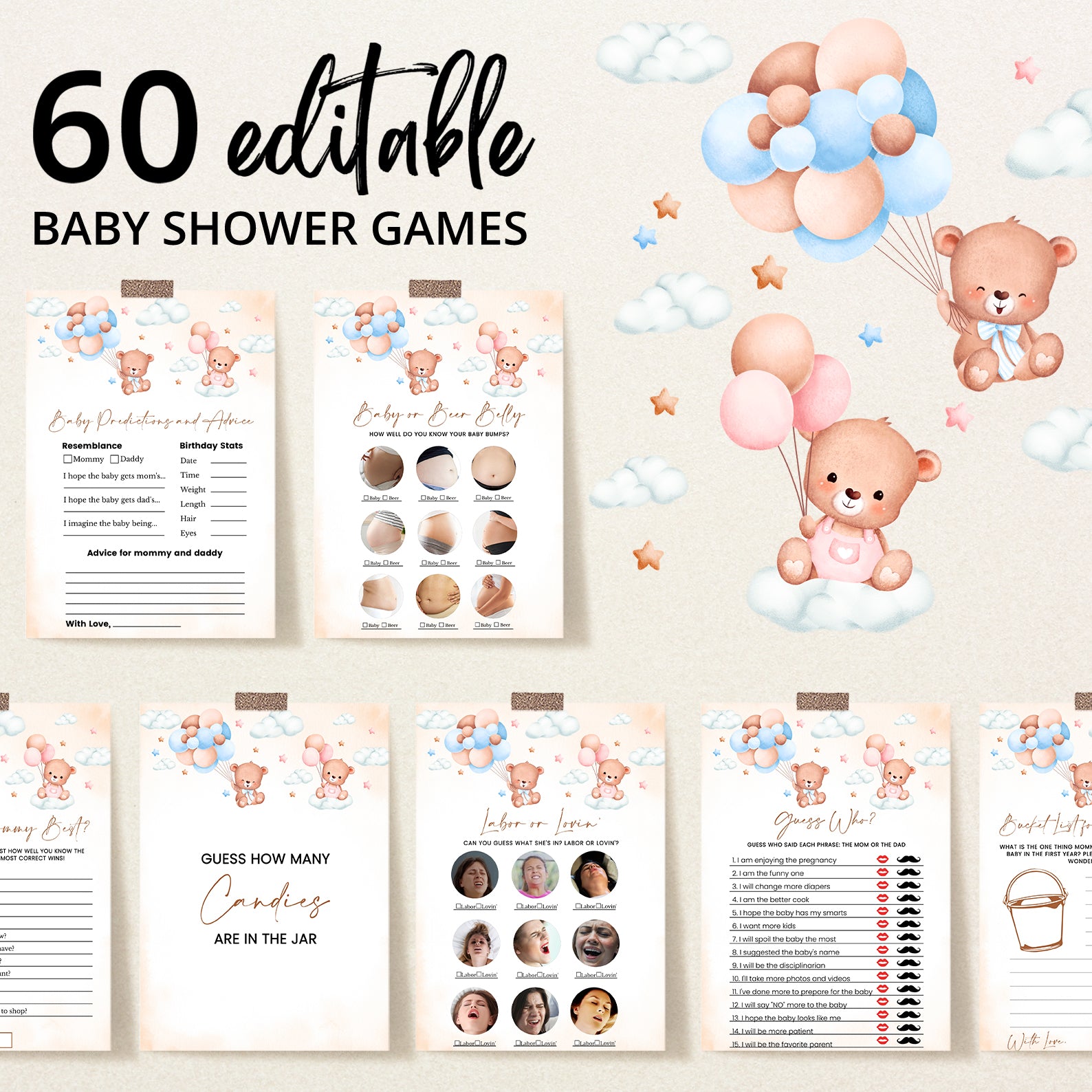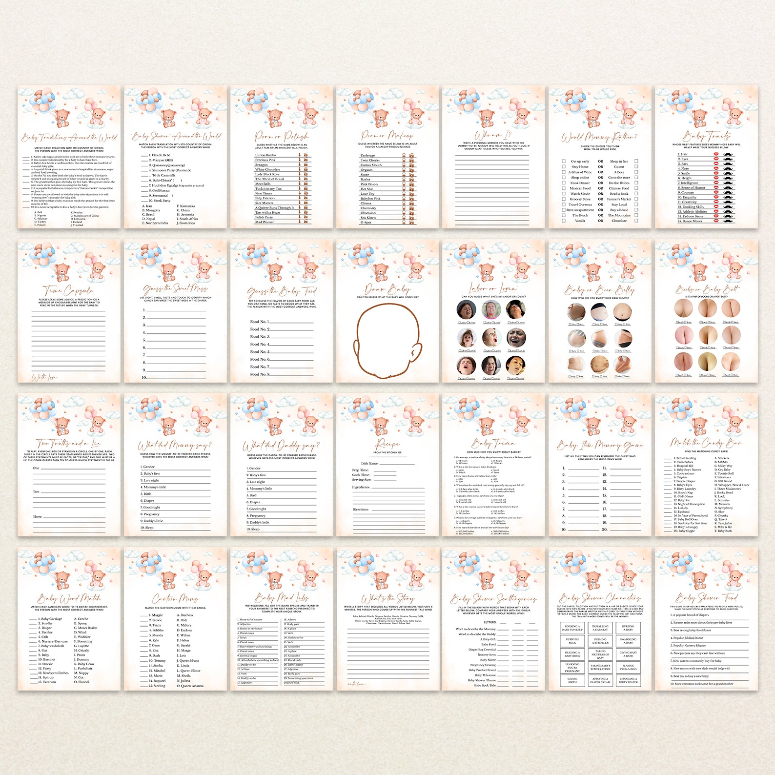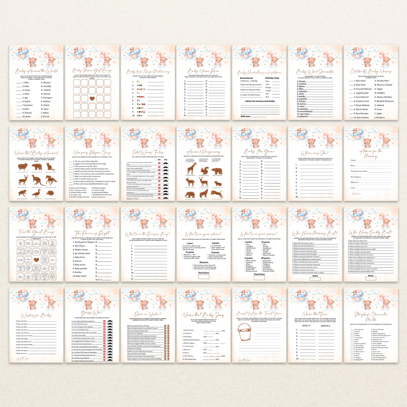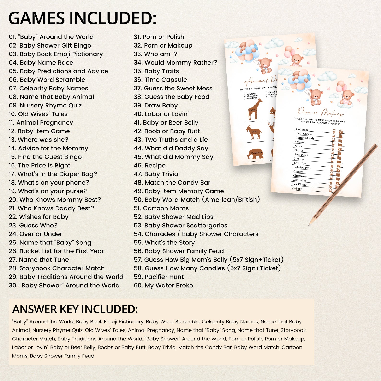 • 60 Editable Baby Shower Games Included