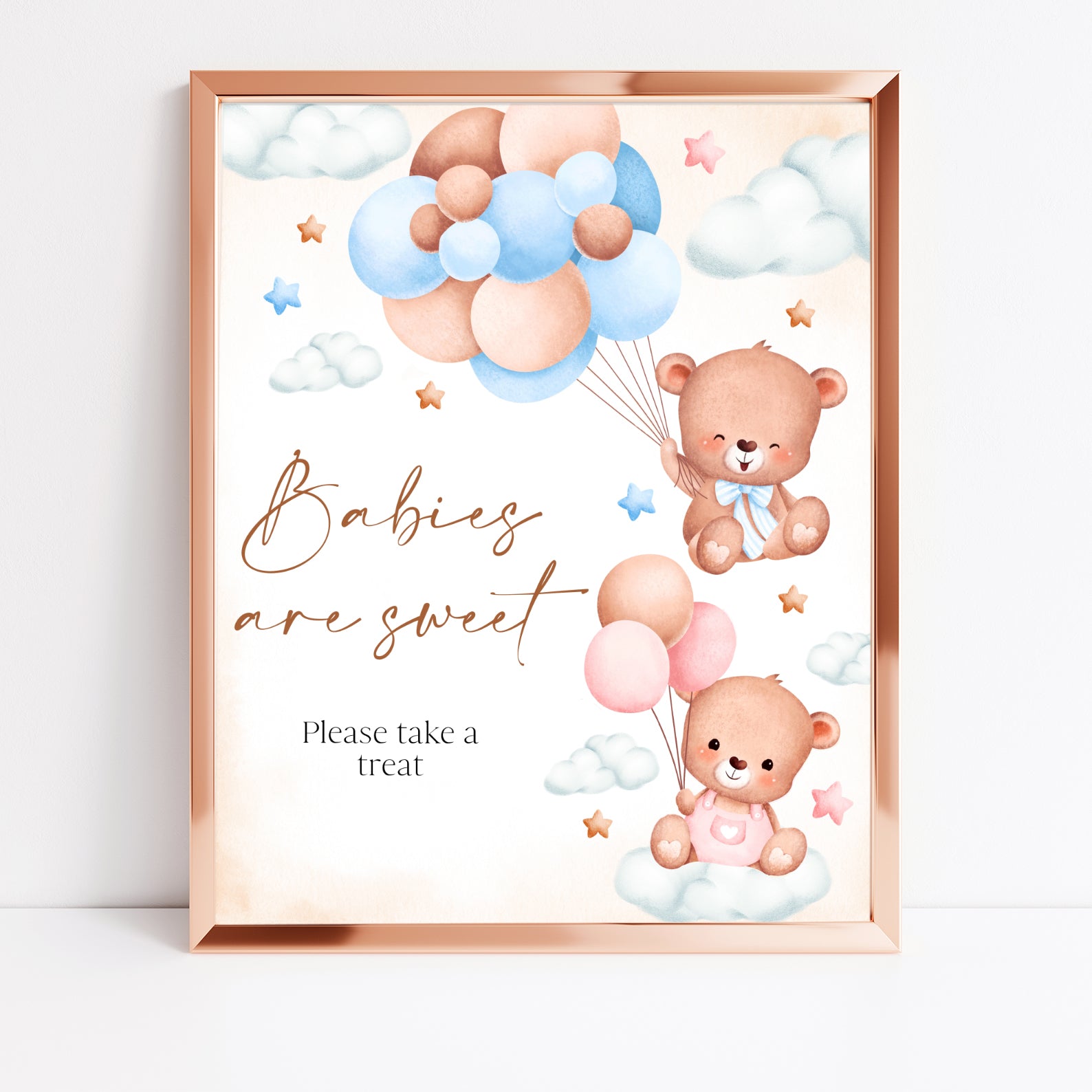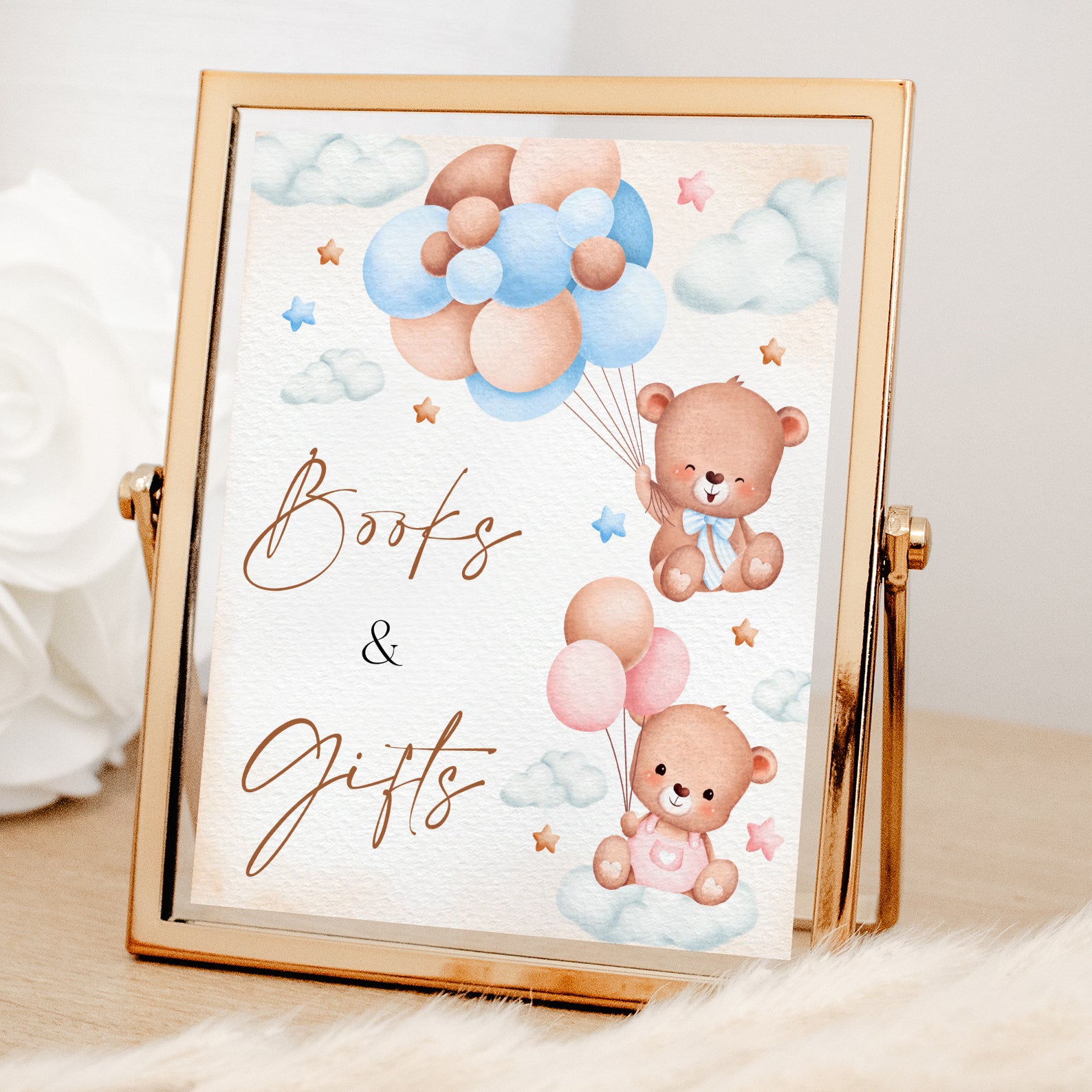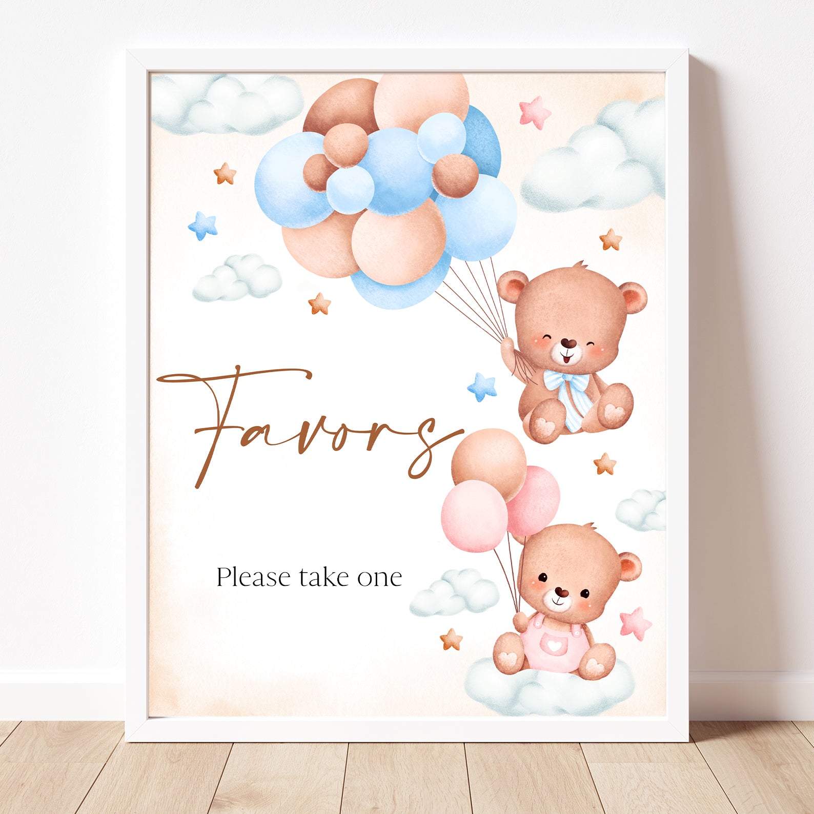- Purchase this Pink & Blue Bear-Themed Gender Reveal Baby Shower Table Sign template