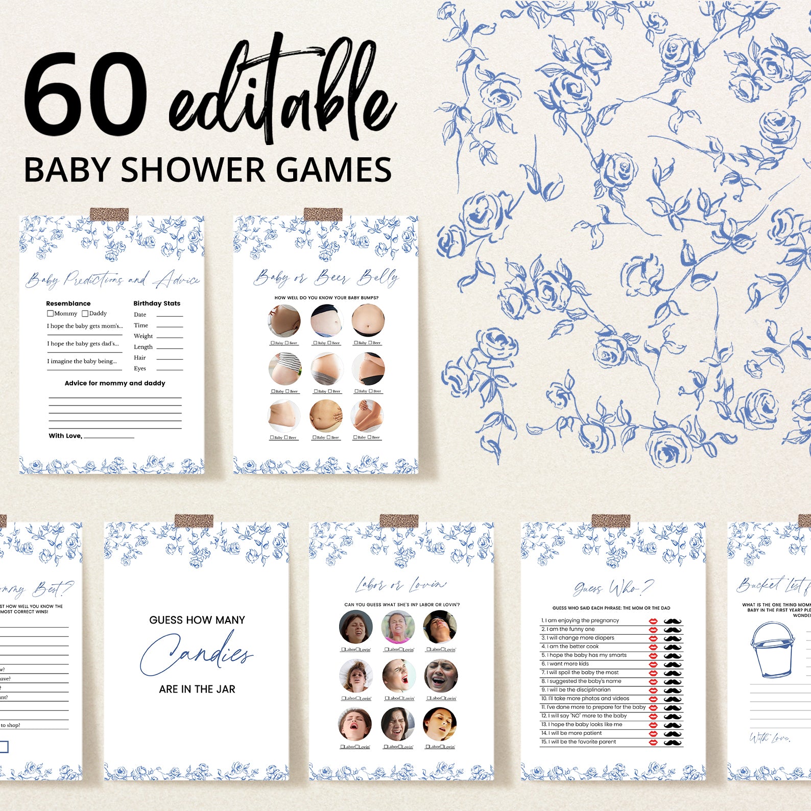 - Purchase this Elegant Blue Floral Baby Shower Digital Game Bundle template