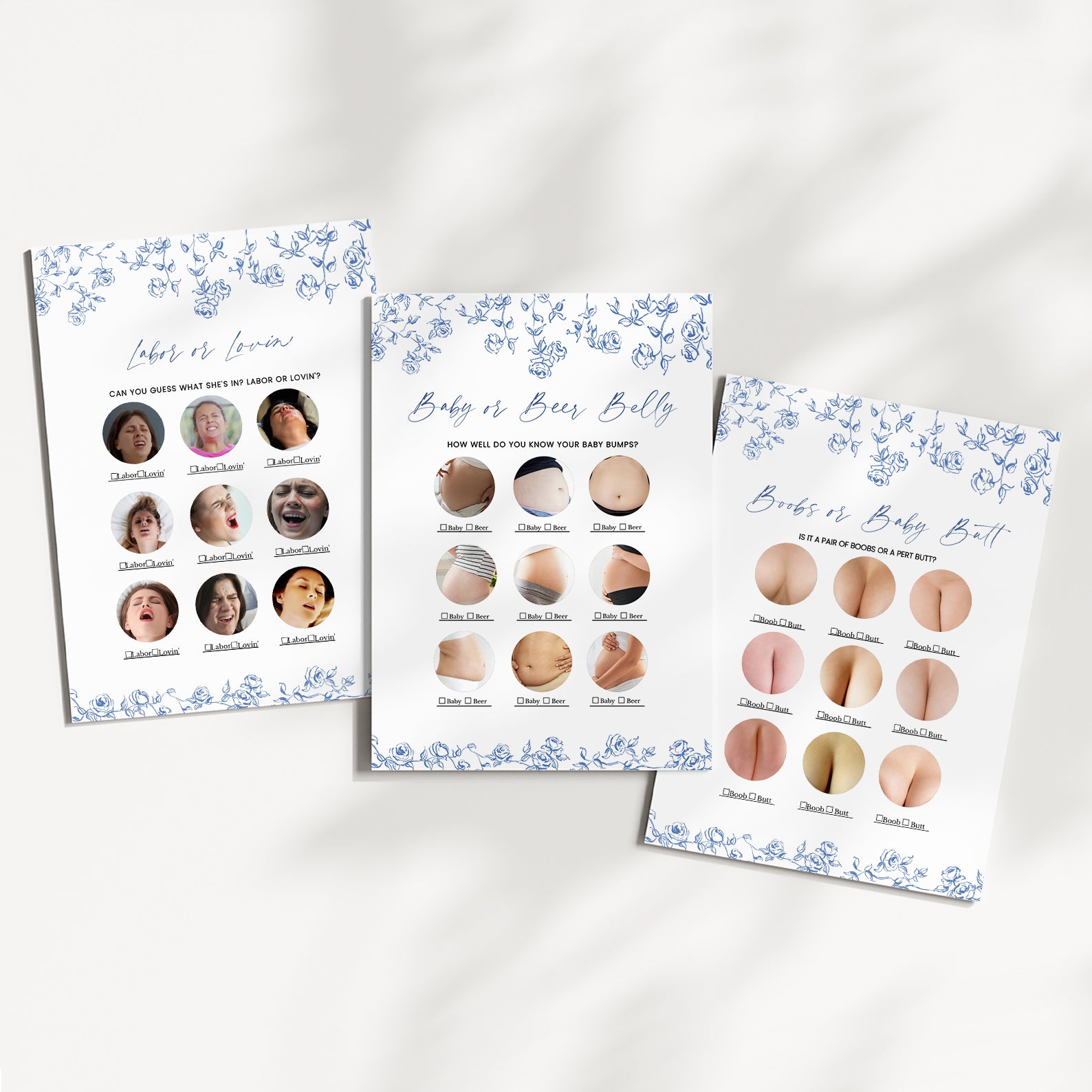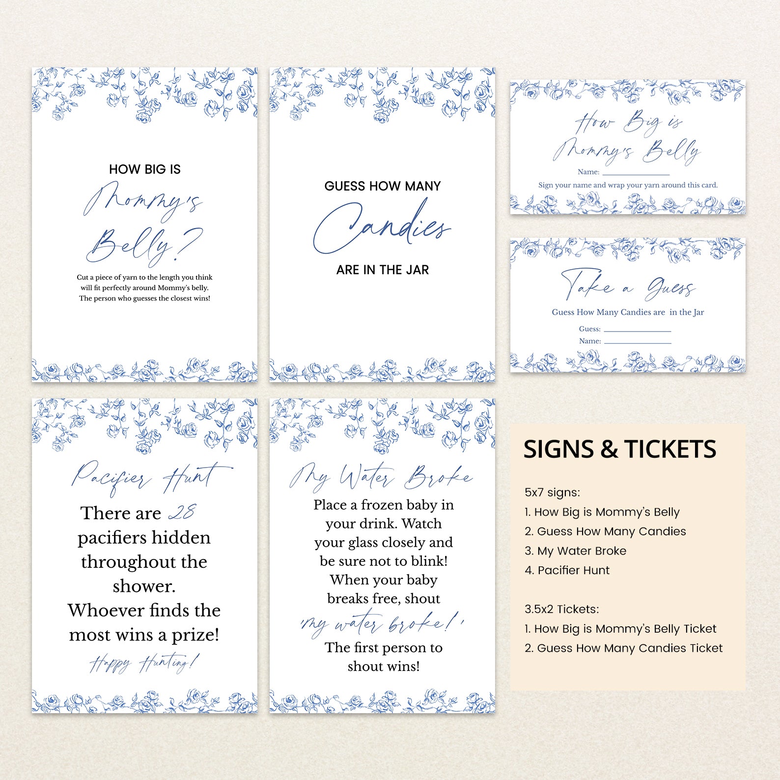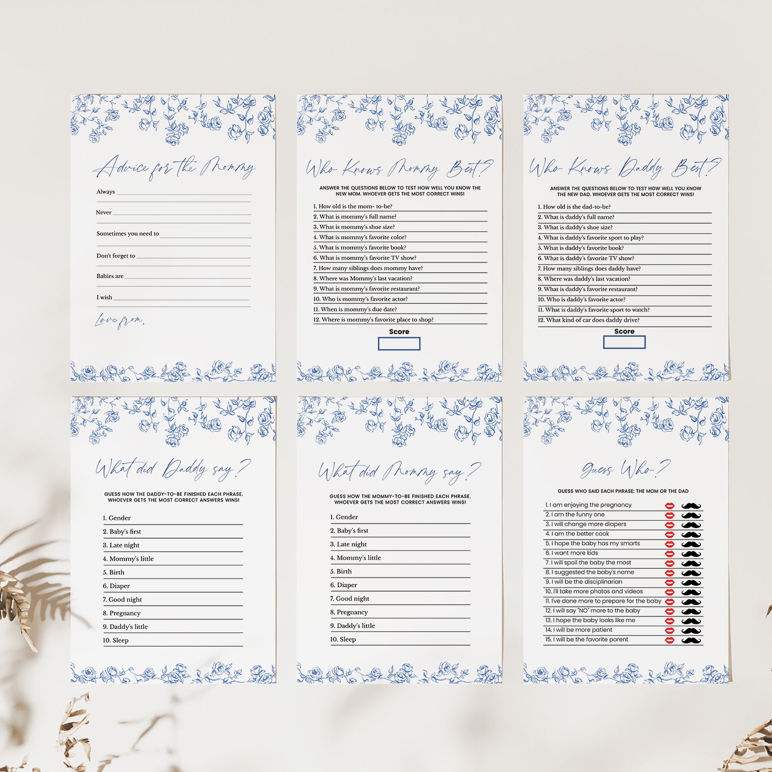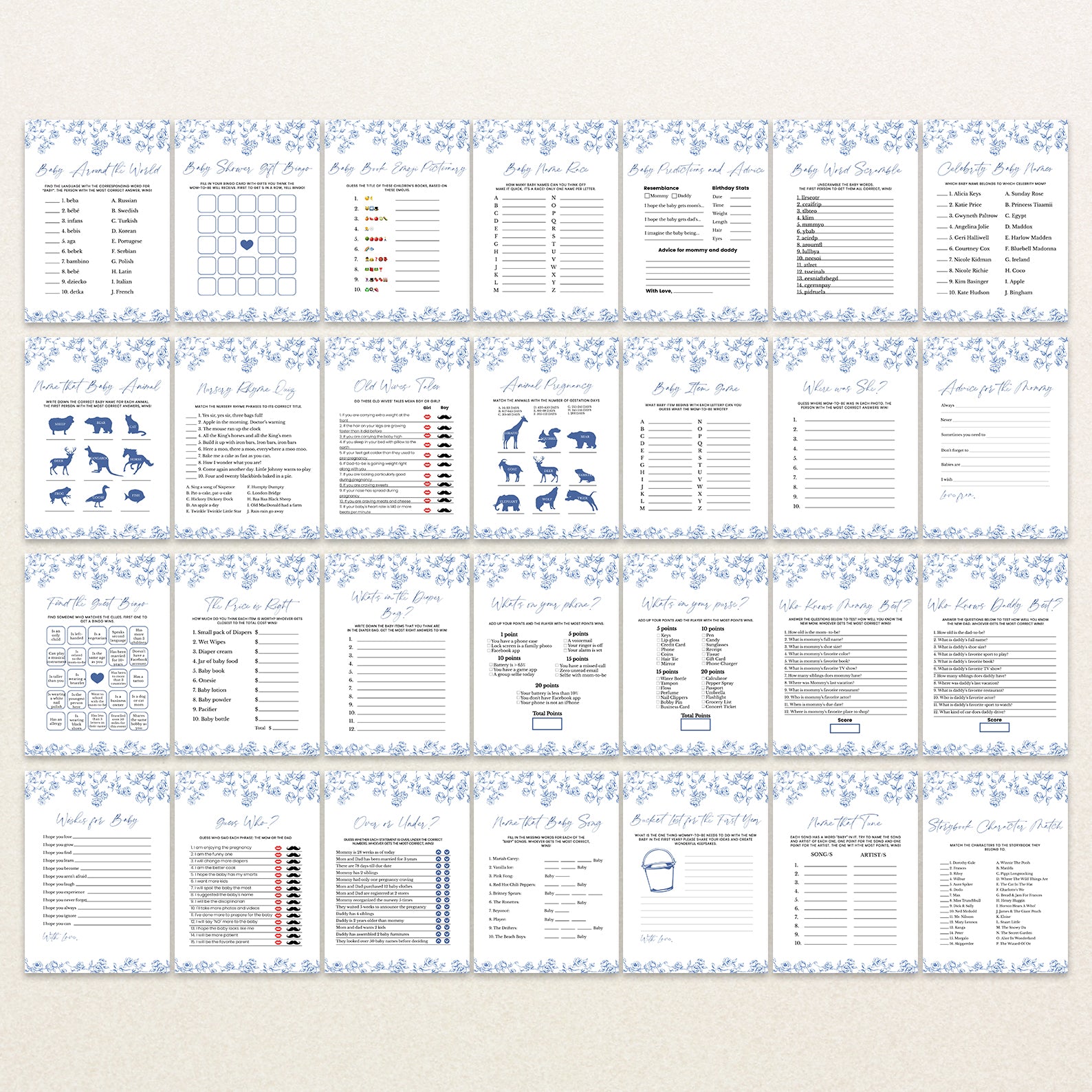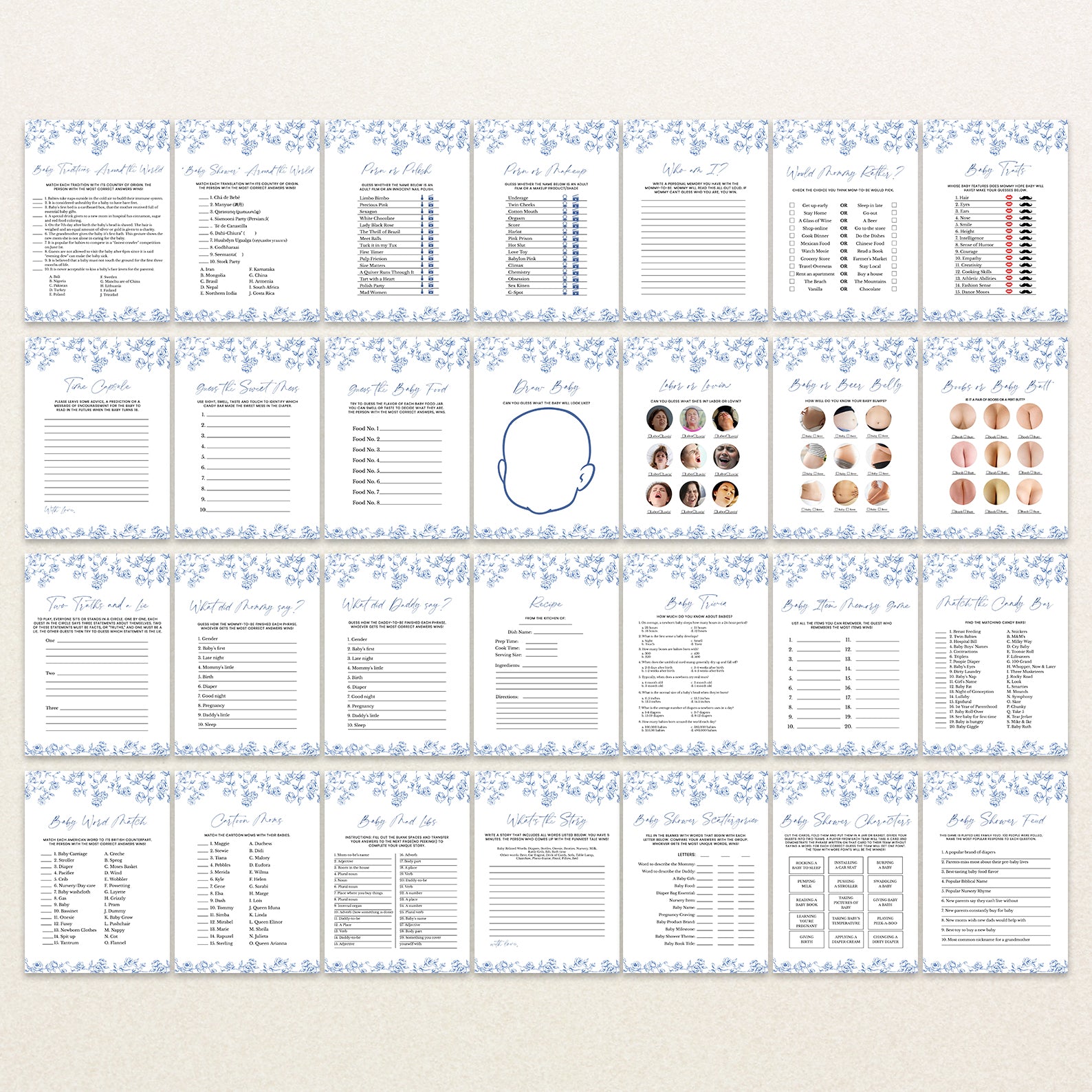 Elegant Blue Floral Baby Shower Digital Game Bundle