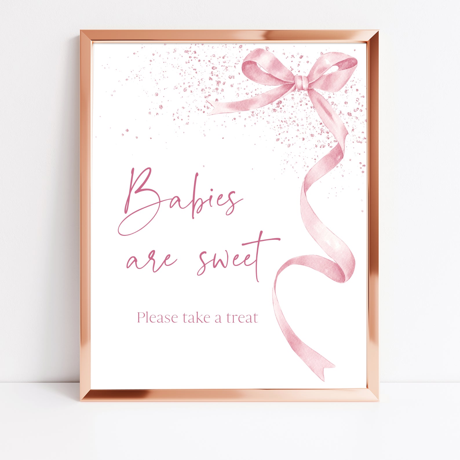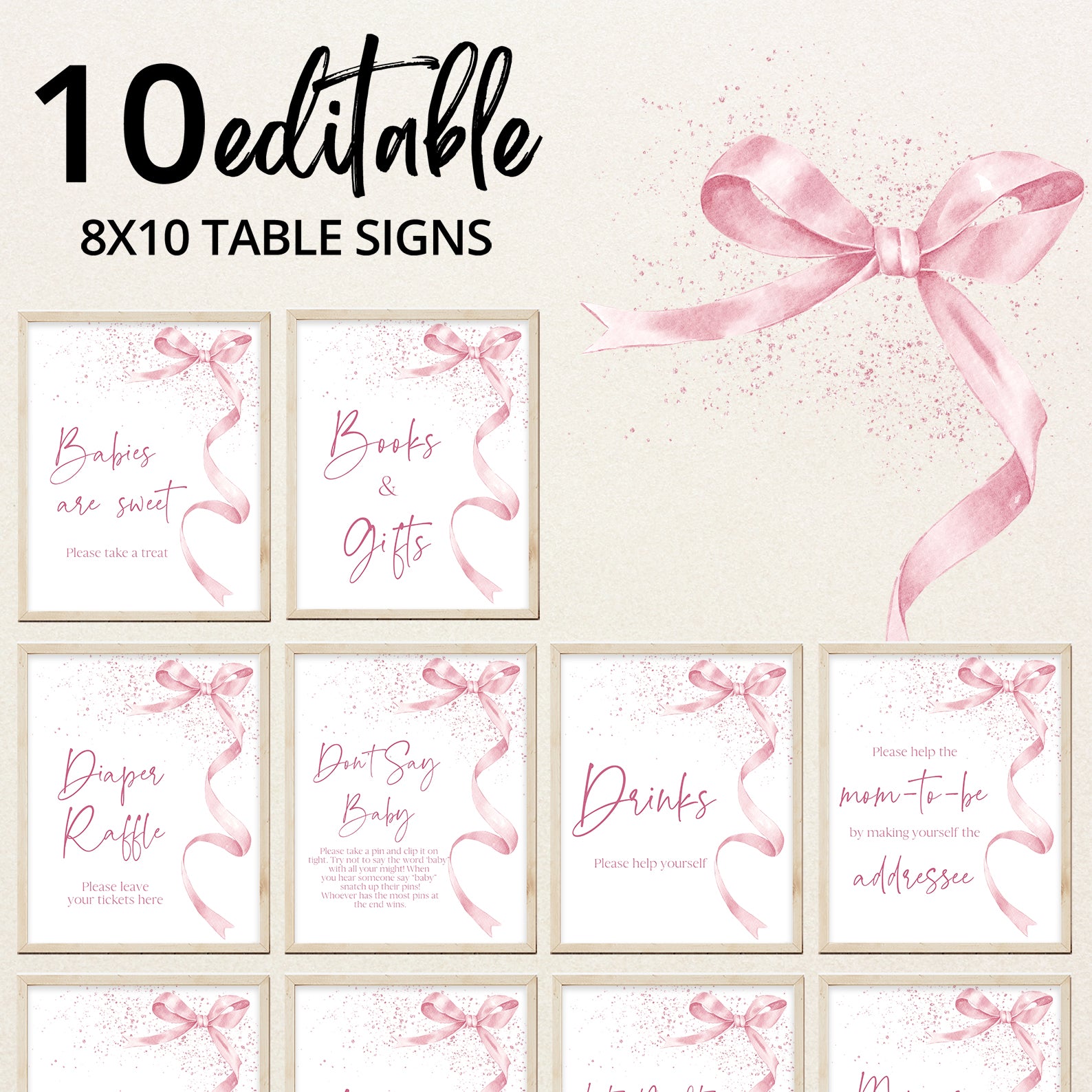 - Purchase this Pink Ribbon Baby Shower Digital Table Sign - Minimalist Style template