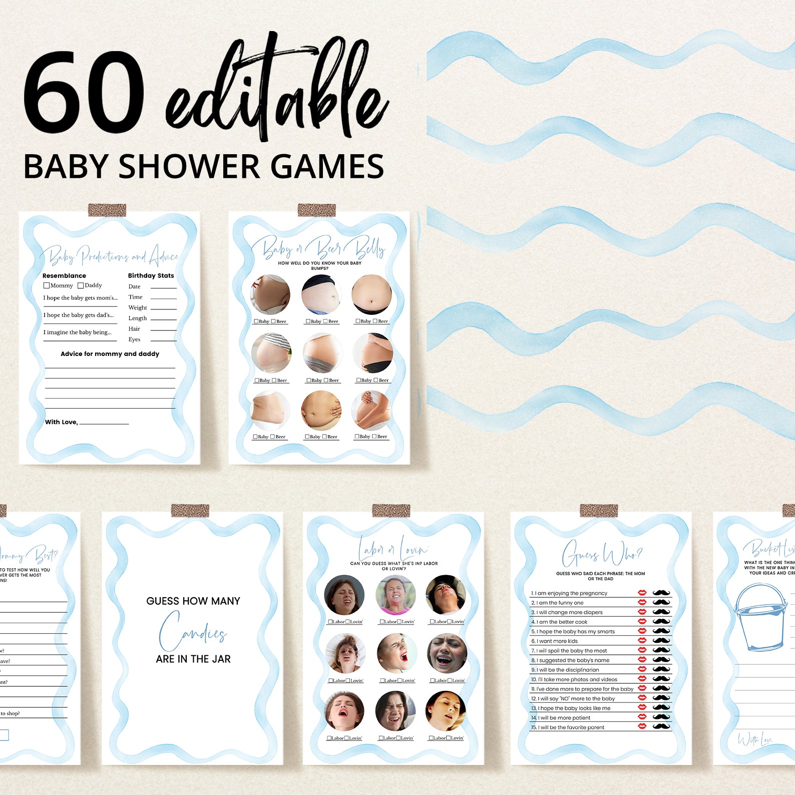 - Purchase this Blue Minimalist Wavy Border Baby Shower Digital Game Bundle template