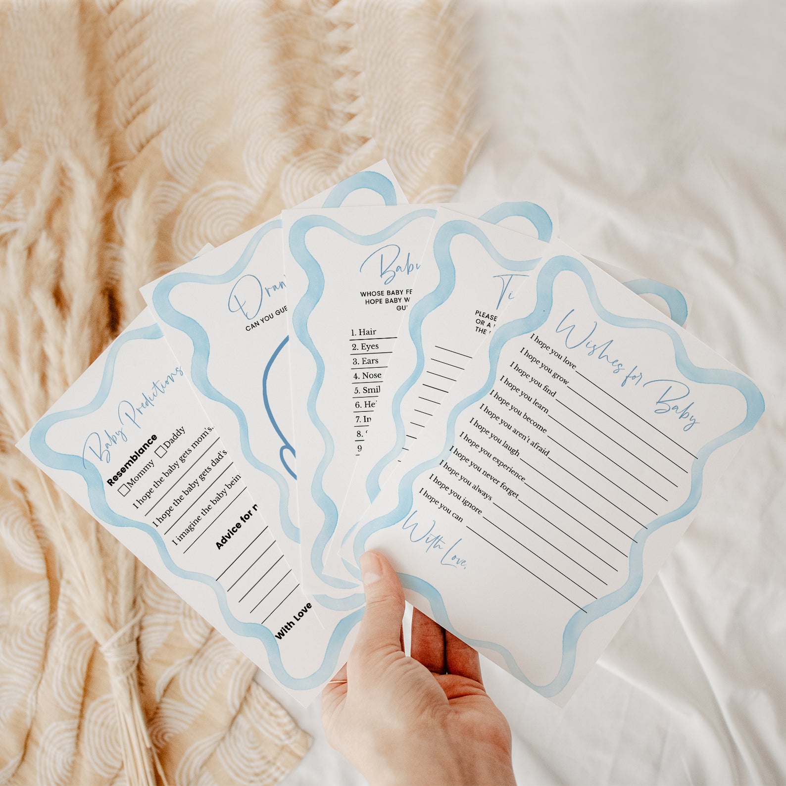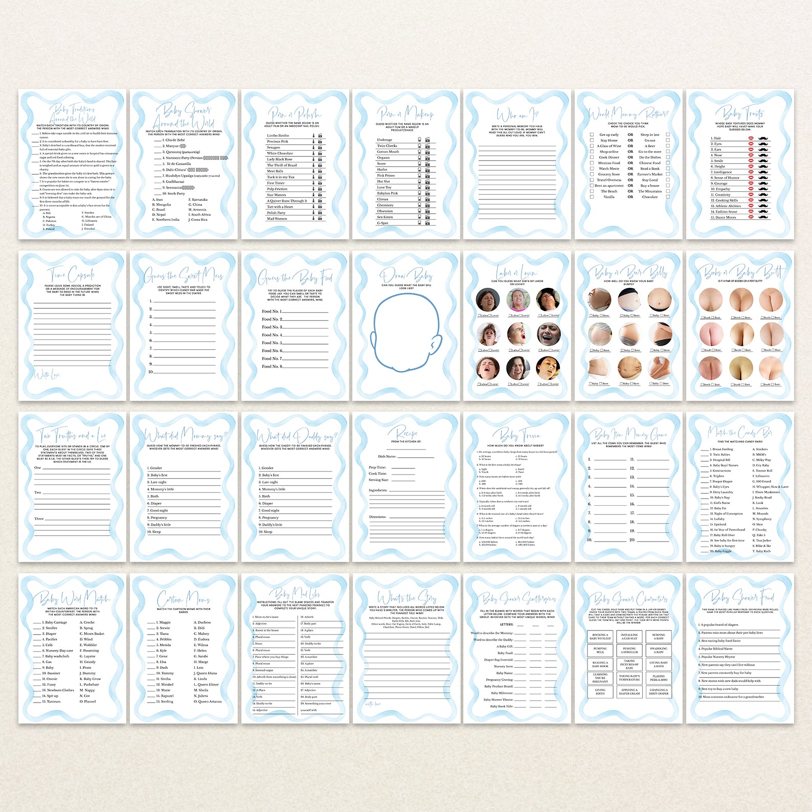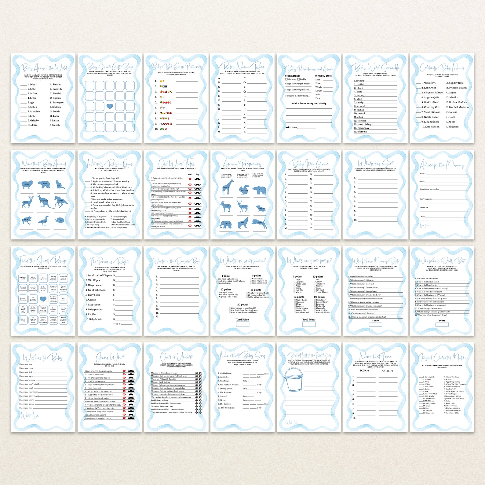 Blue Minimalist Wavy Border Baby Shower Digital Game Bundle