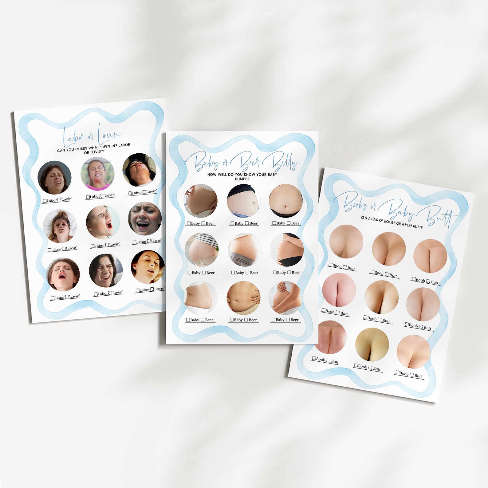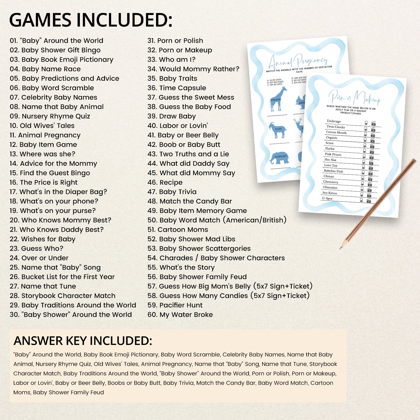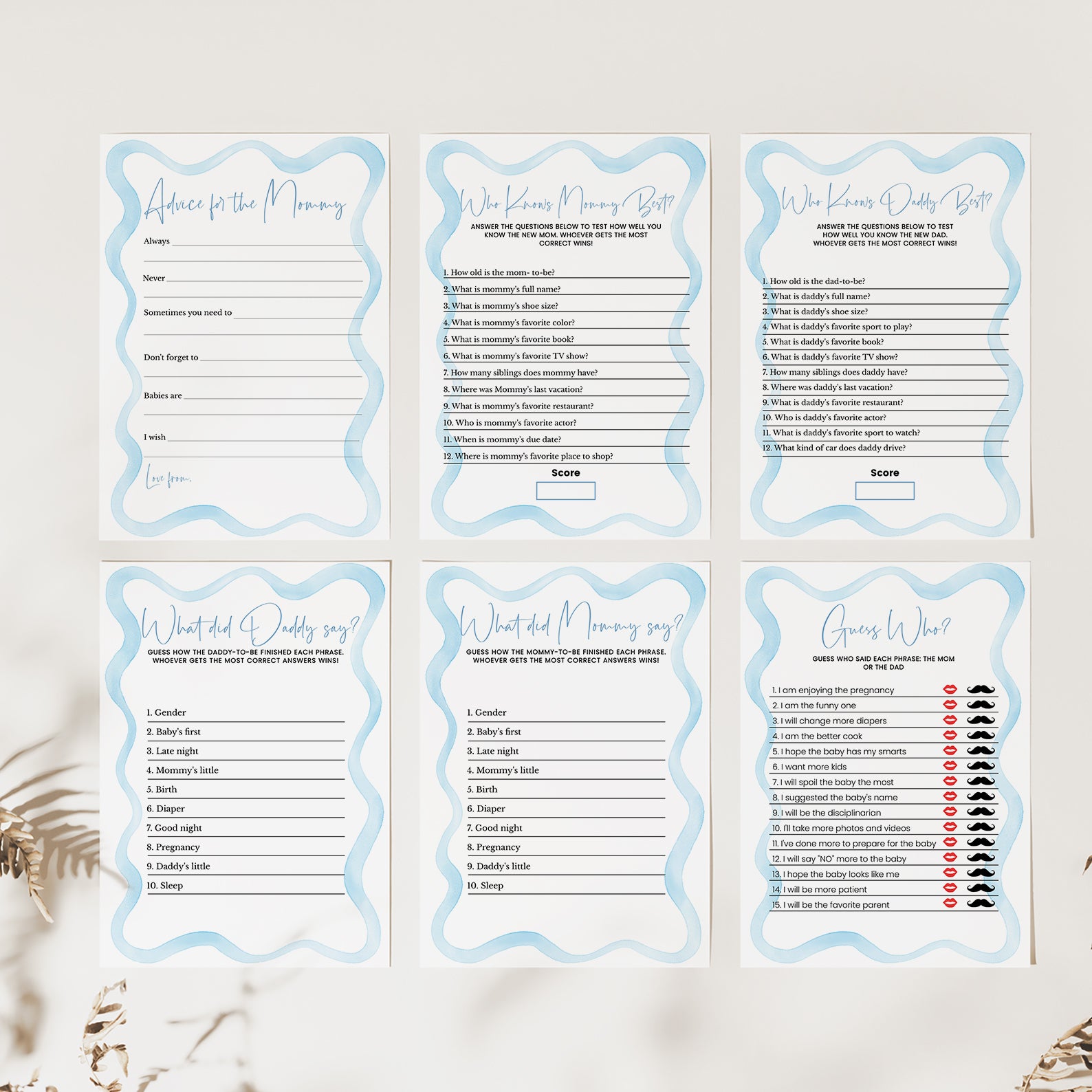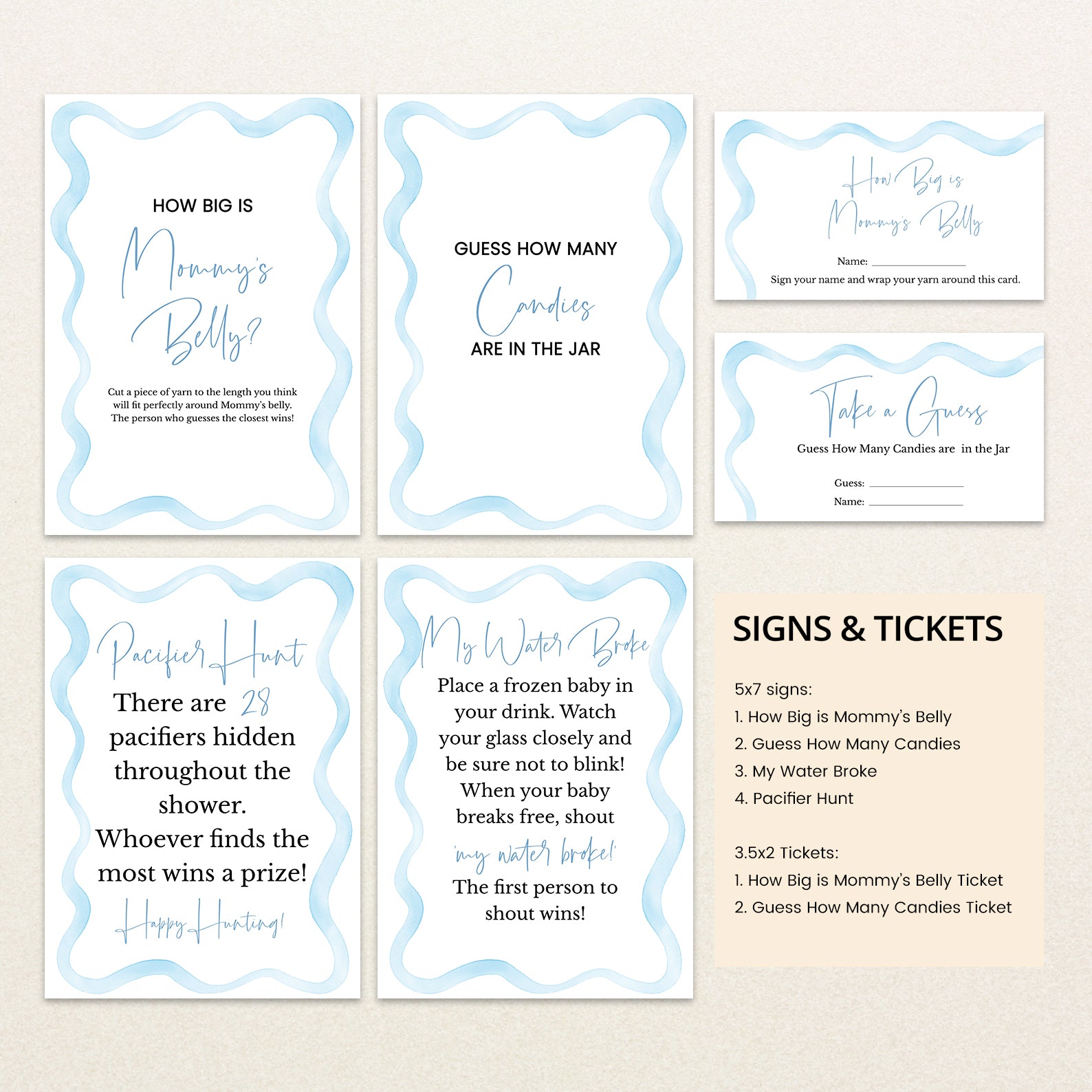 Blue Minimalist Wavy Border Baby Shower Digital Game Bundle