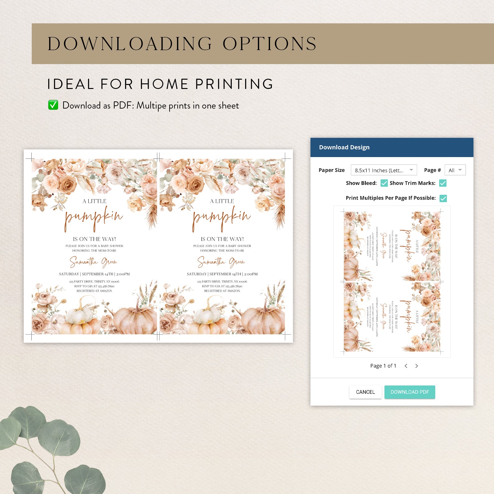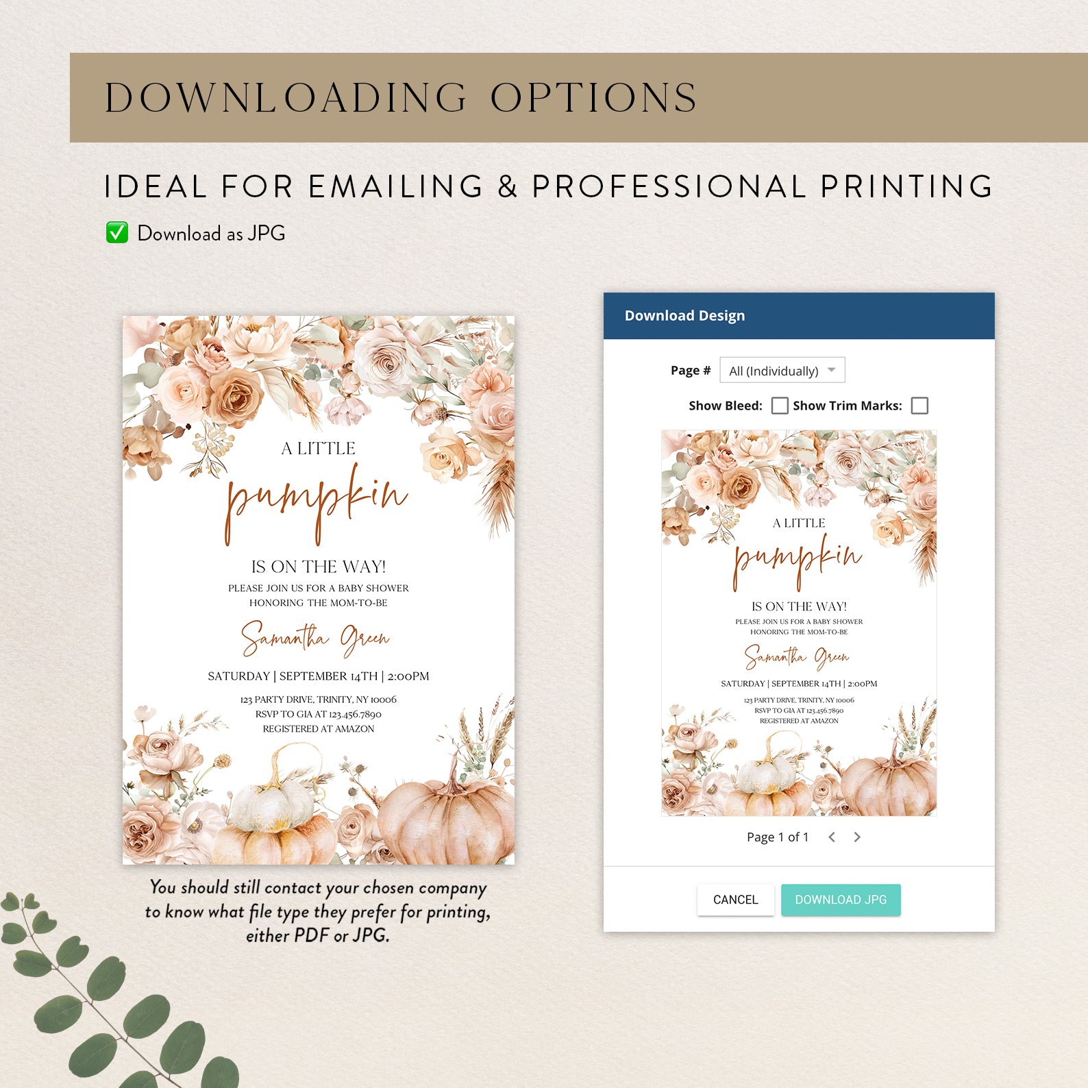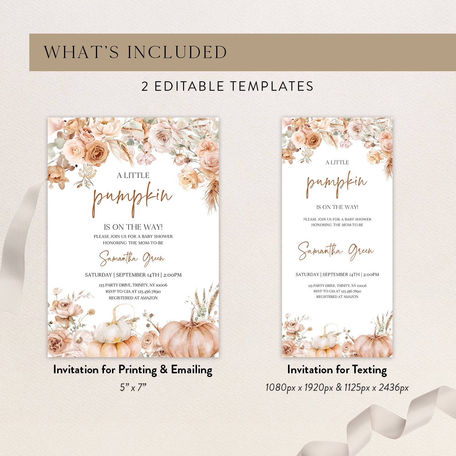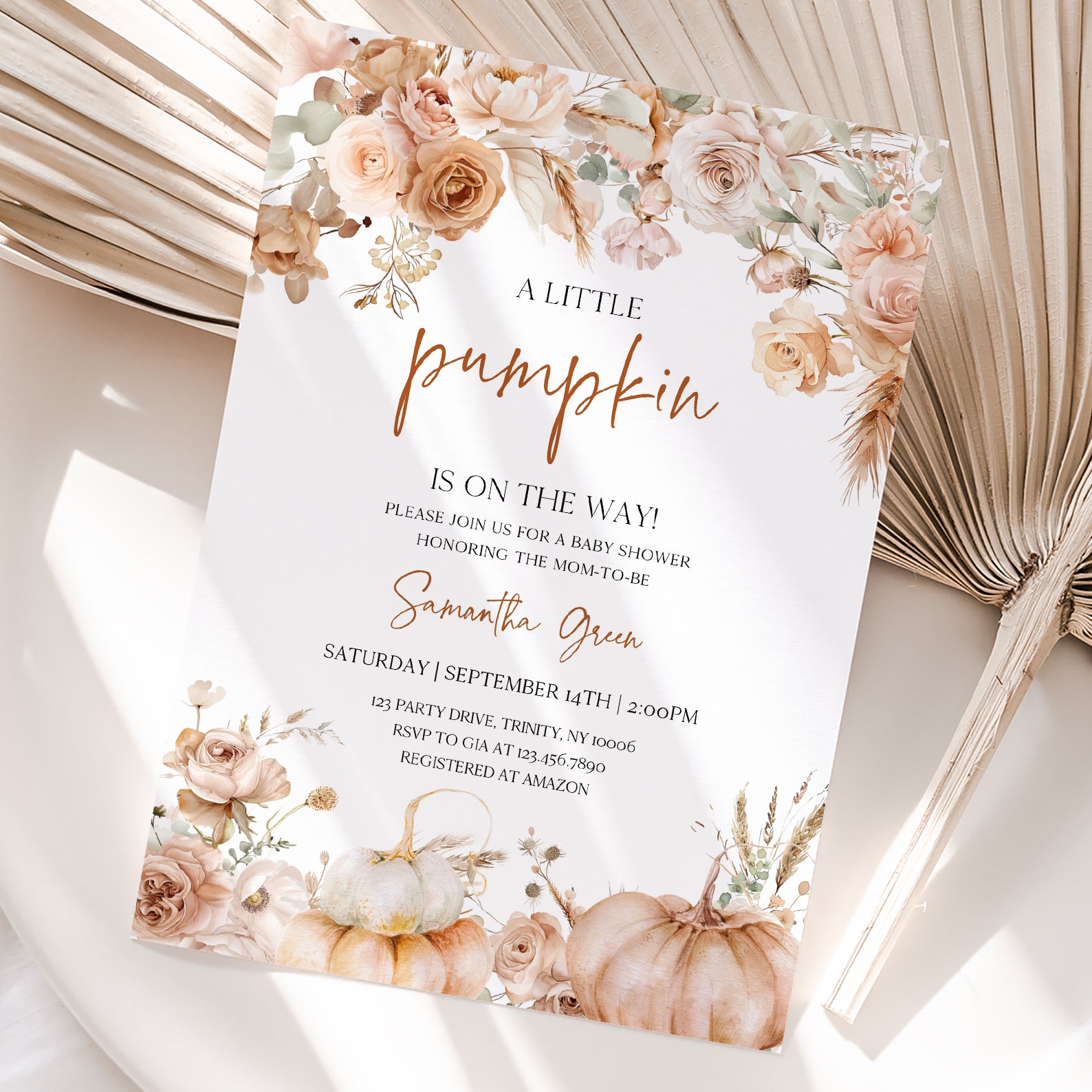 - Purchase this Pumpkin Fall Baby Shower Invite with Rust & Peach Floral Design template