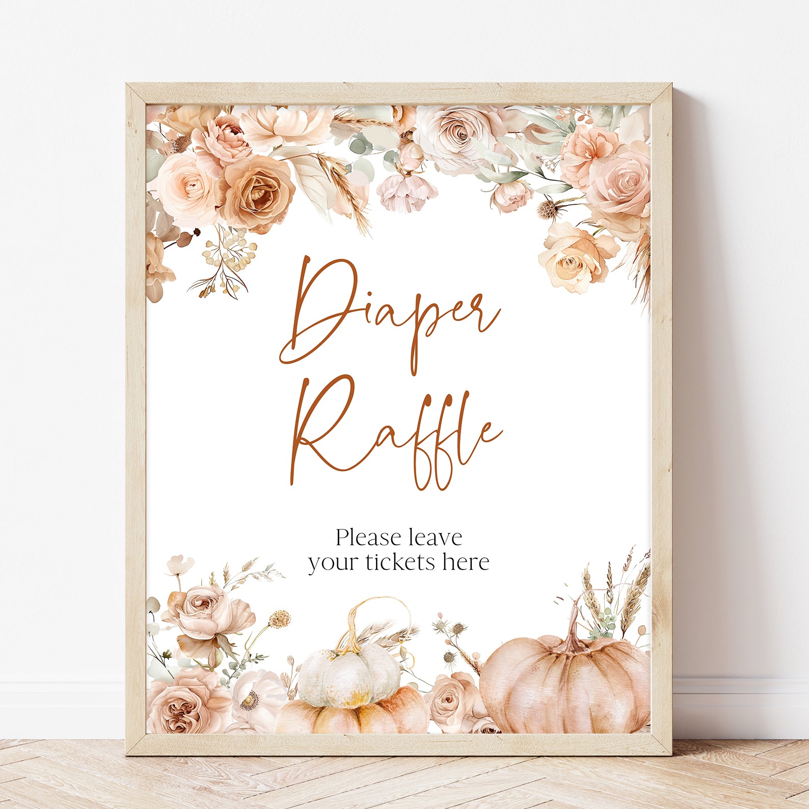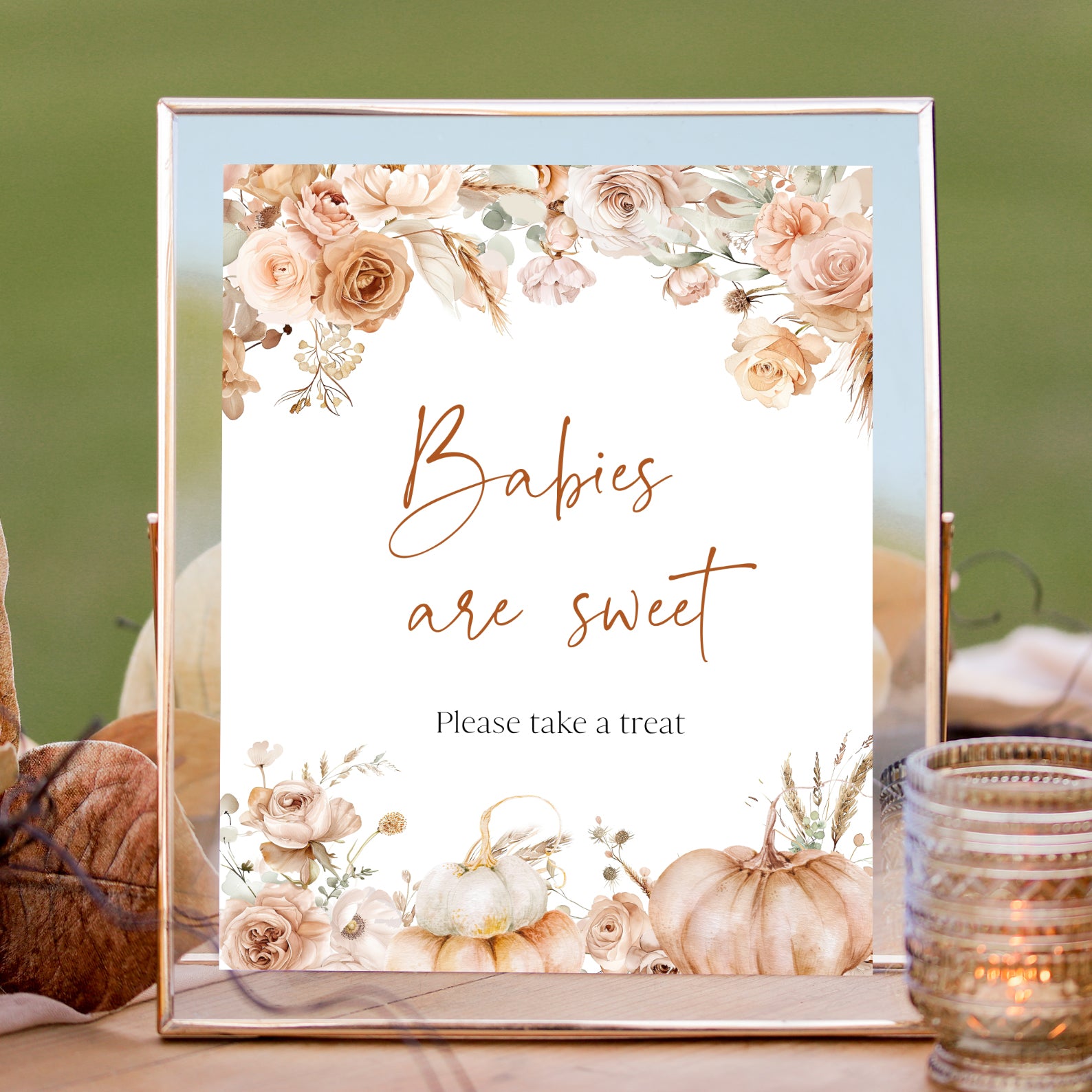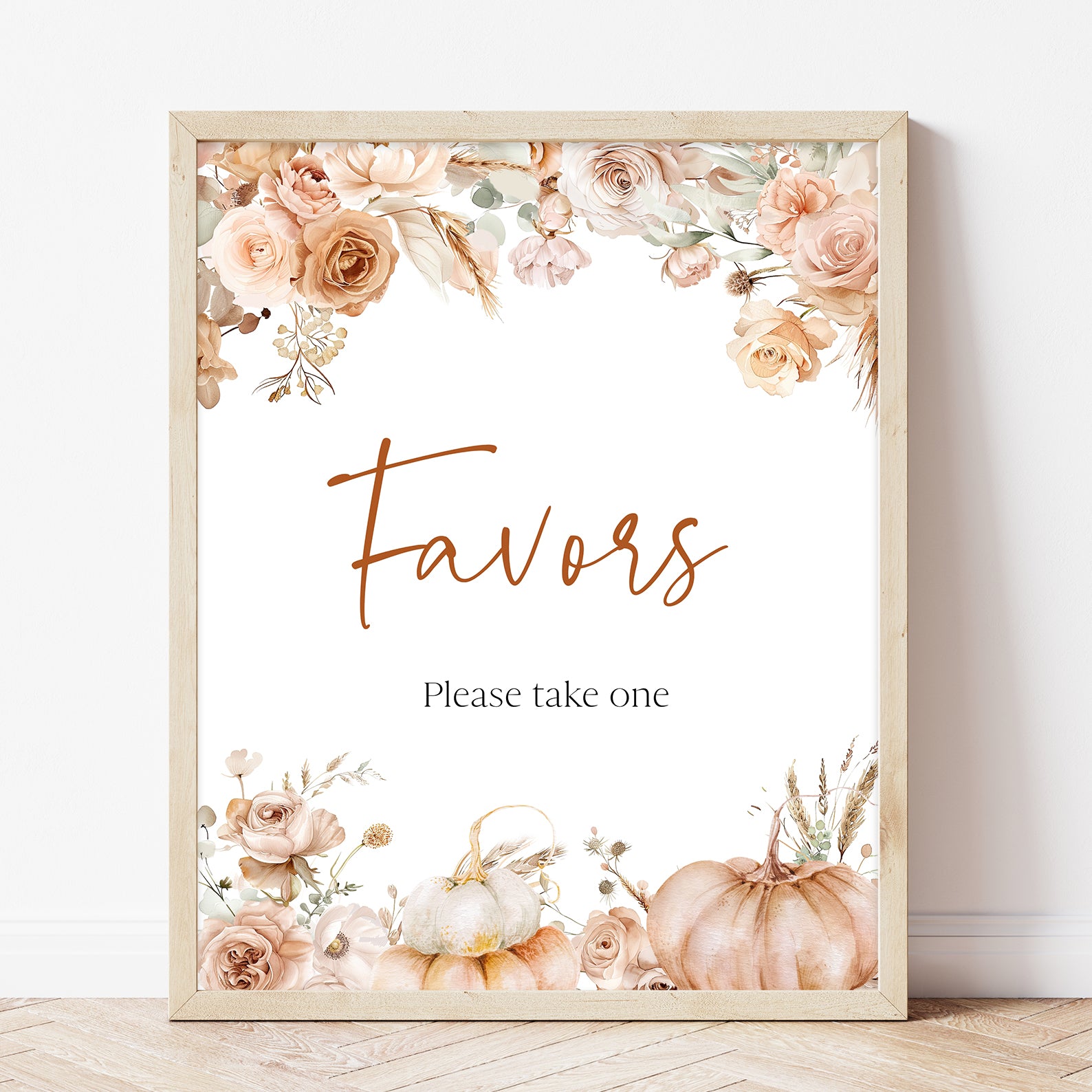 1. Purchase this Pumpkin Fall Baby Shower Table Sign with Rust & Peach Floral Design template