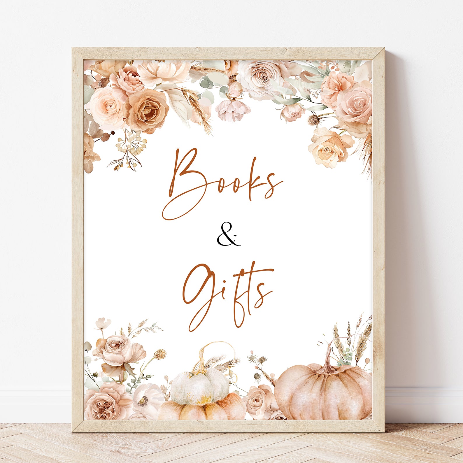 Pumpkin Fall Baby Shower Table Sign with Rust & Peach Floral Design