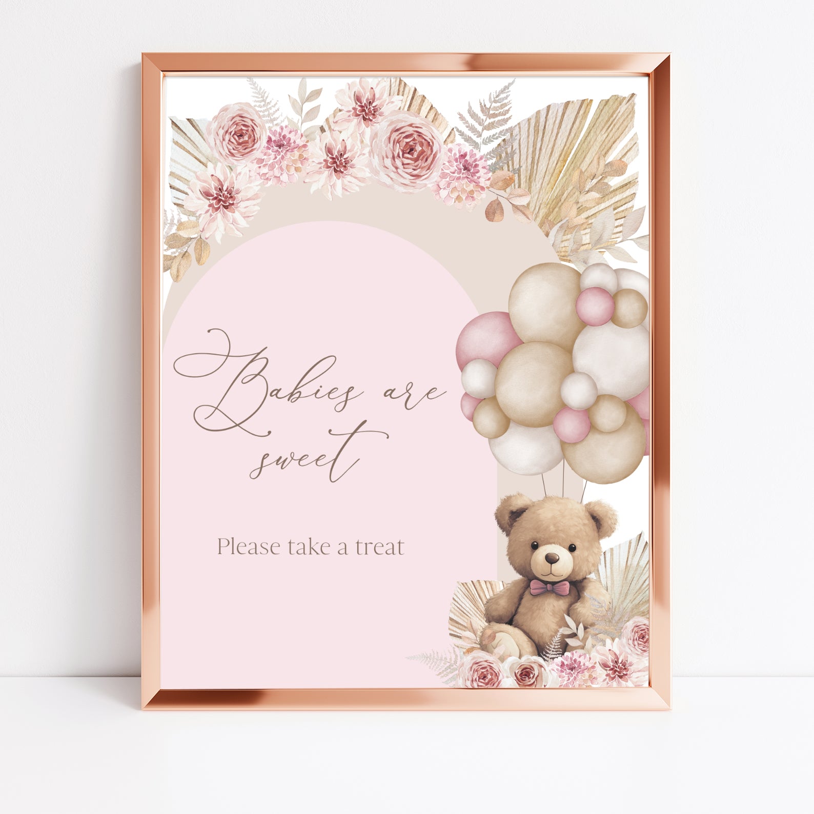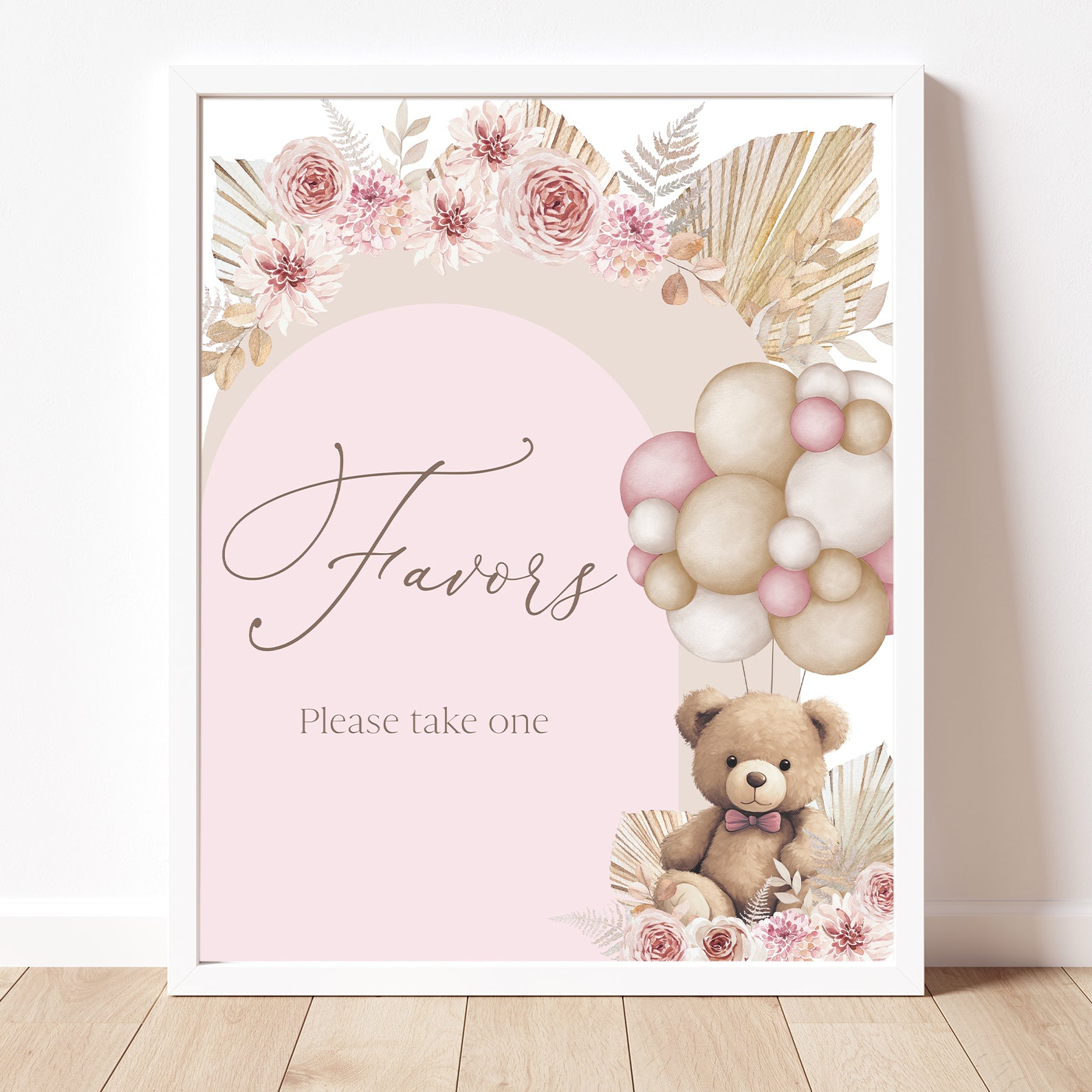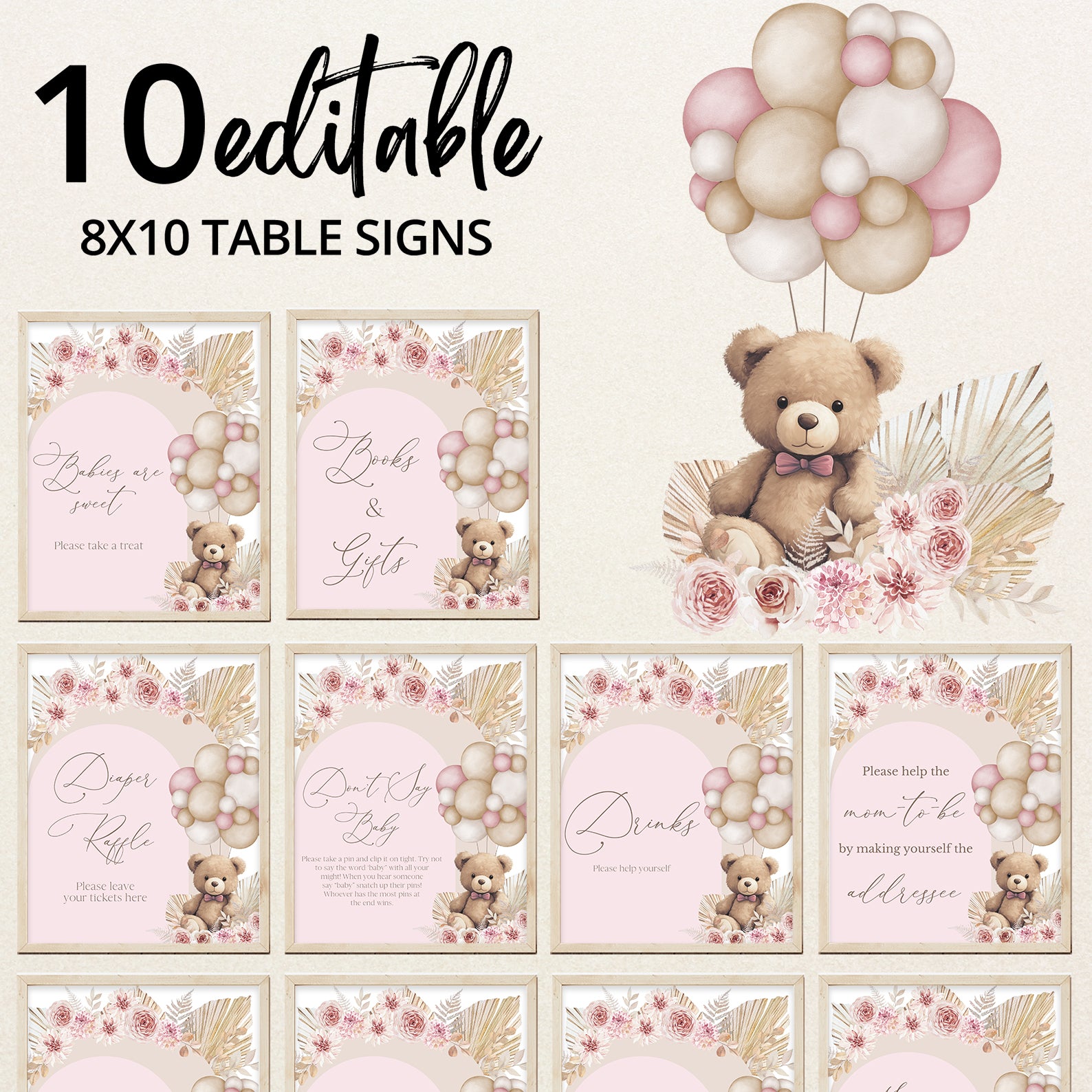 1. Purchase this We Can Bearly Wait Teddy Bear Baby Shower Table Sign, Pink Boho template