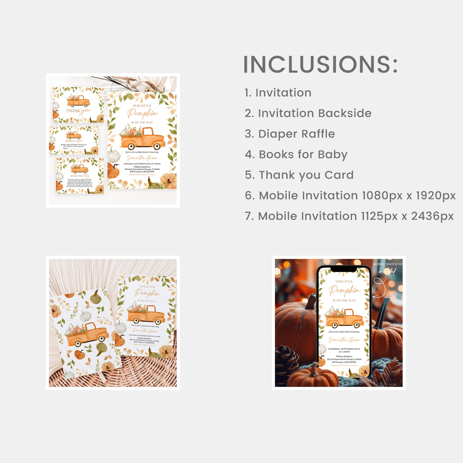 1. Purchase this Fall Baby Shower Digital Mega Bundle: Little Pumpkin & Truck template