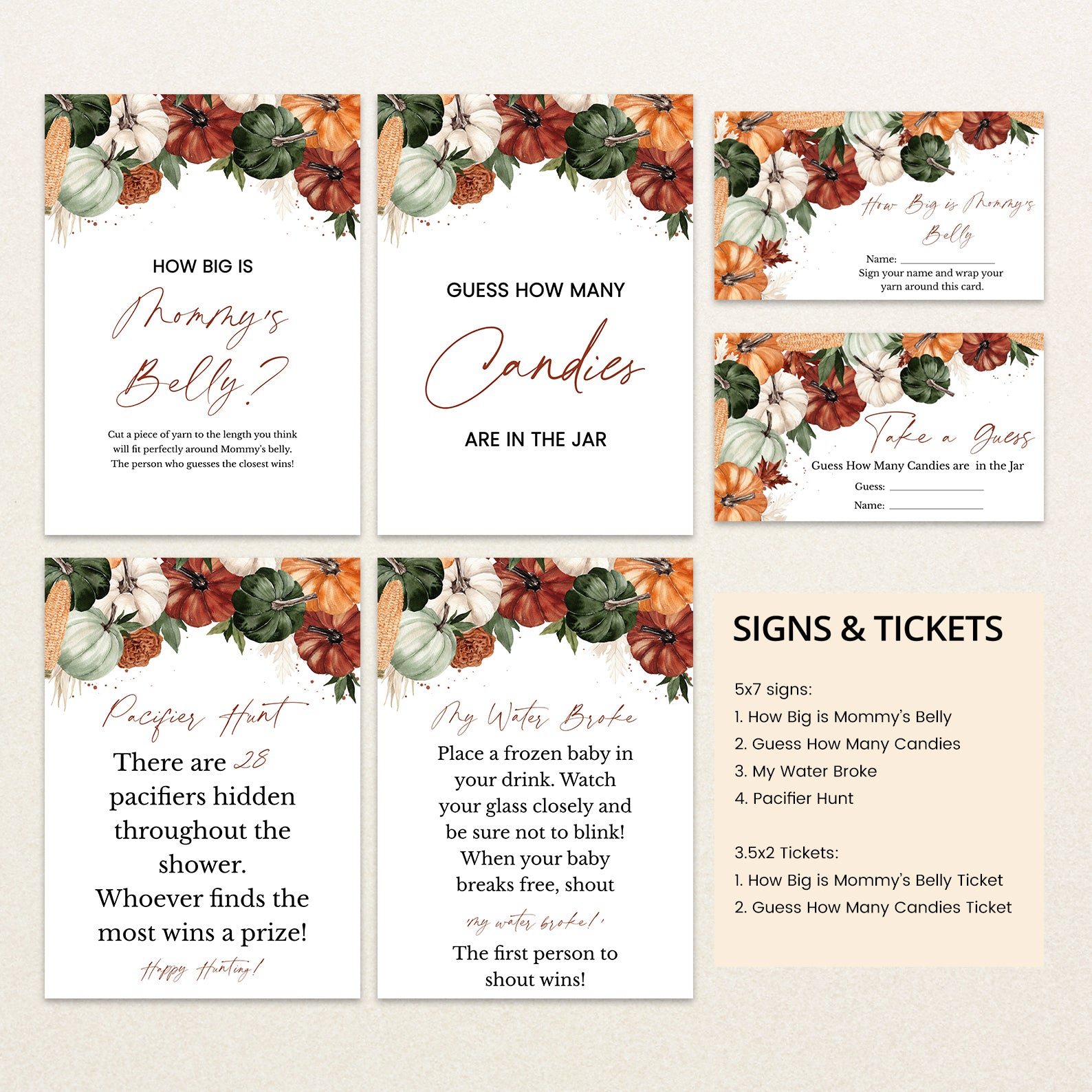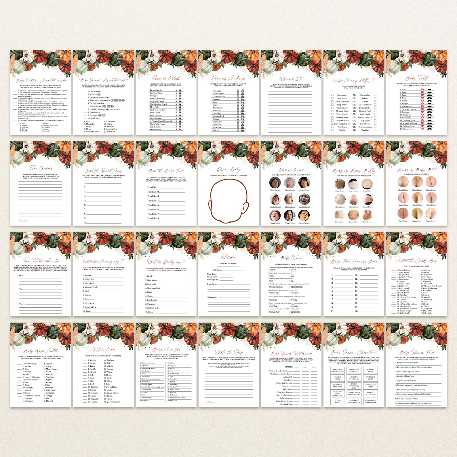 Harvest Charm: Watercolor Pumpkin Baby Shower Game Bundle