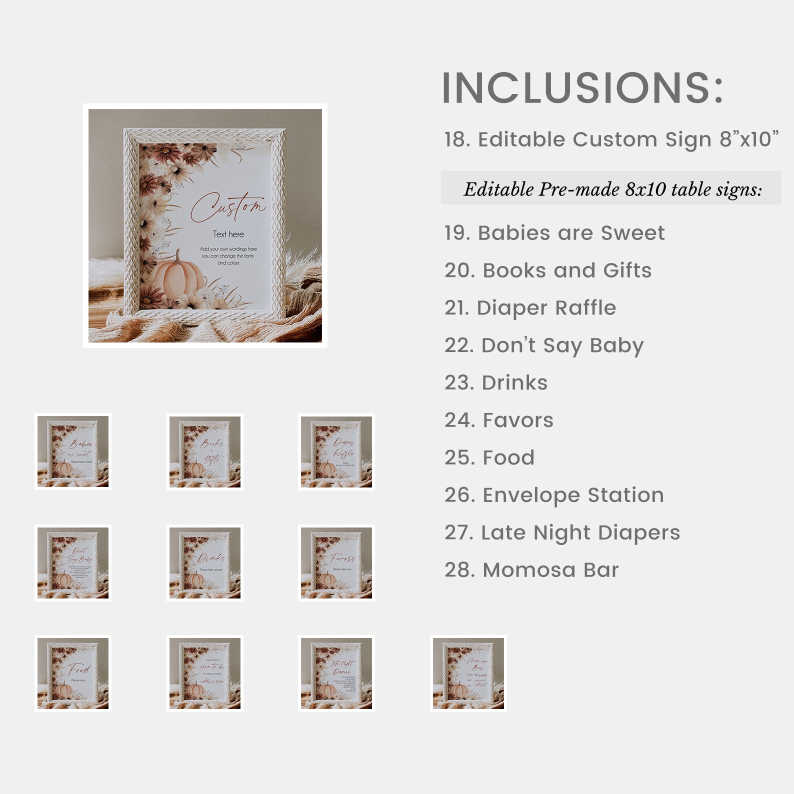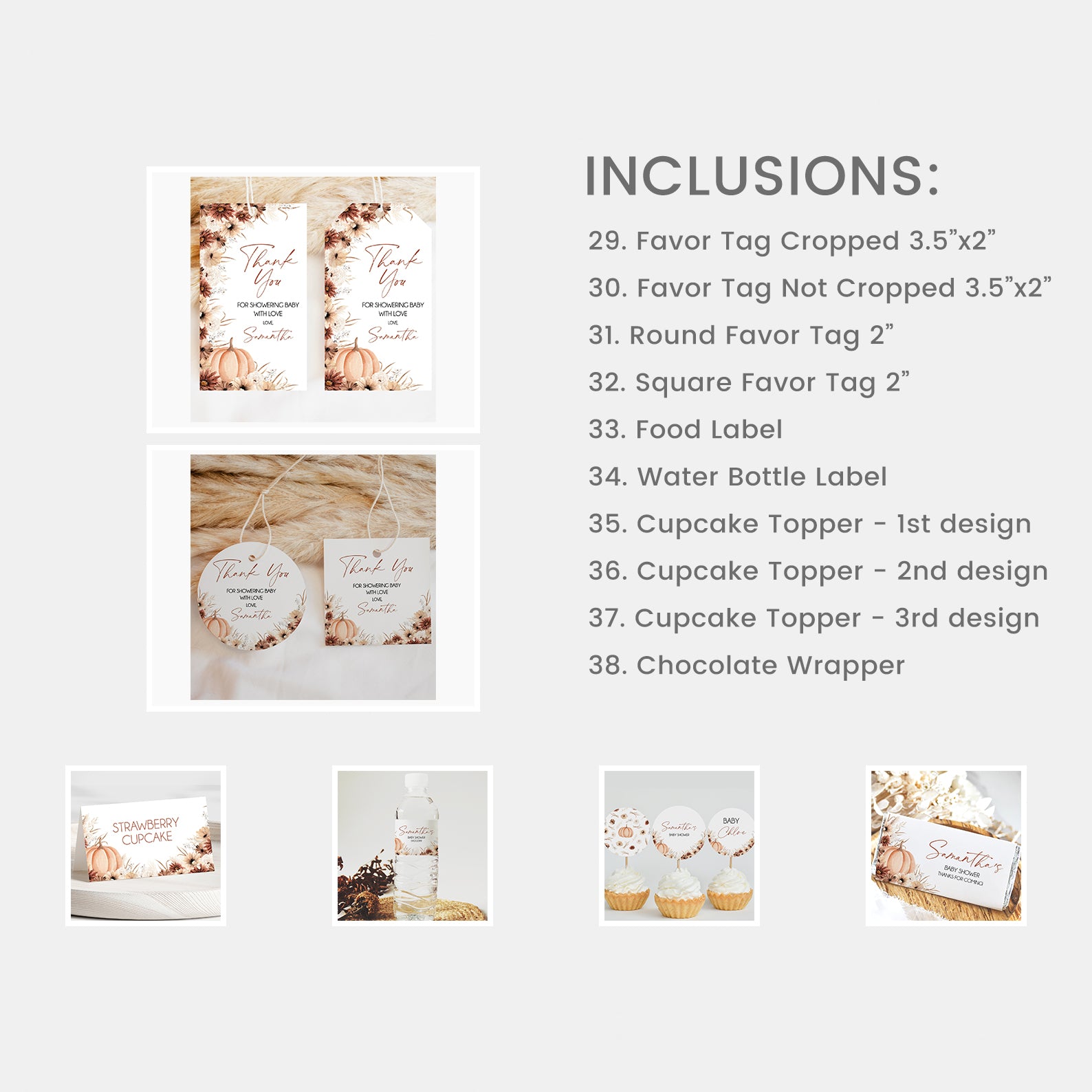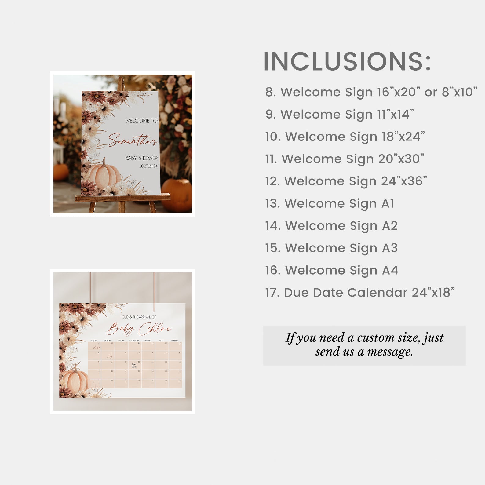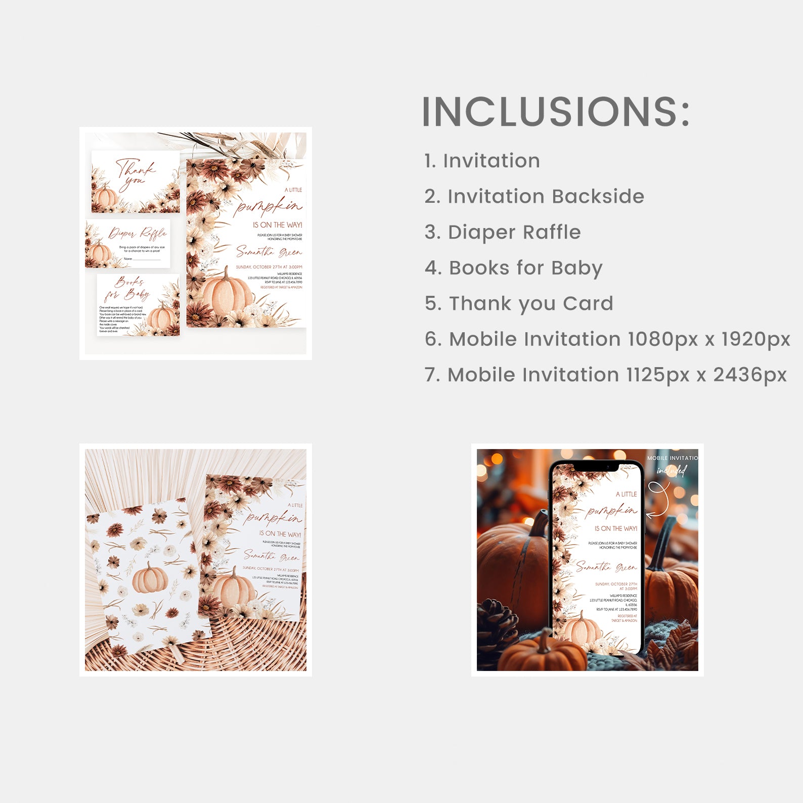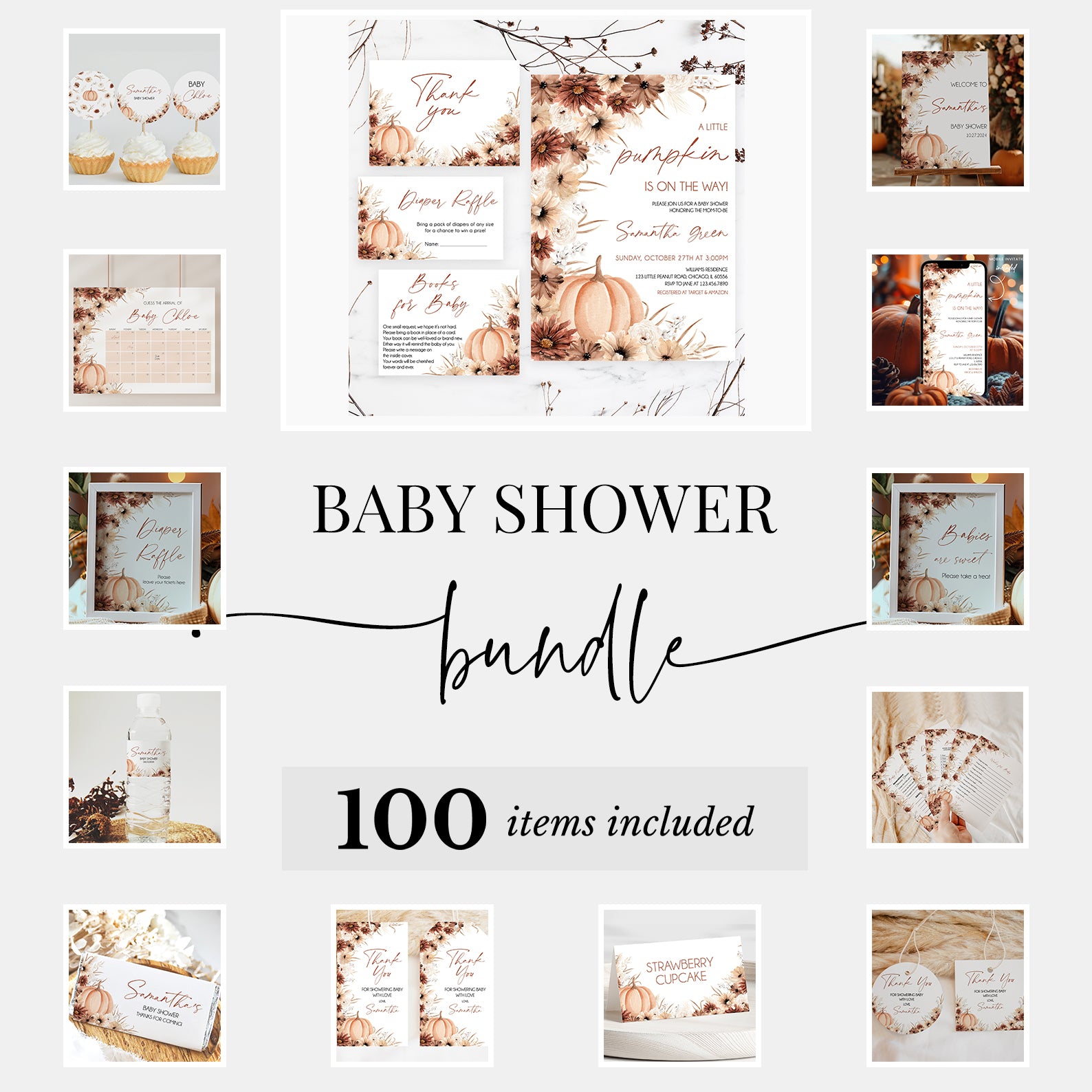 - Purchase this Autumn Baby Shower Mega Bundle with Aster Flowers & Pumpkin template