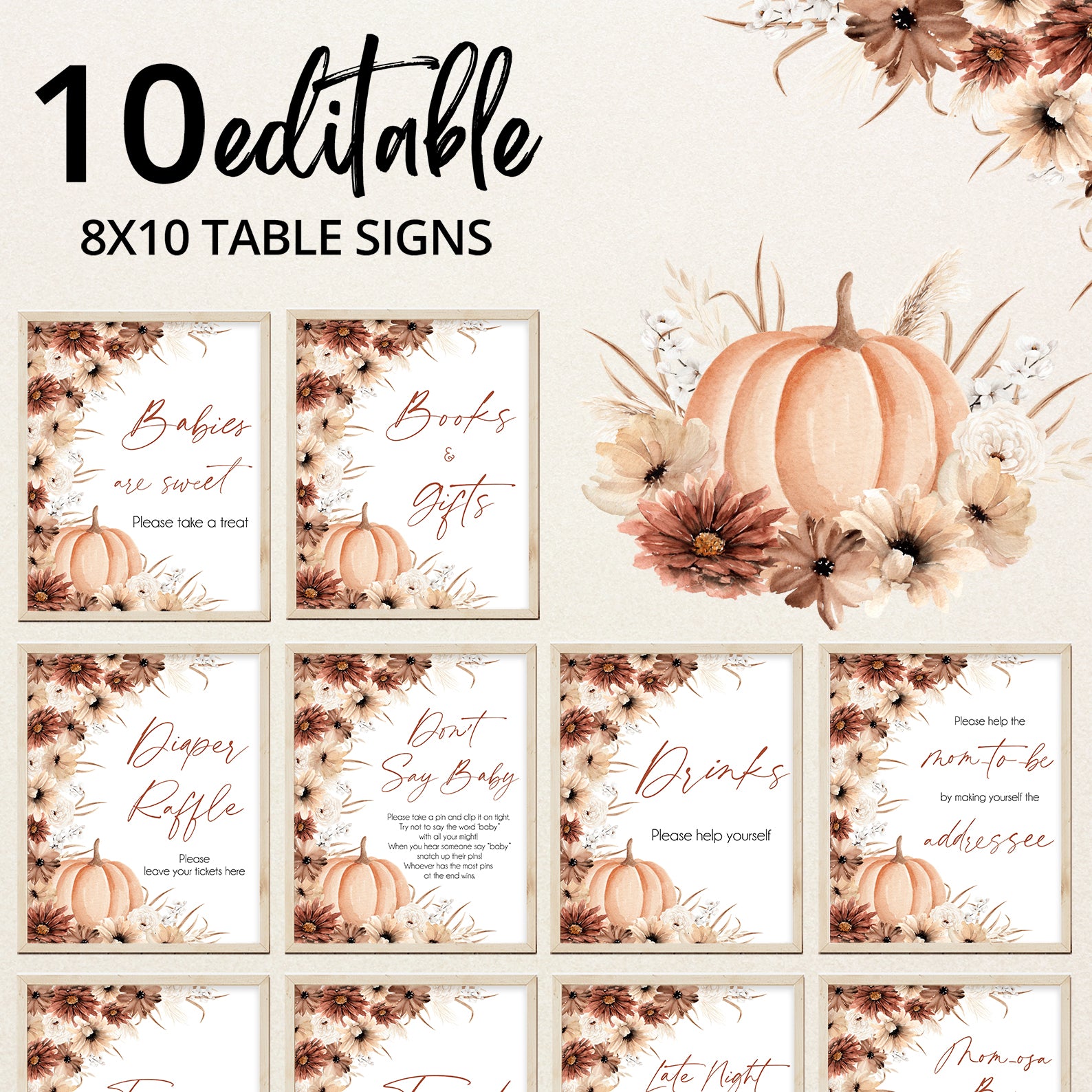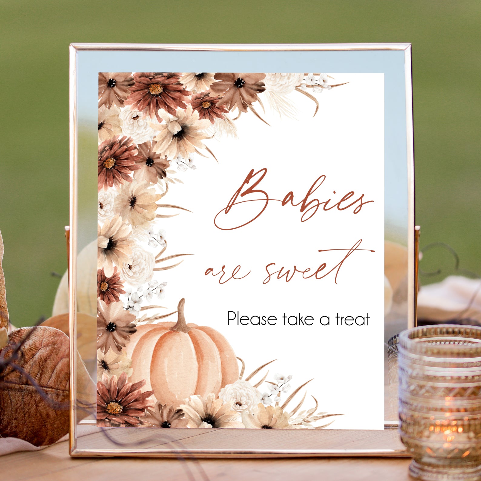 - Purchase this Autumn Baby Shower Table Sign with Aster Flowers & Pumpkin template