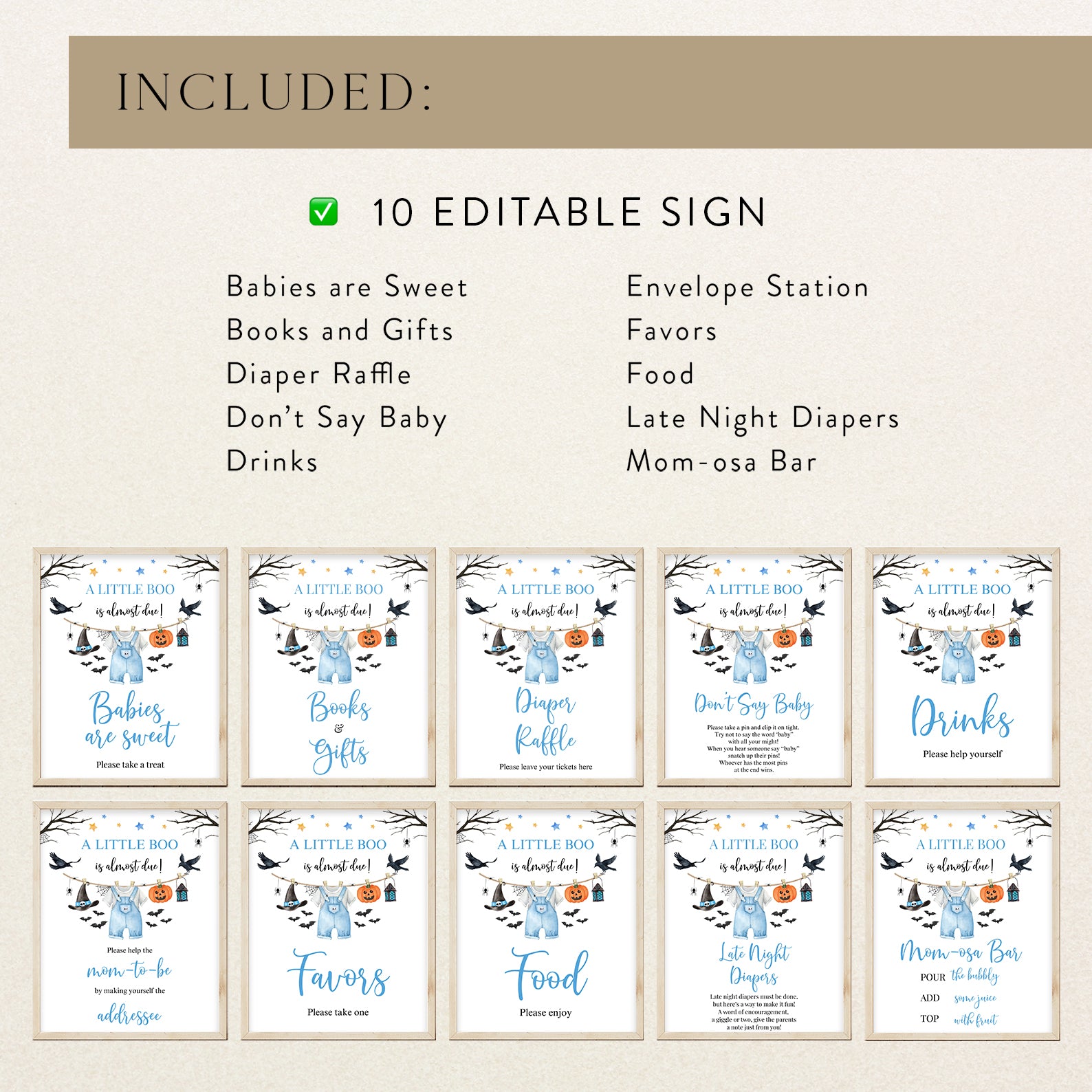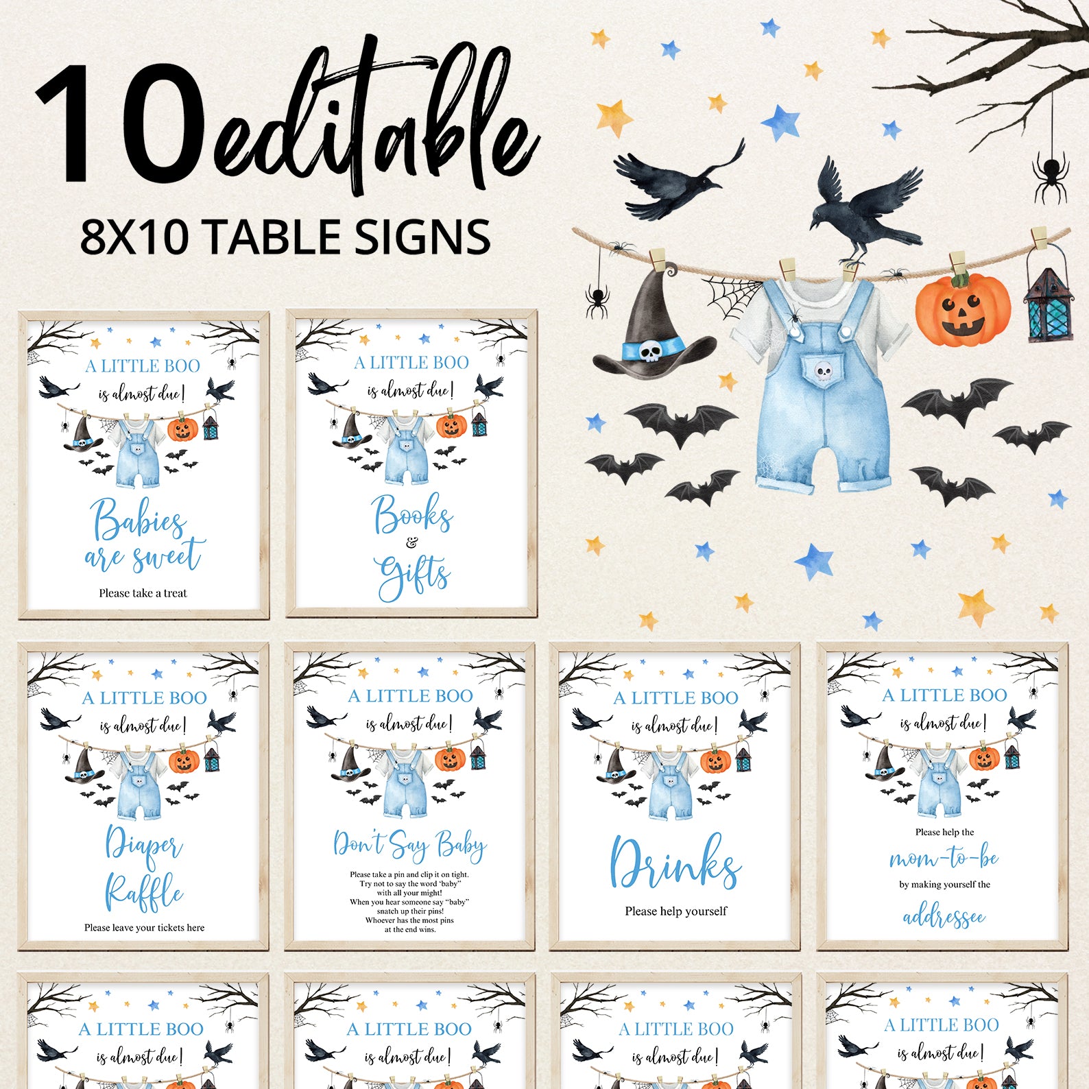 - Purchase this Blue Halloween Baby Shower Table Sign: Stars, Crows & Jumpsuit template