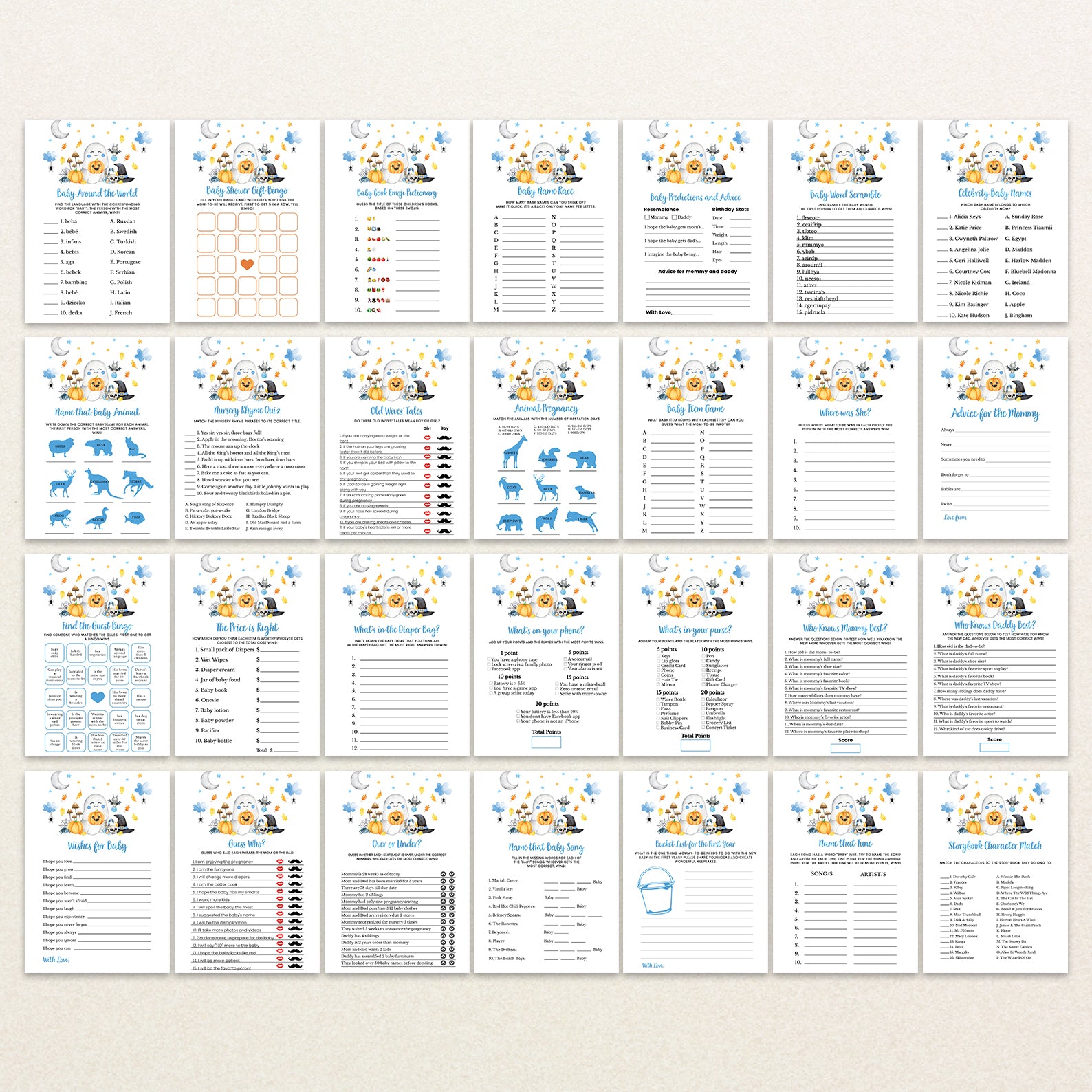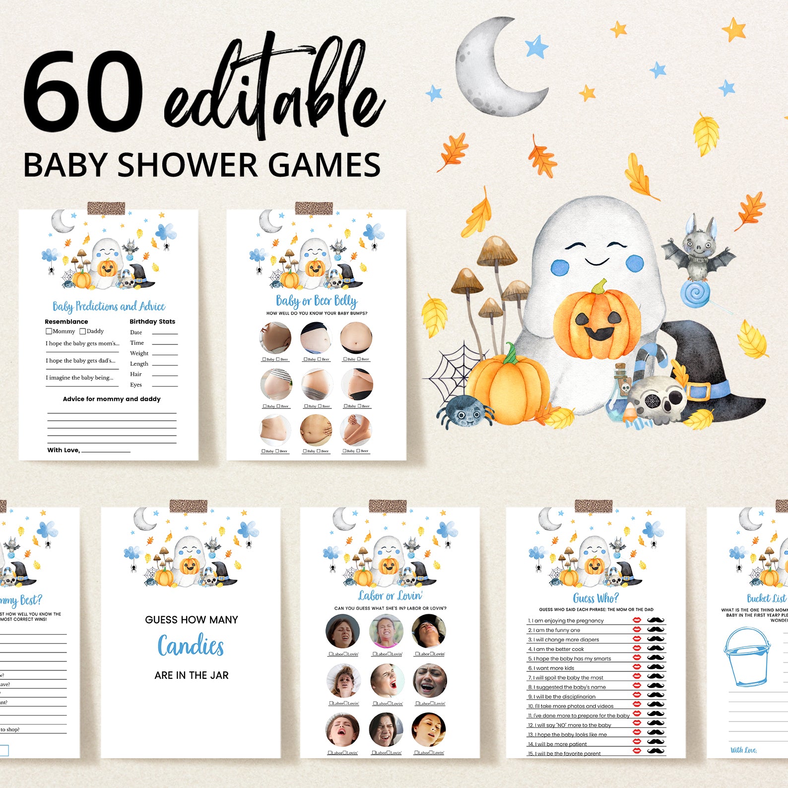 - Purchase this Blue Halloween Baby Shower Game Bundle: Cute Ghost, Stars & Bats template