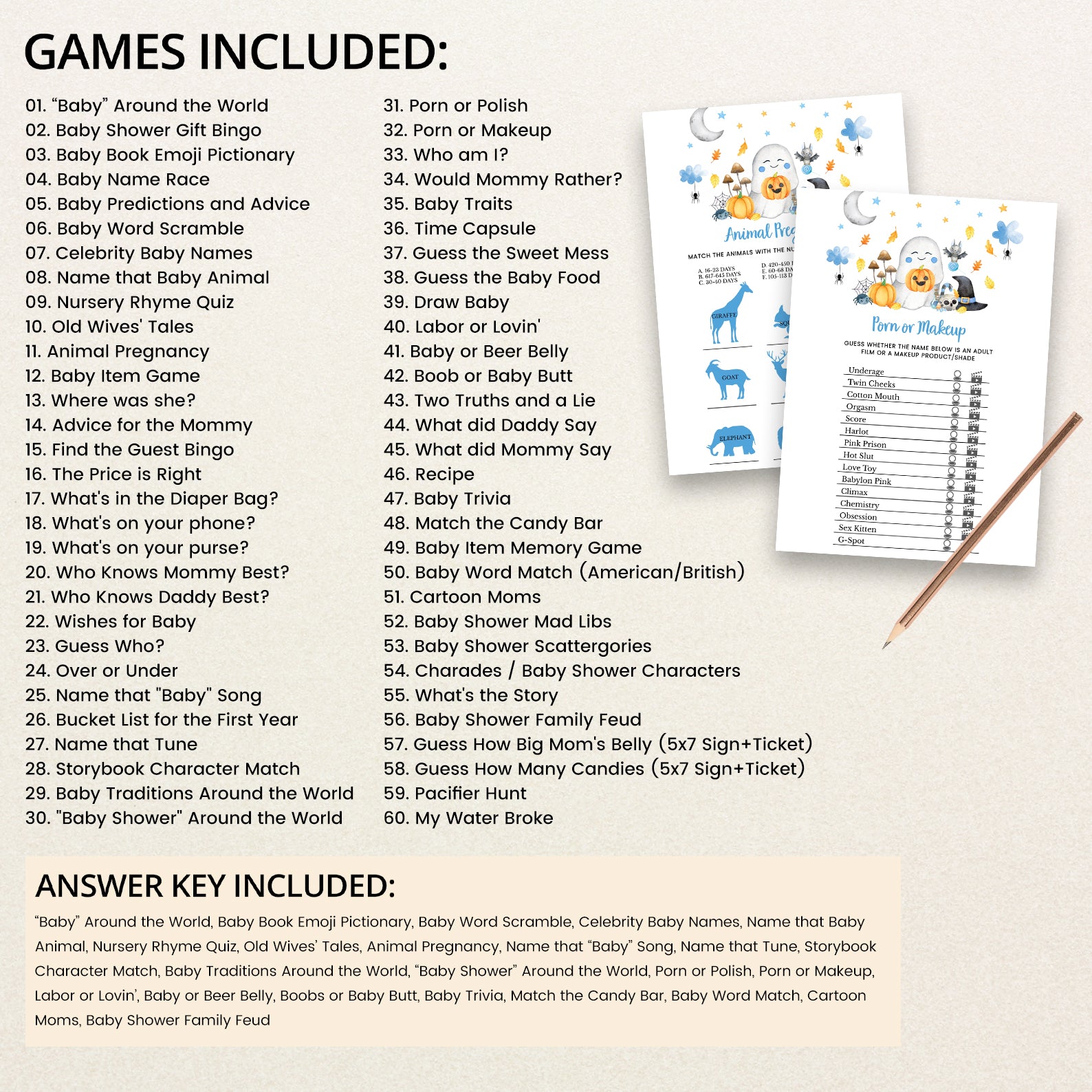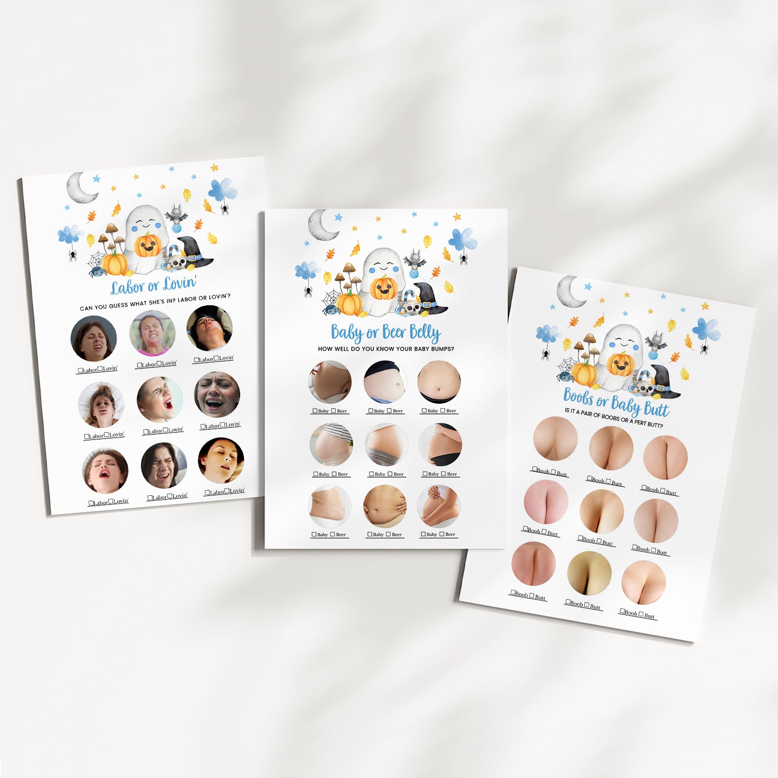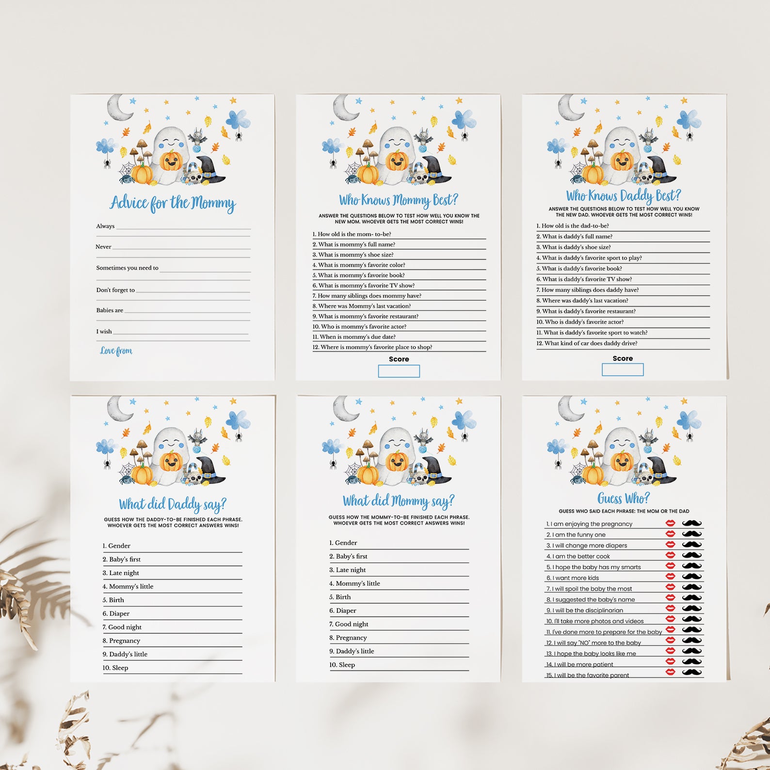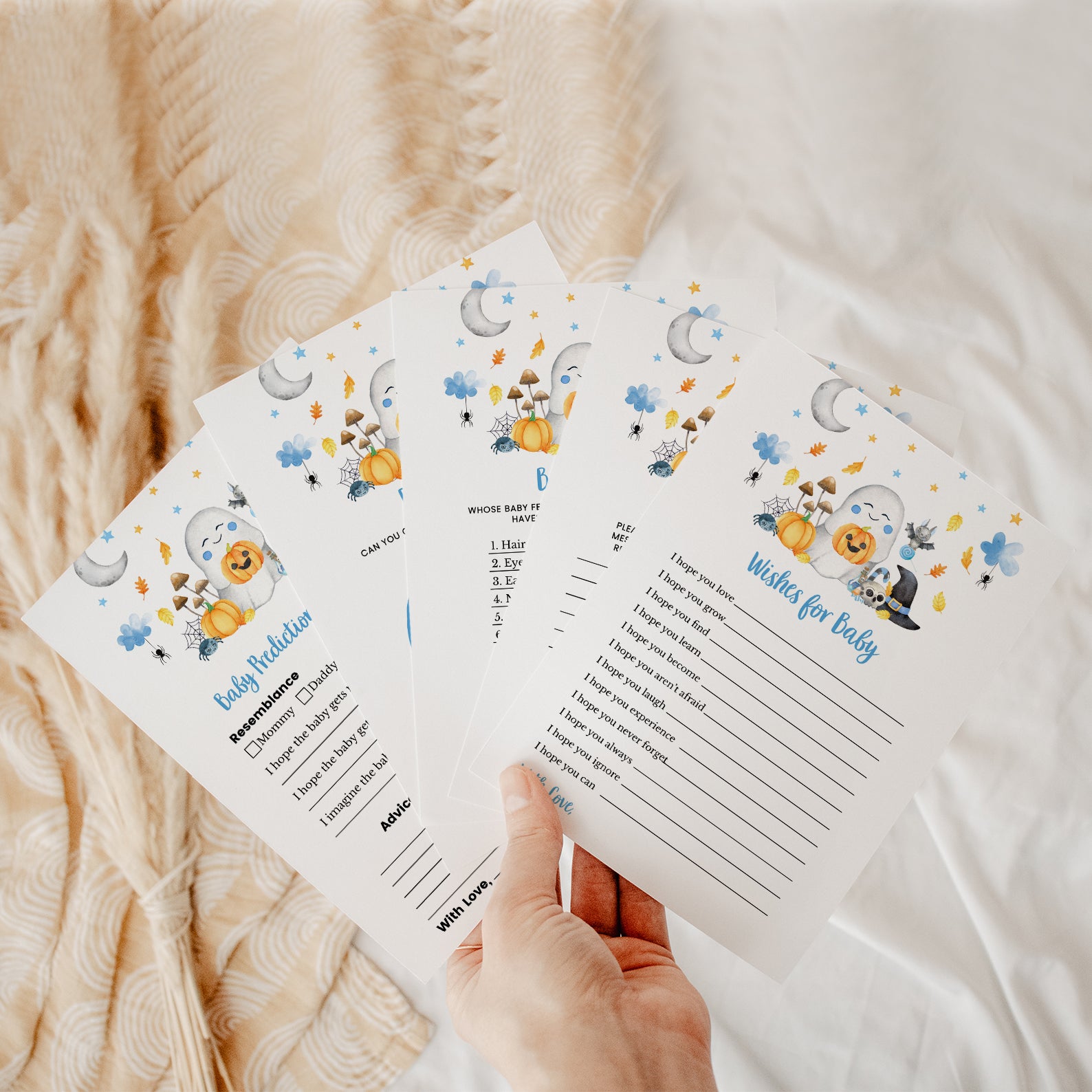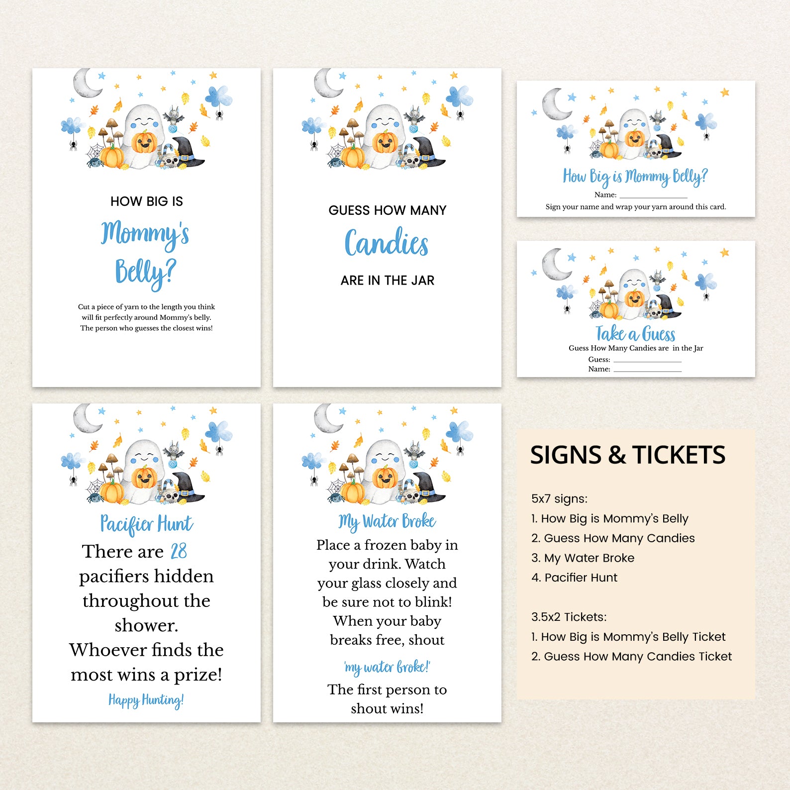 Blue Halloween Baby Shower Game Bundle: Cute Ghost, Stars & Bats