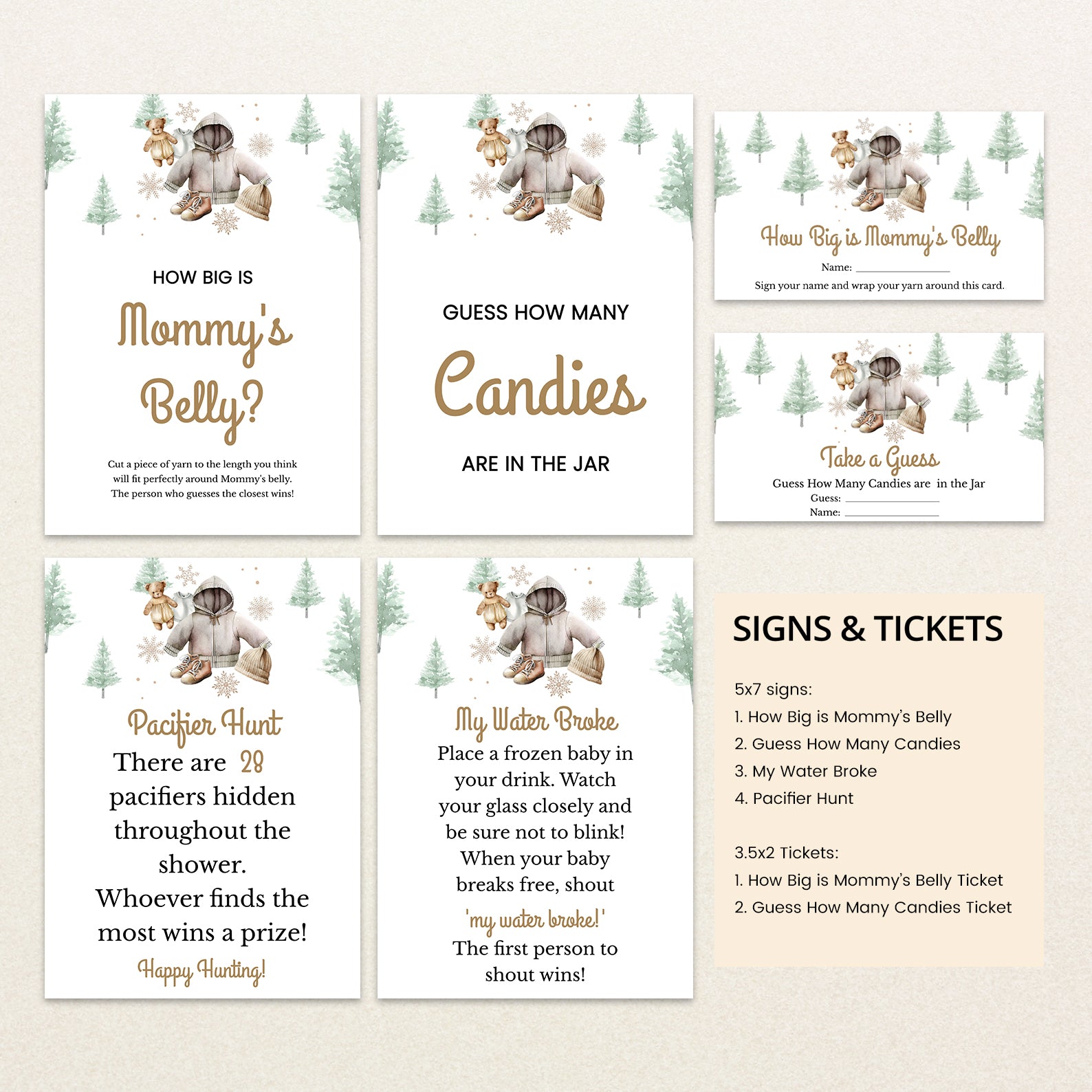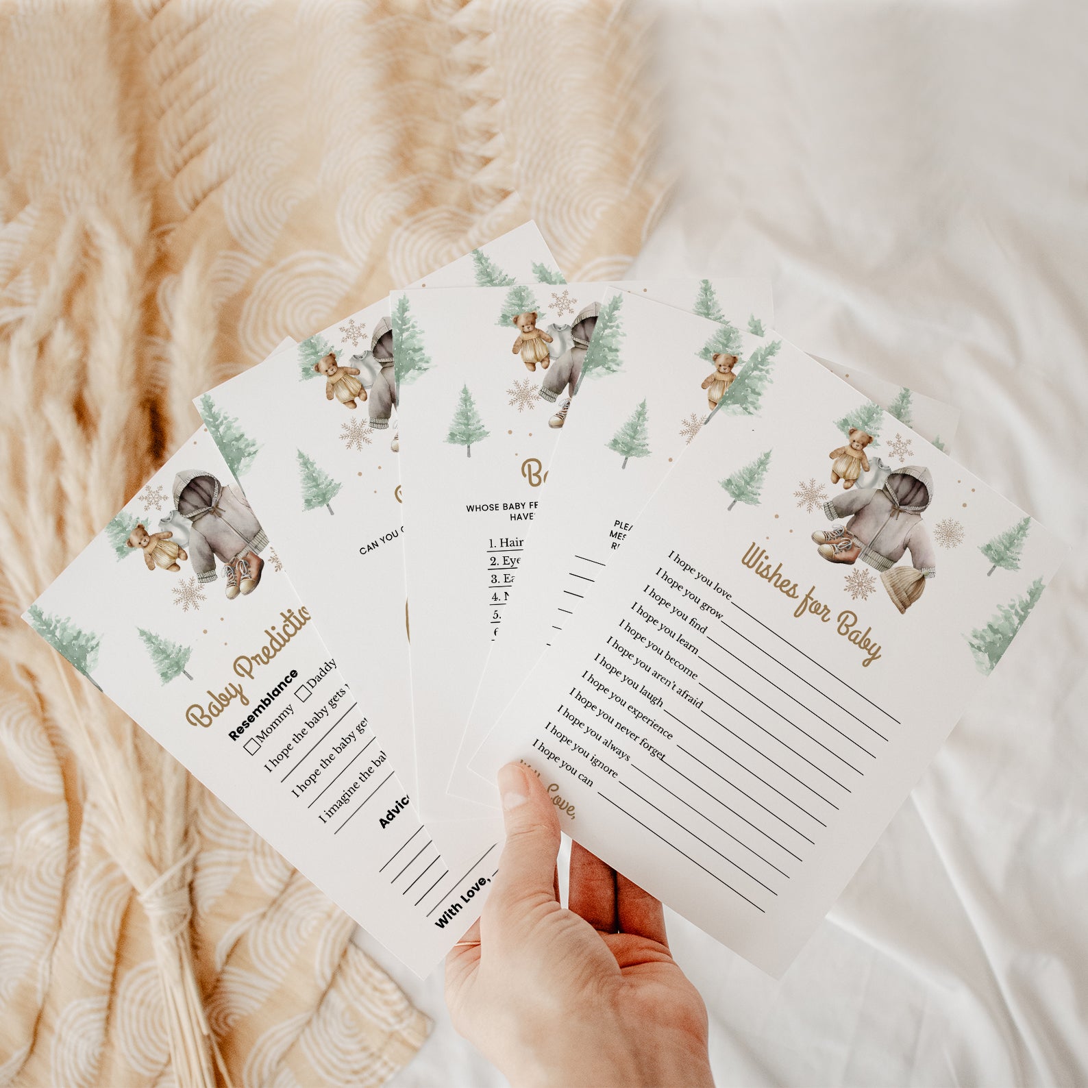 Watercolor Winter Baby Shower Game Bundle with Adorable Baby Gear