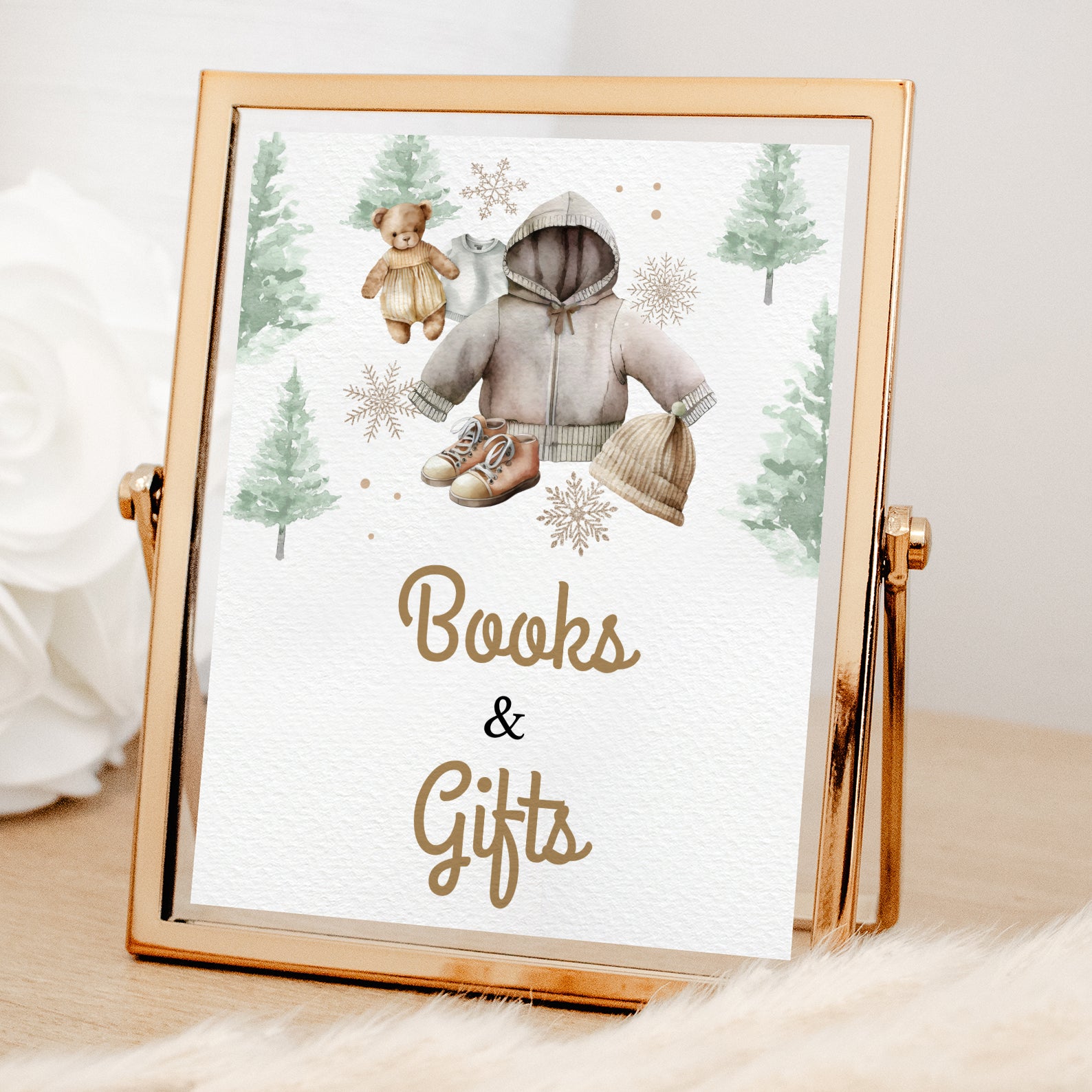 - Purchase this Watercolor Winter Baby Shower Table Sign with Adorable Baby Gear template